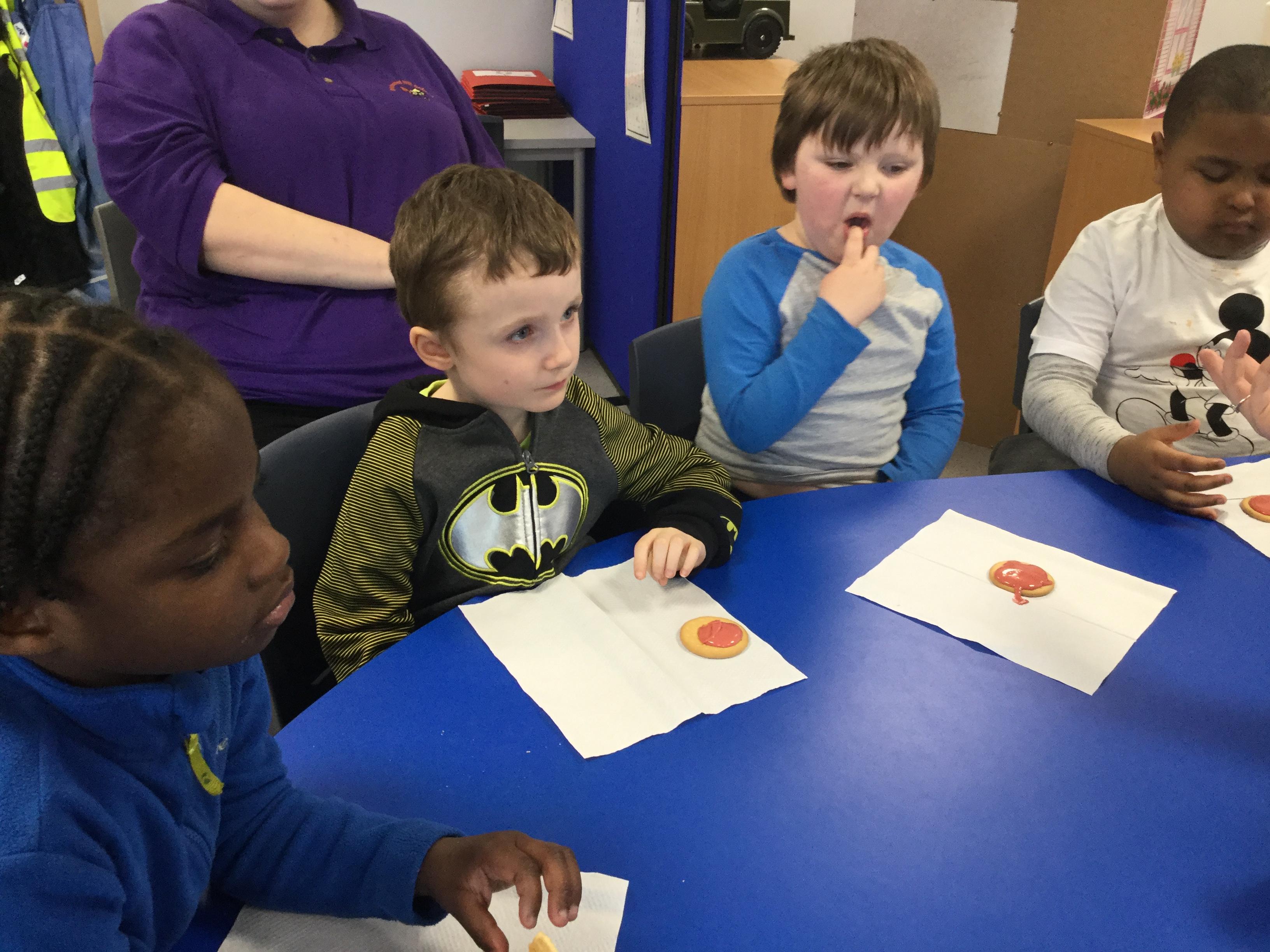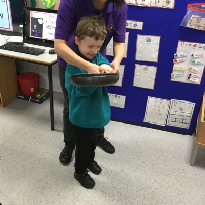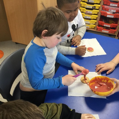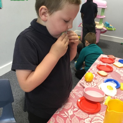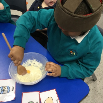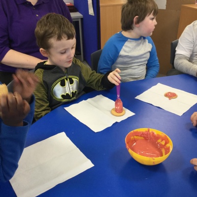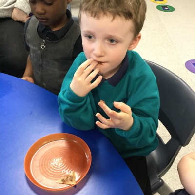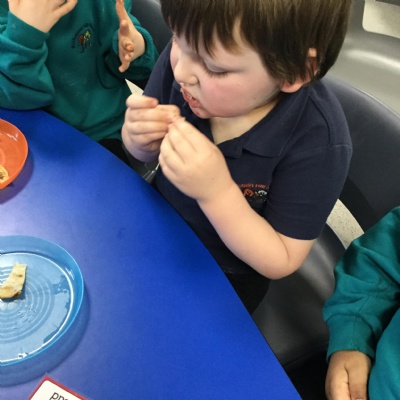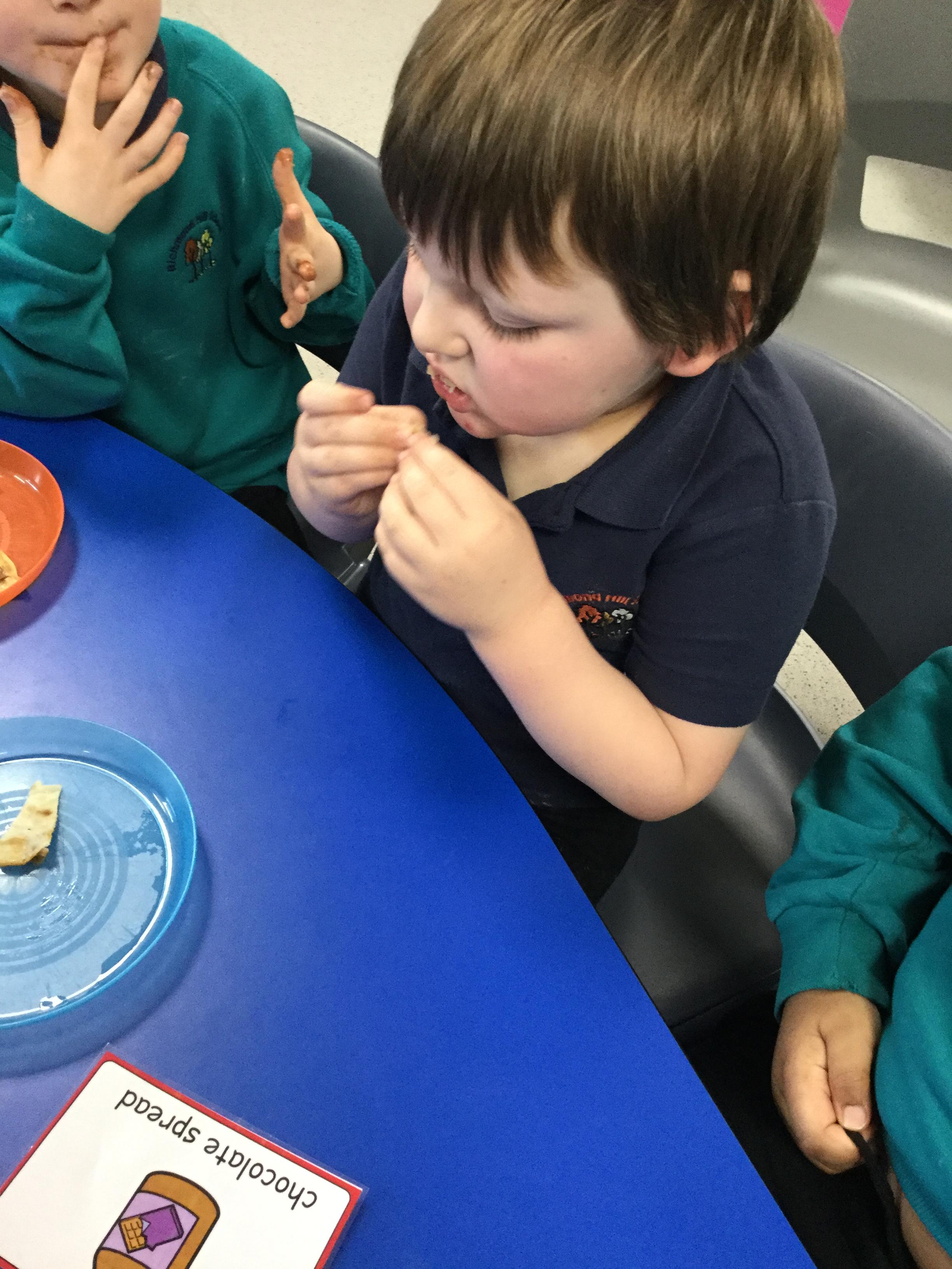 We made pancakes using milk, egg and flour and all had a turn at flipping them. We tasted pancakes with 4 different flavours including sugar and lemon, maple syrup, chocolate spread and jam.