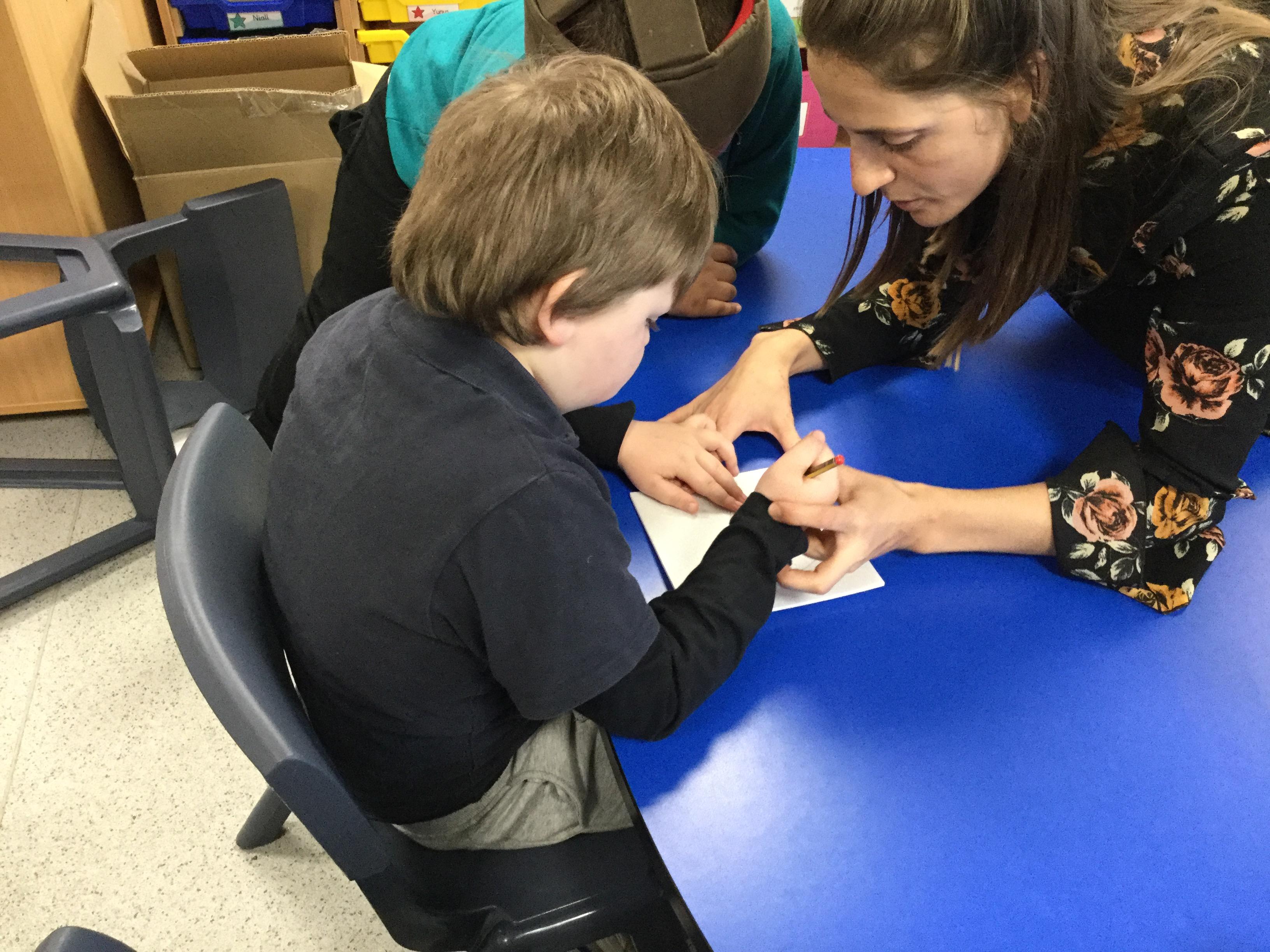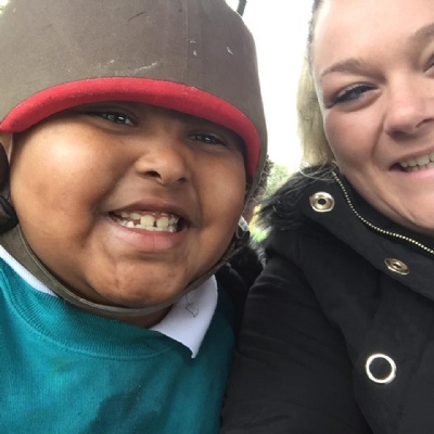 My name is Angela and I am the class teacher. Lisa is our TA2 and Paige, Hannah and Sophie are our TA1s. In our class, we have 8 pupils including Salome, Sheldon, Niall, Solan, Naqeeb, Oscar, Saraya and Darnell.