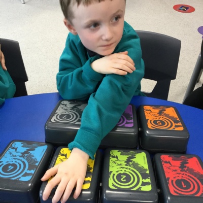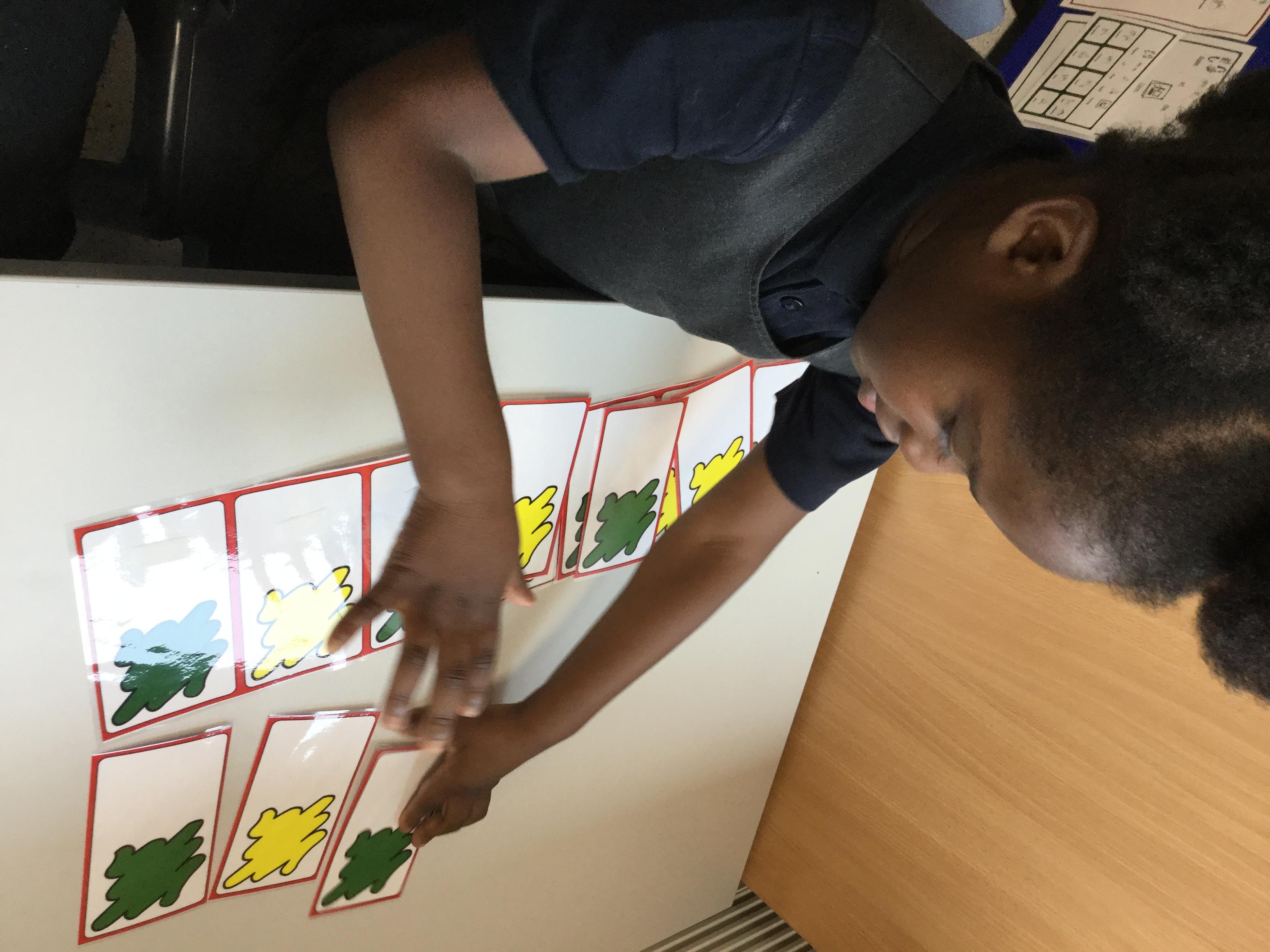 In Maths this week we have been looking at repeating patterns. The pupils have been matching colours in repeating patterns, copying and continuing repeating patterns and some have been making their own repeating patterns.