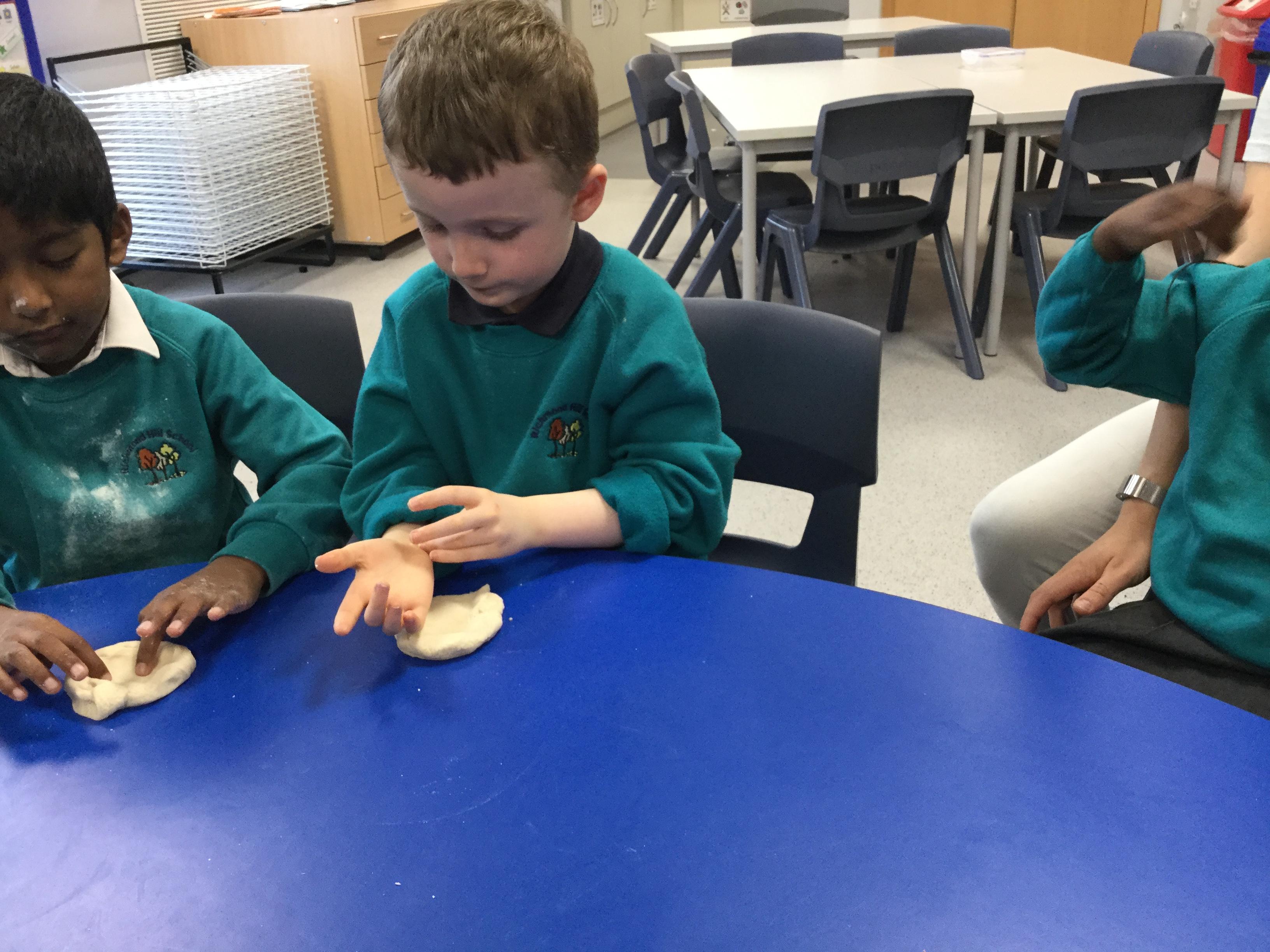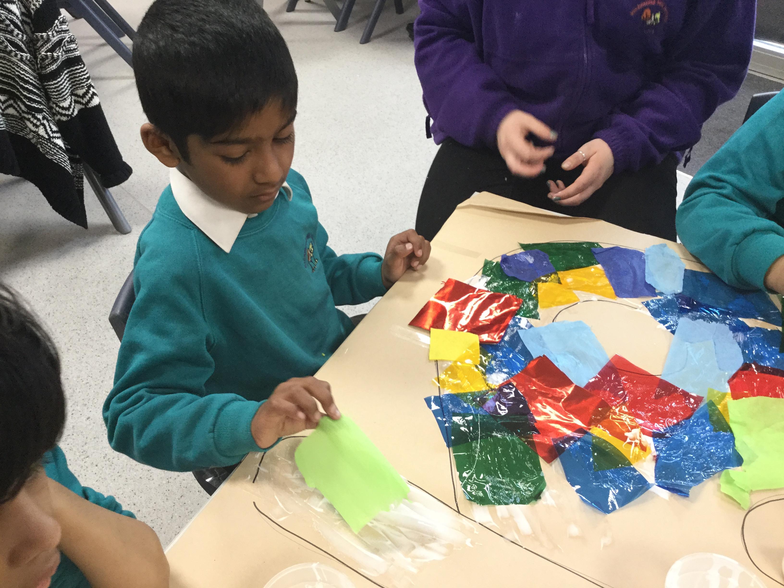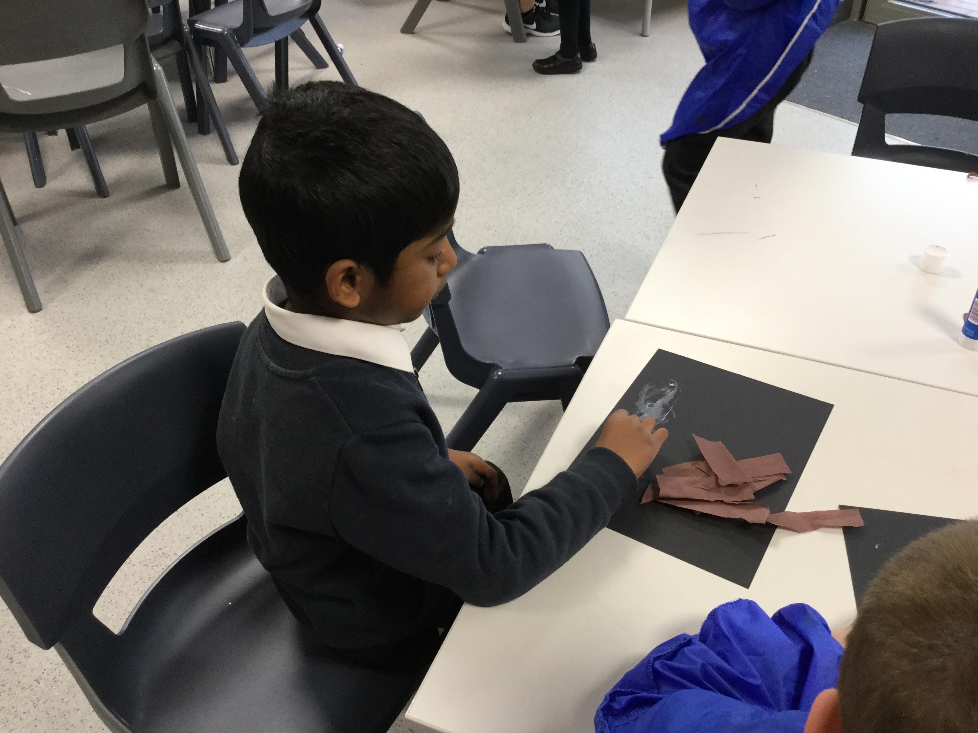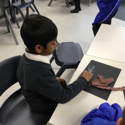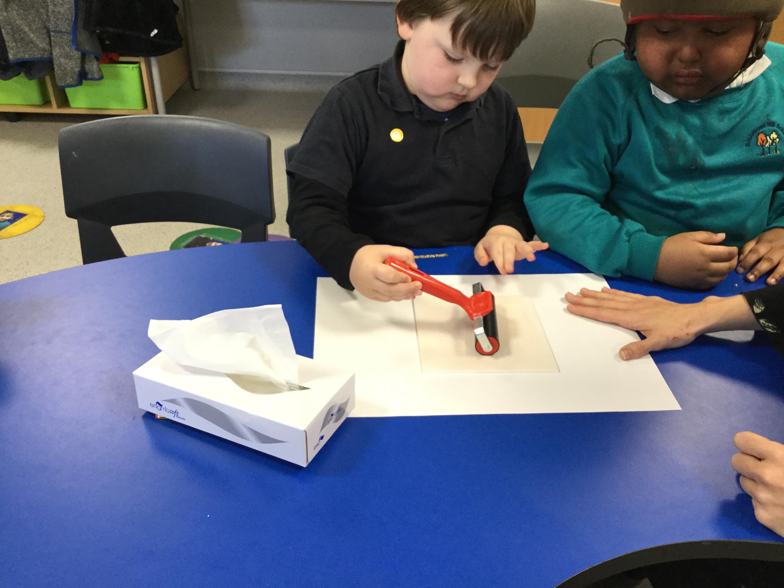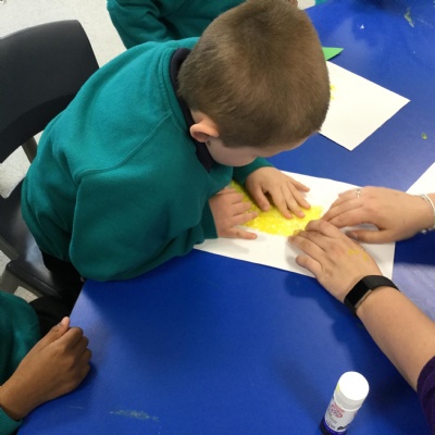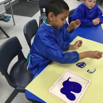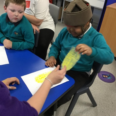 We used a pencil to make marks in our polystyrene tiles. We then chose a colour and painted the time using a roller, we placed our tiles onto a piece of paper and pressed down on it. We lifted the tile to reveal the print.