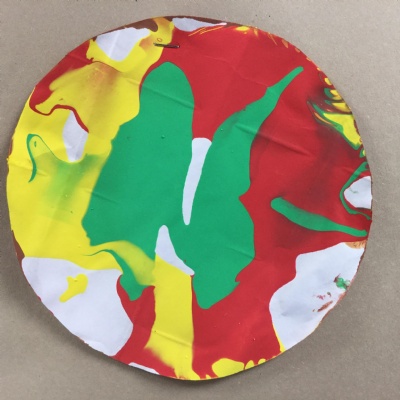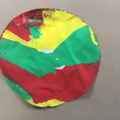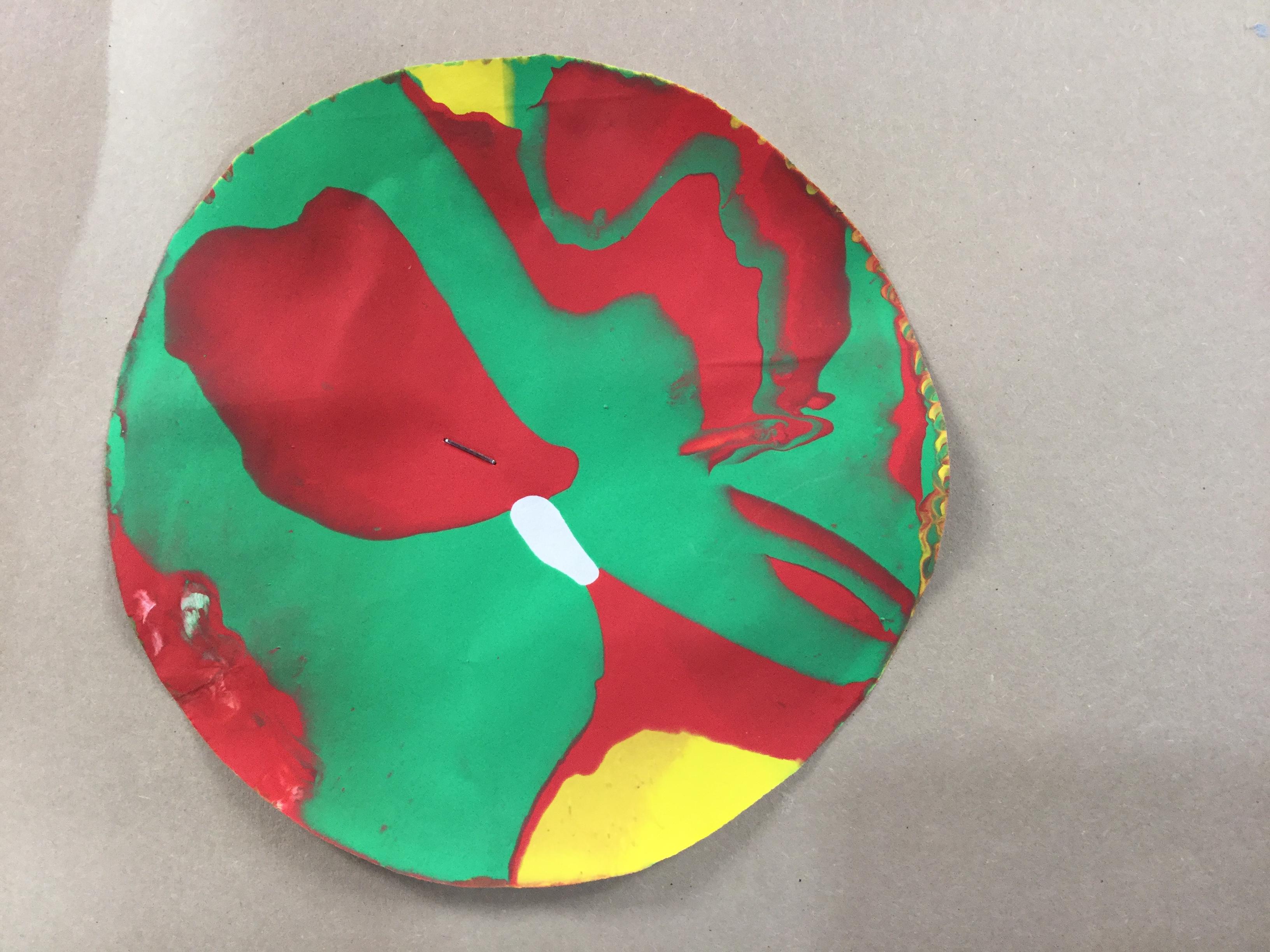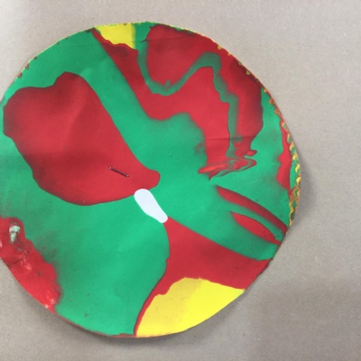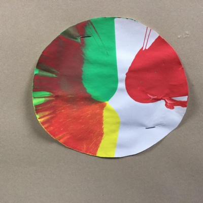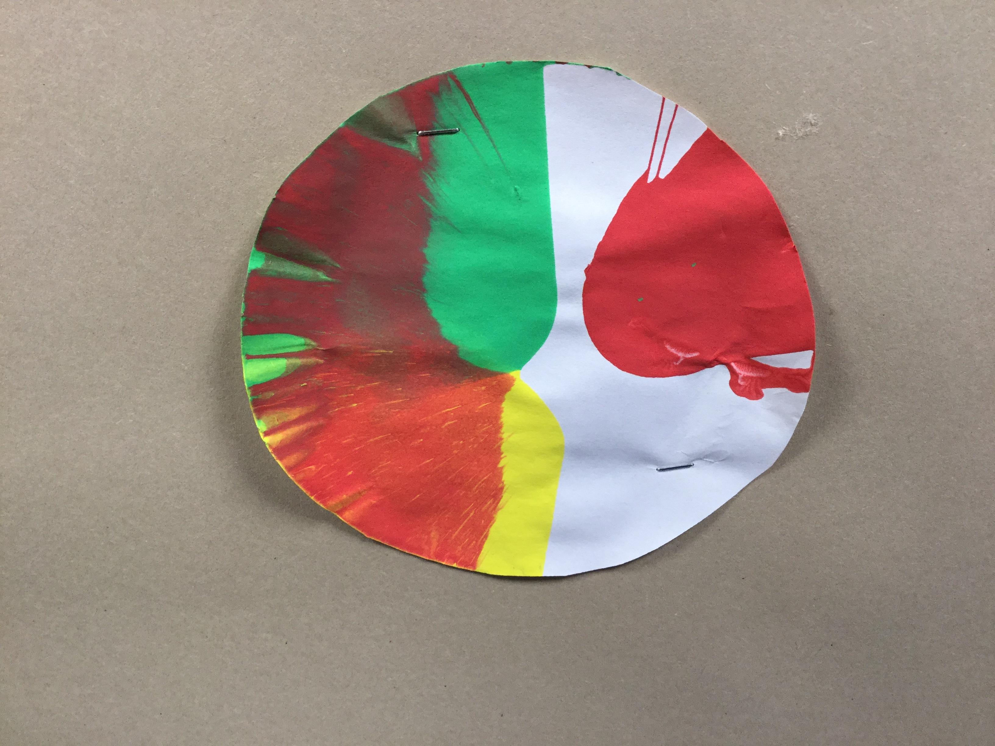 We also made a piece of art using a salad spinner. We used our communication books to select the colours we wanted and then spun the top of the spinner.