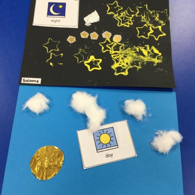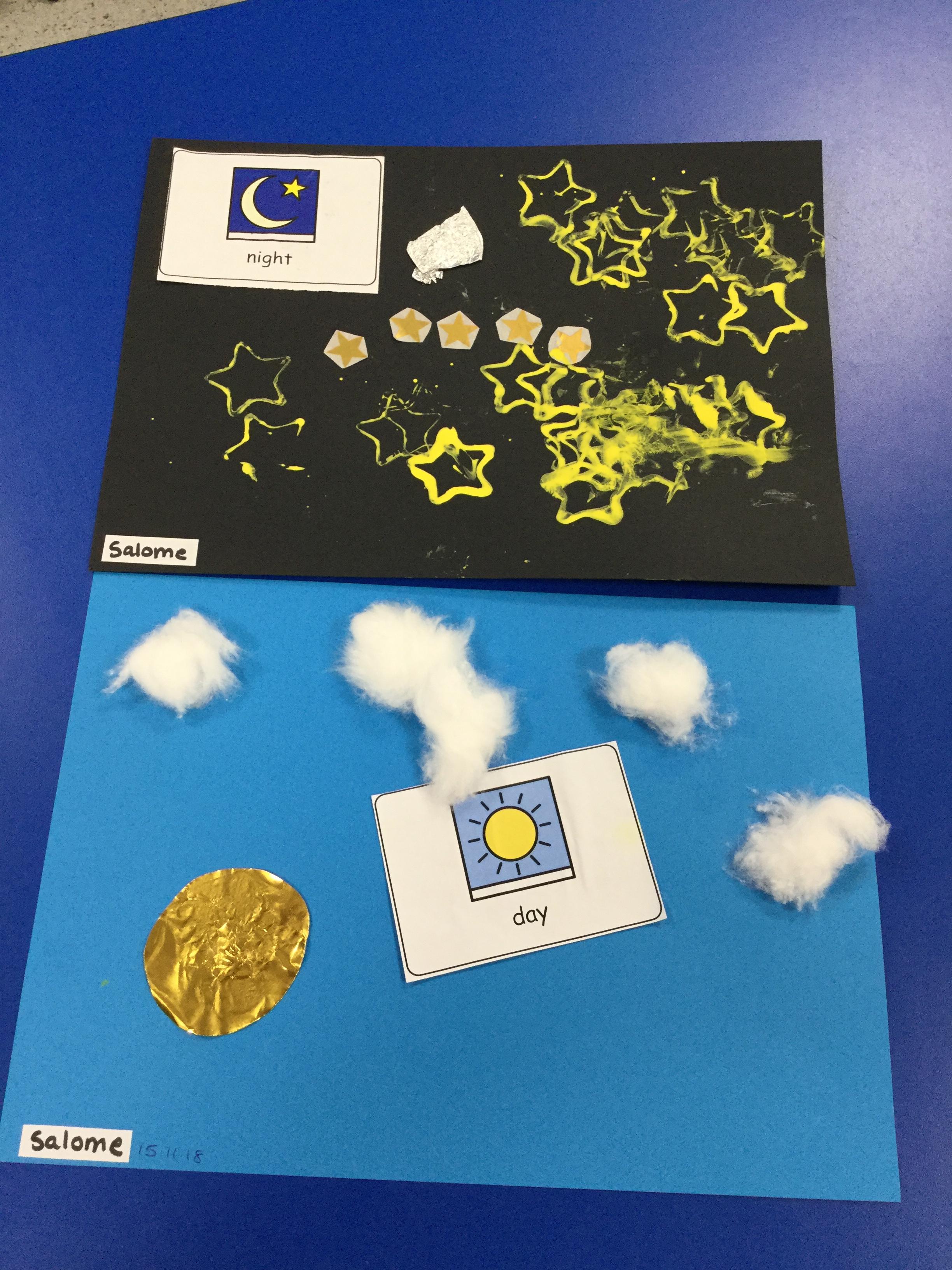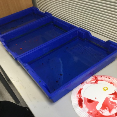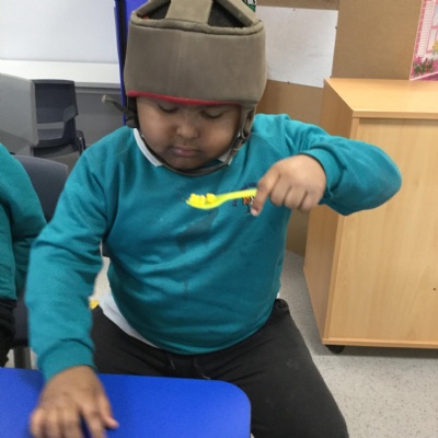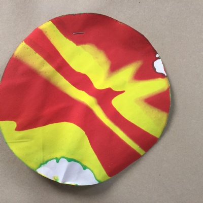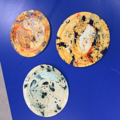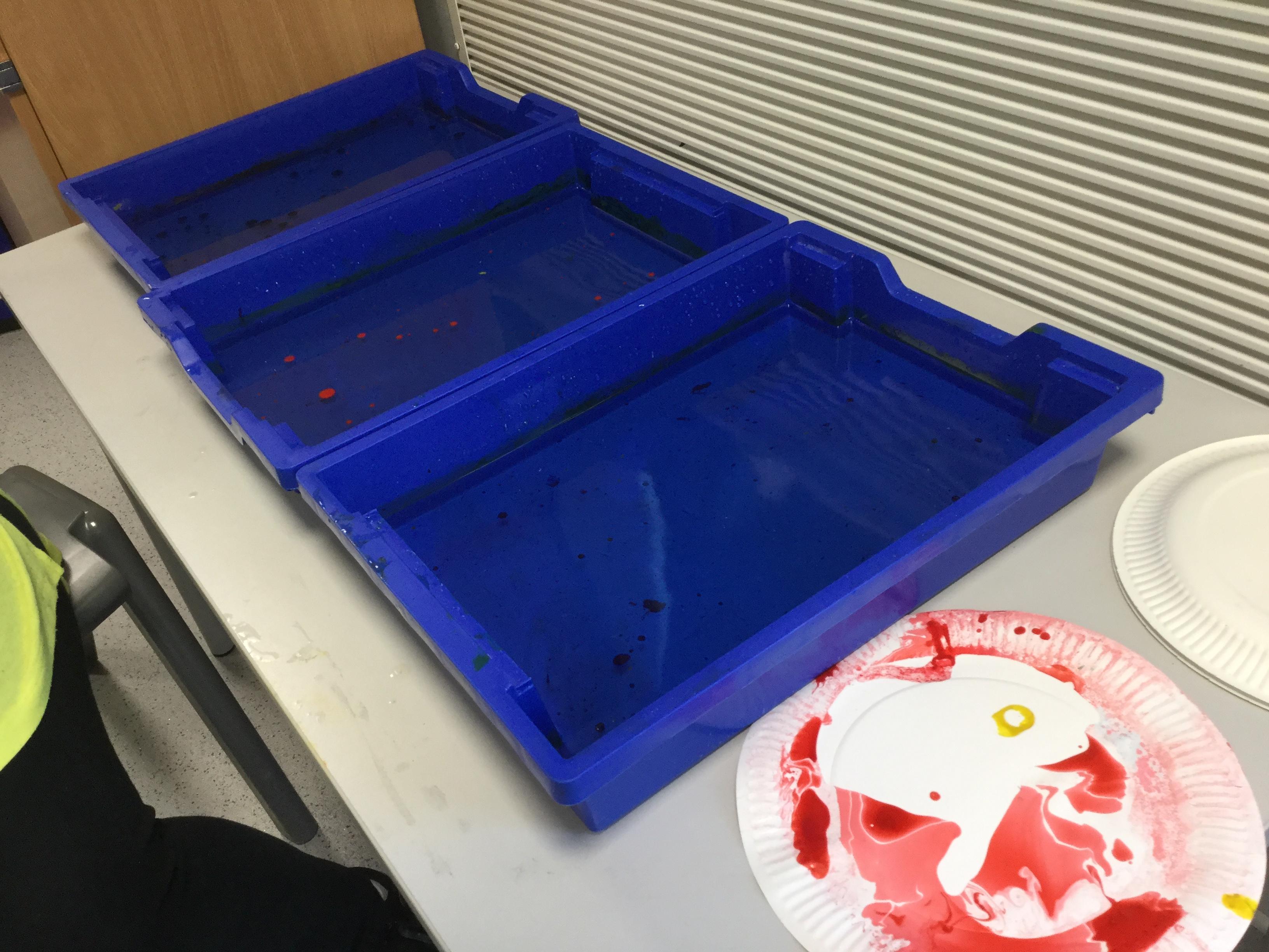 We also made a piece of art using a salad spinner. We used our communication books to select the colours we wanted and then spun the top of the spinner.