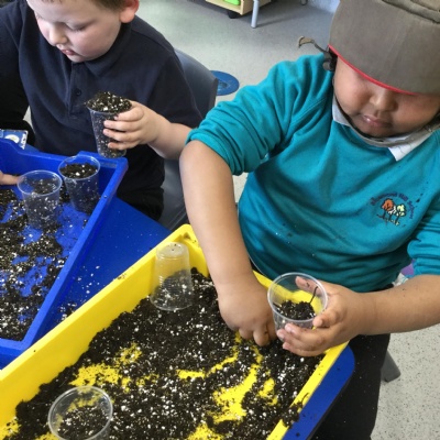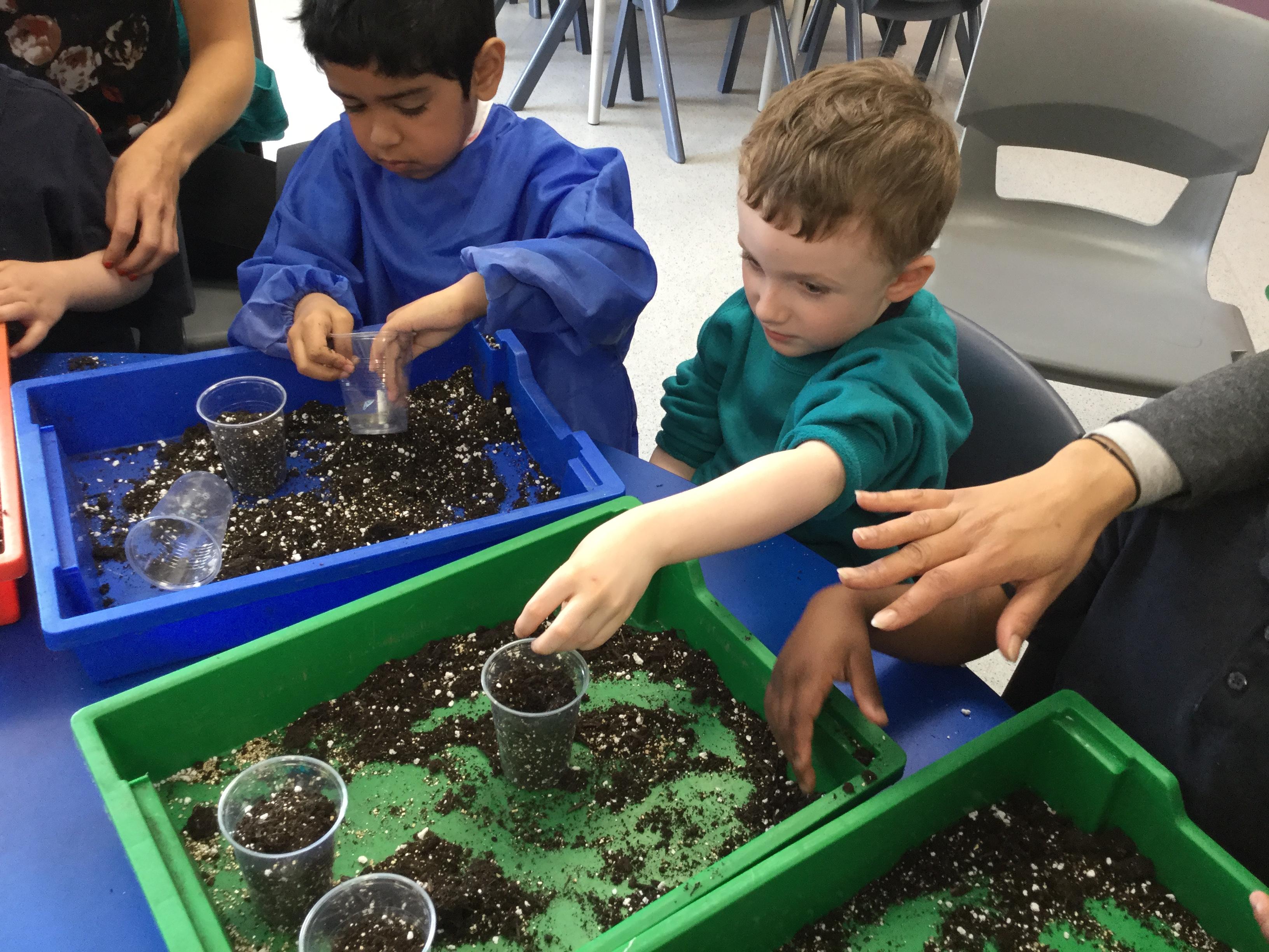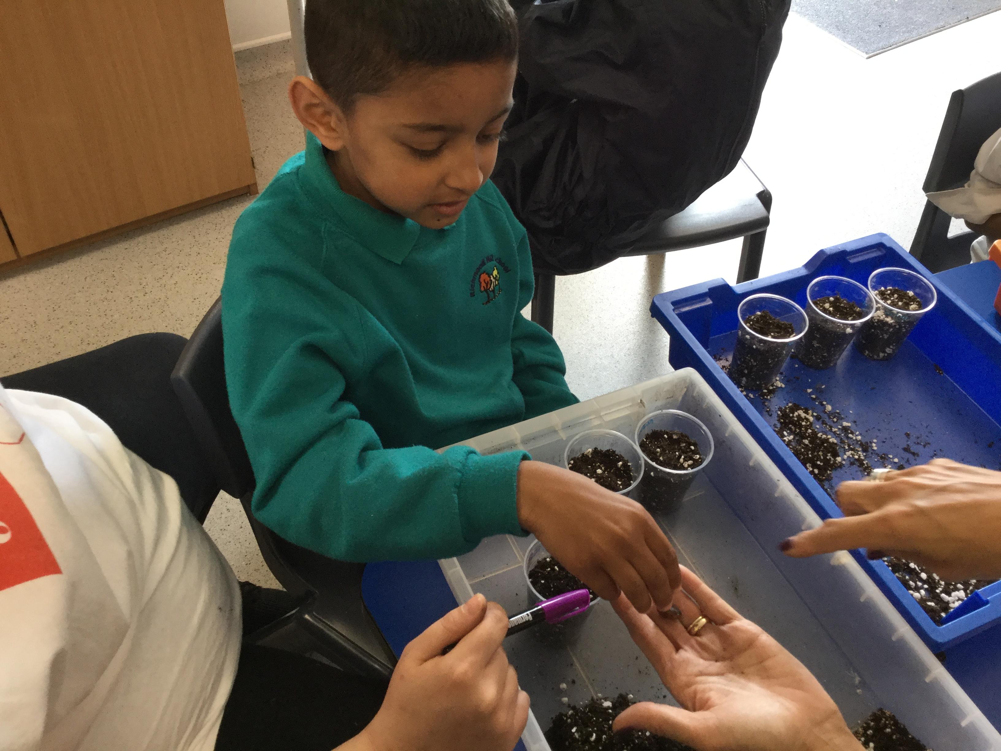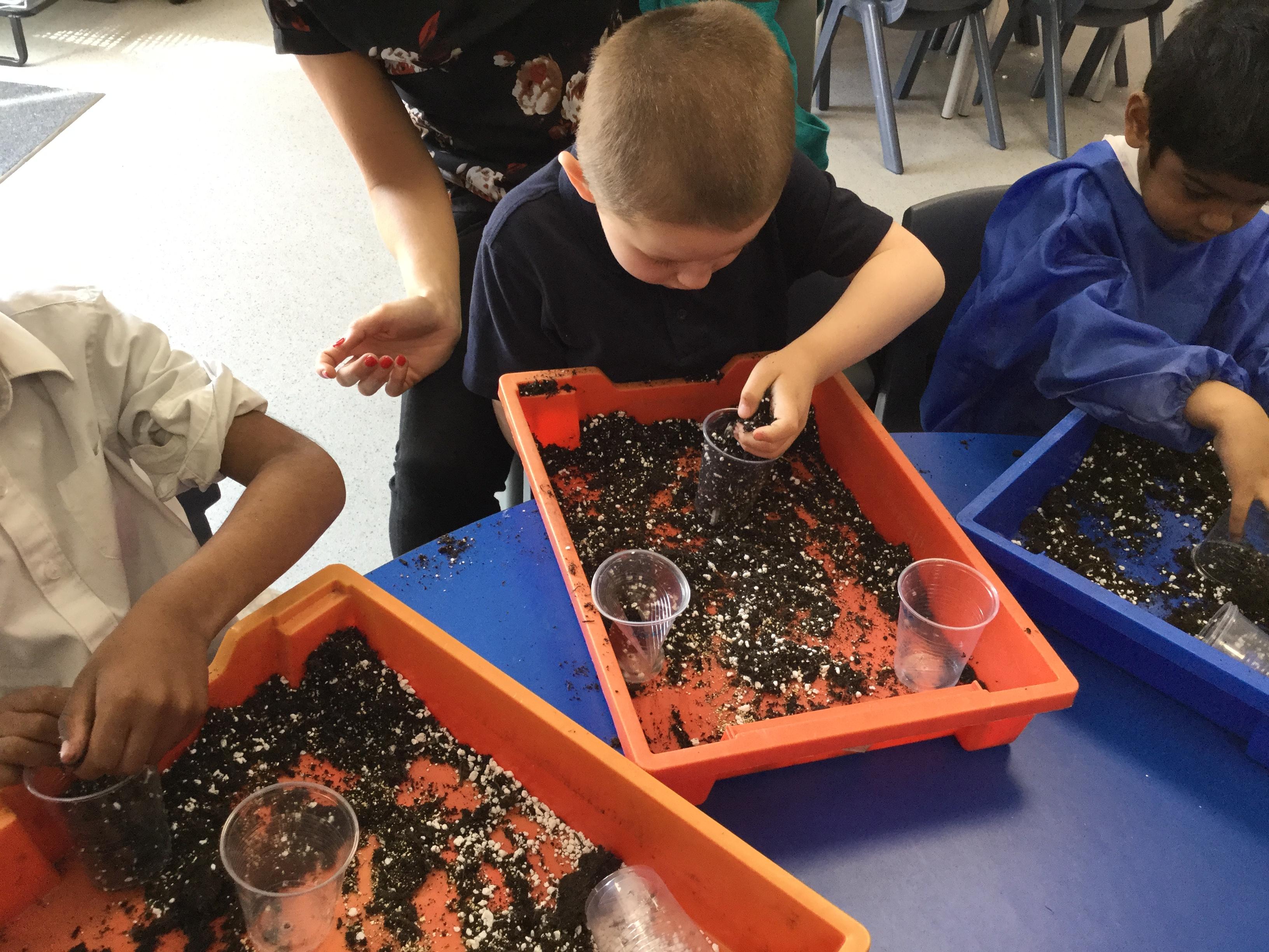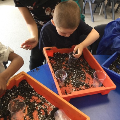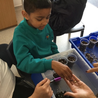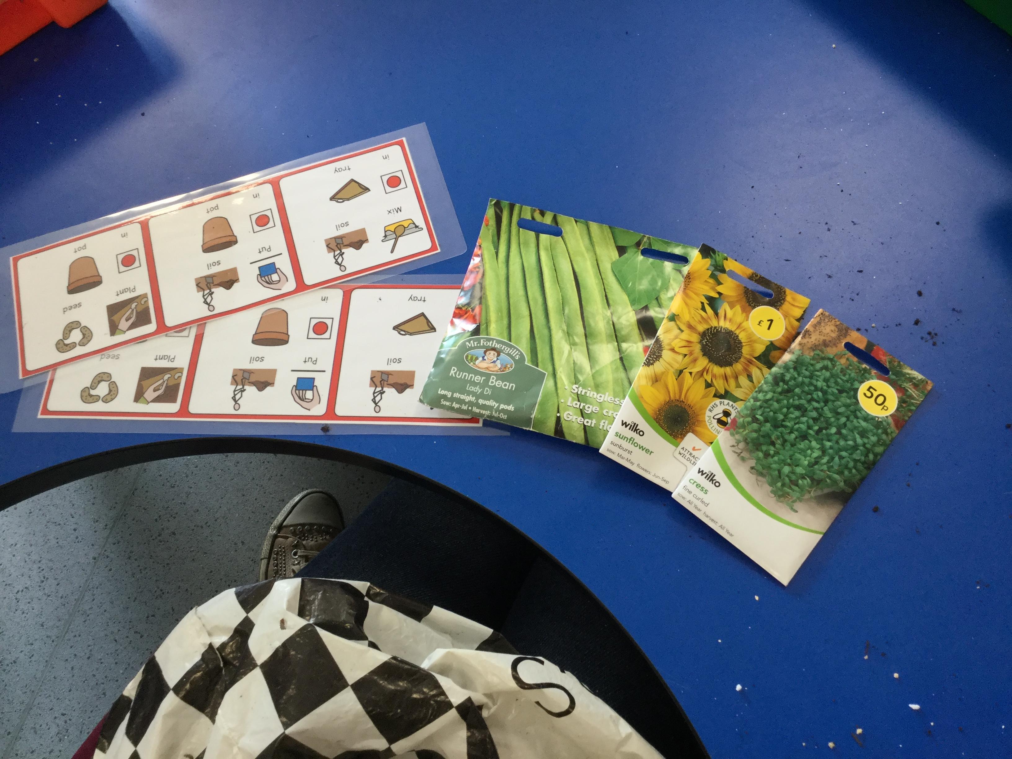 We had a visit from Vicky, the gardener at West site. We planted seeds including cress, green beans and sunflower.
