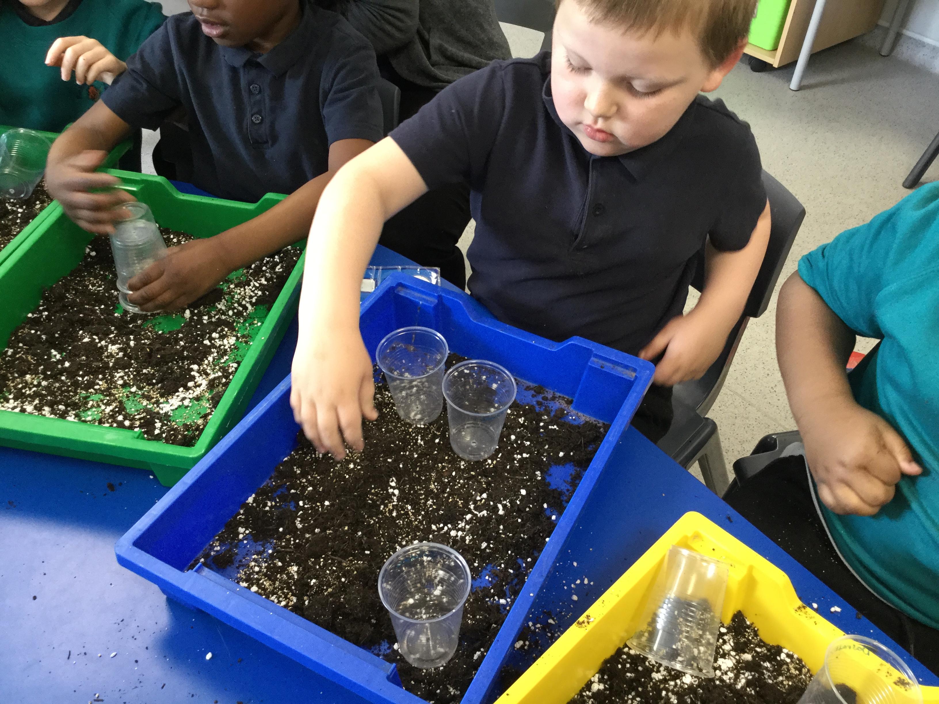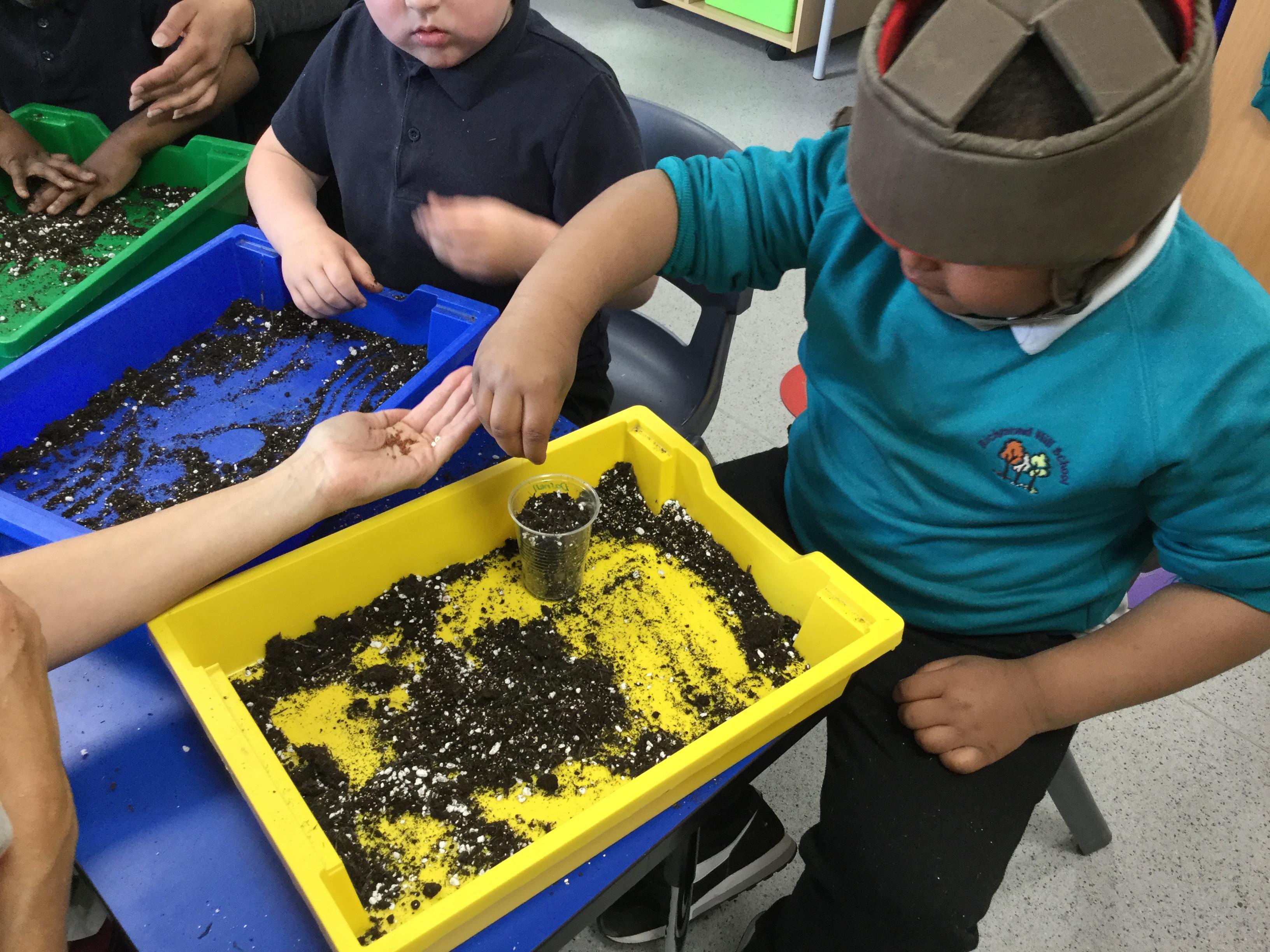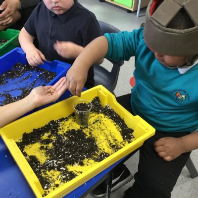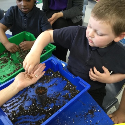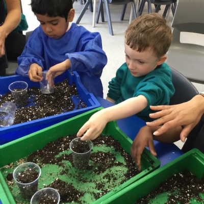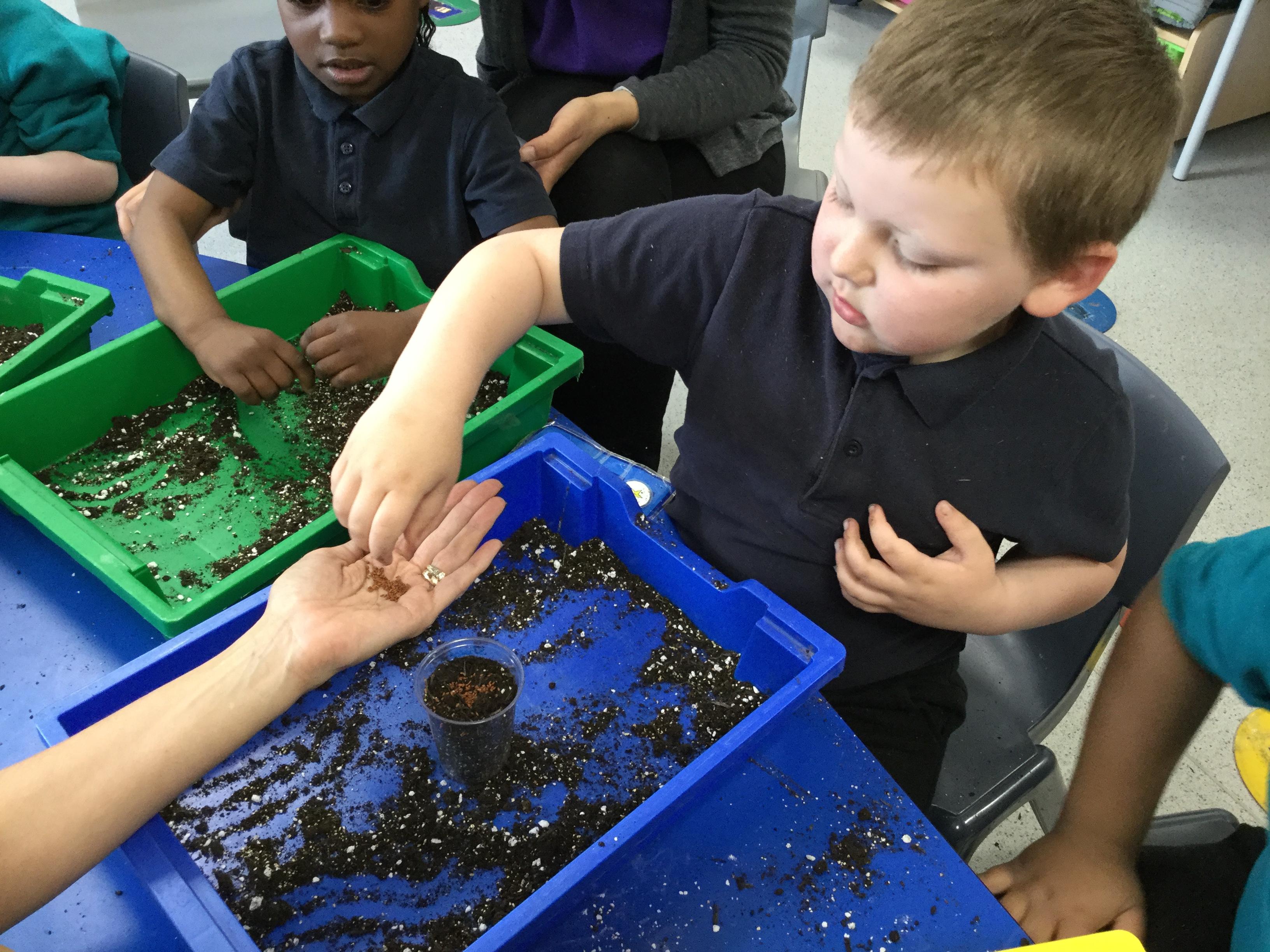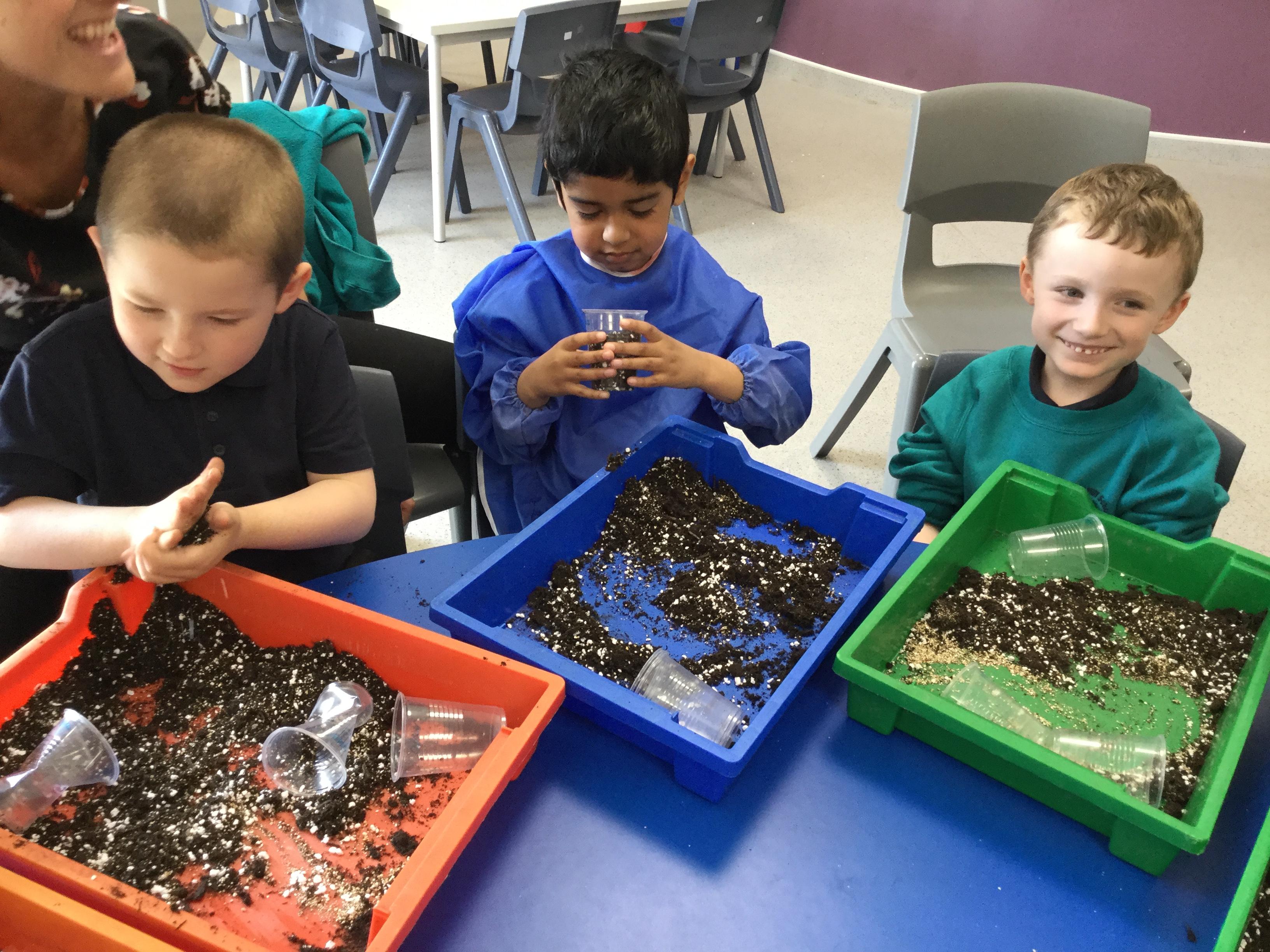 We had a visit from Vicky, the gardener at West site. We planted seeds including cress, green beans and sunflower.