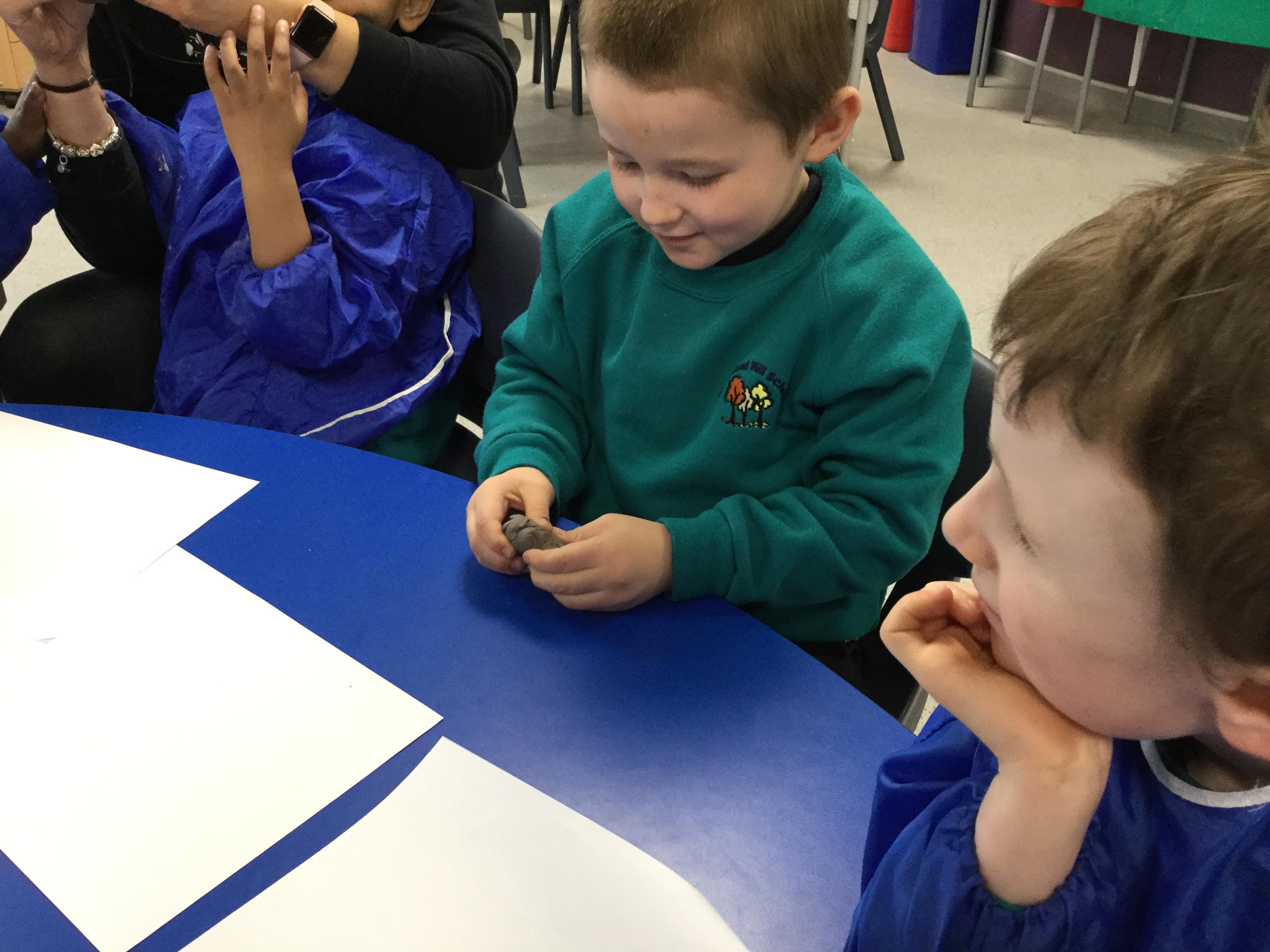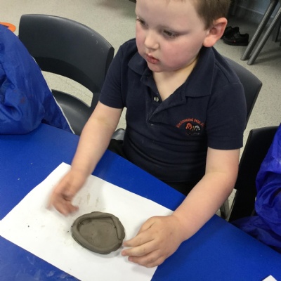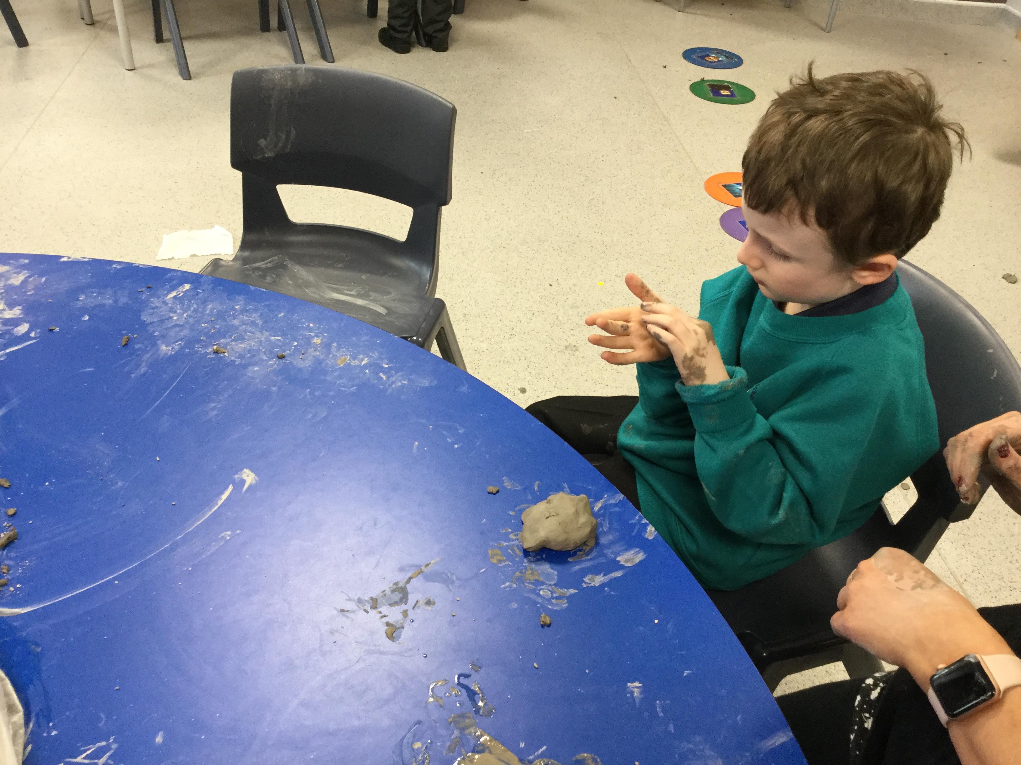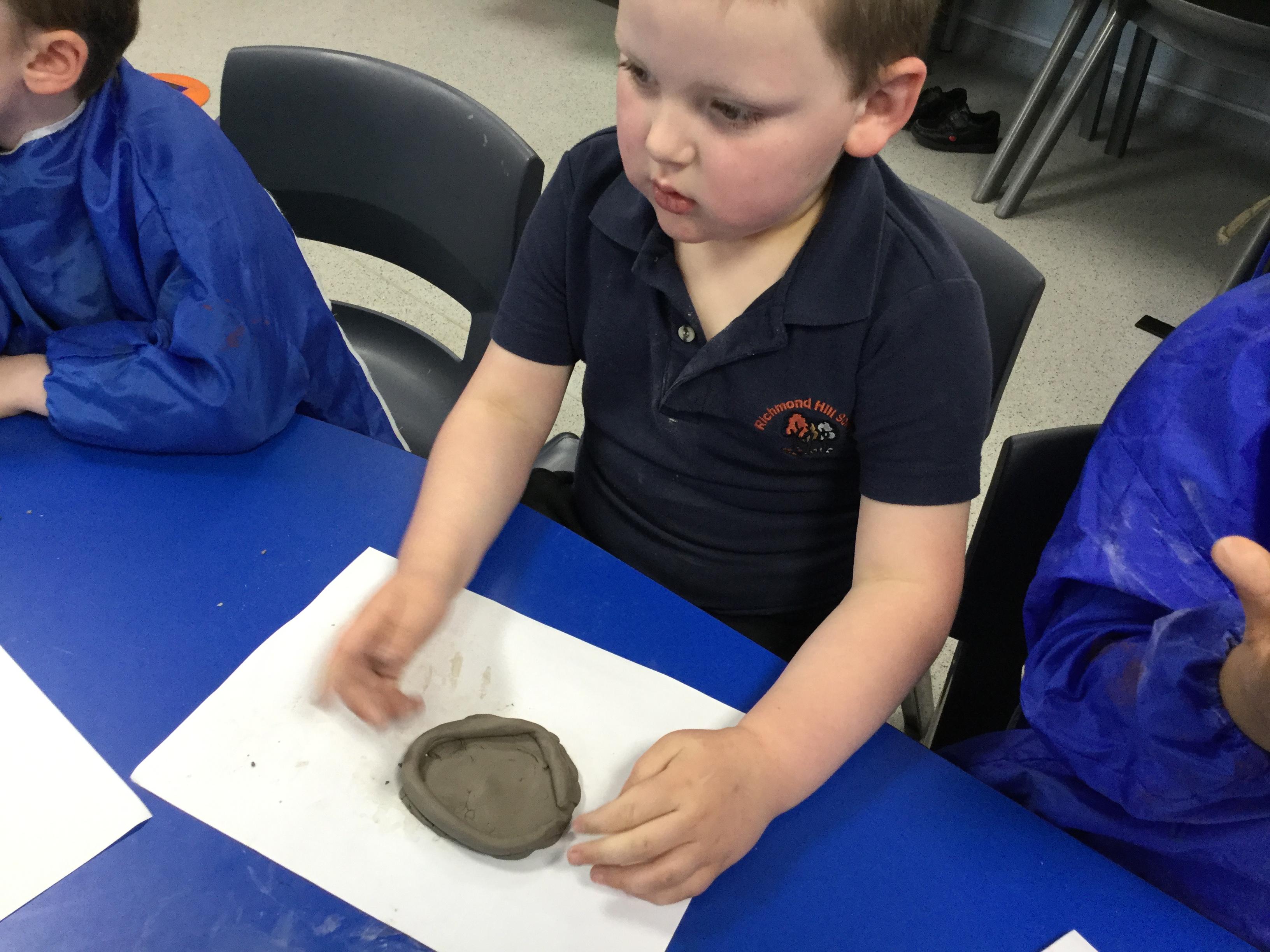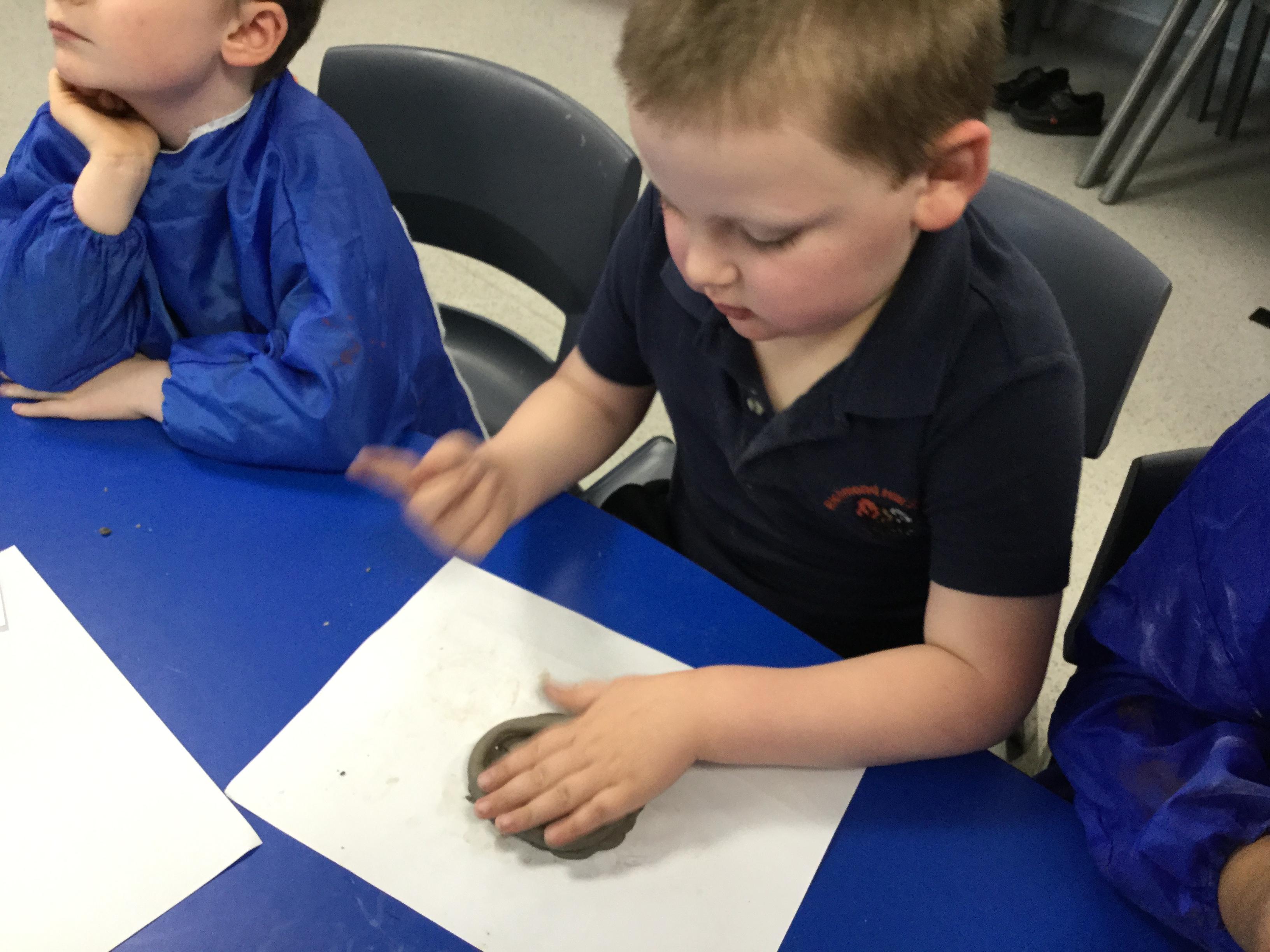 We rolled clay into long sausages and curled it round and round to make clay pots which we sent home for Mother's day.