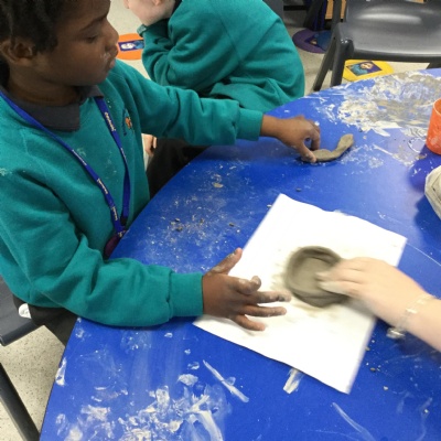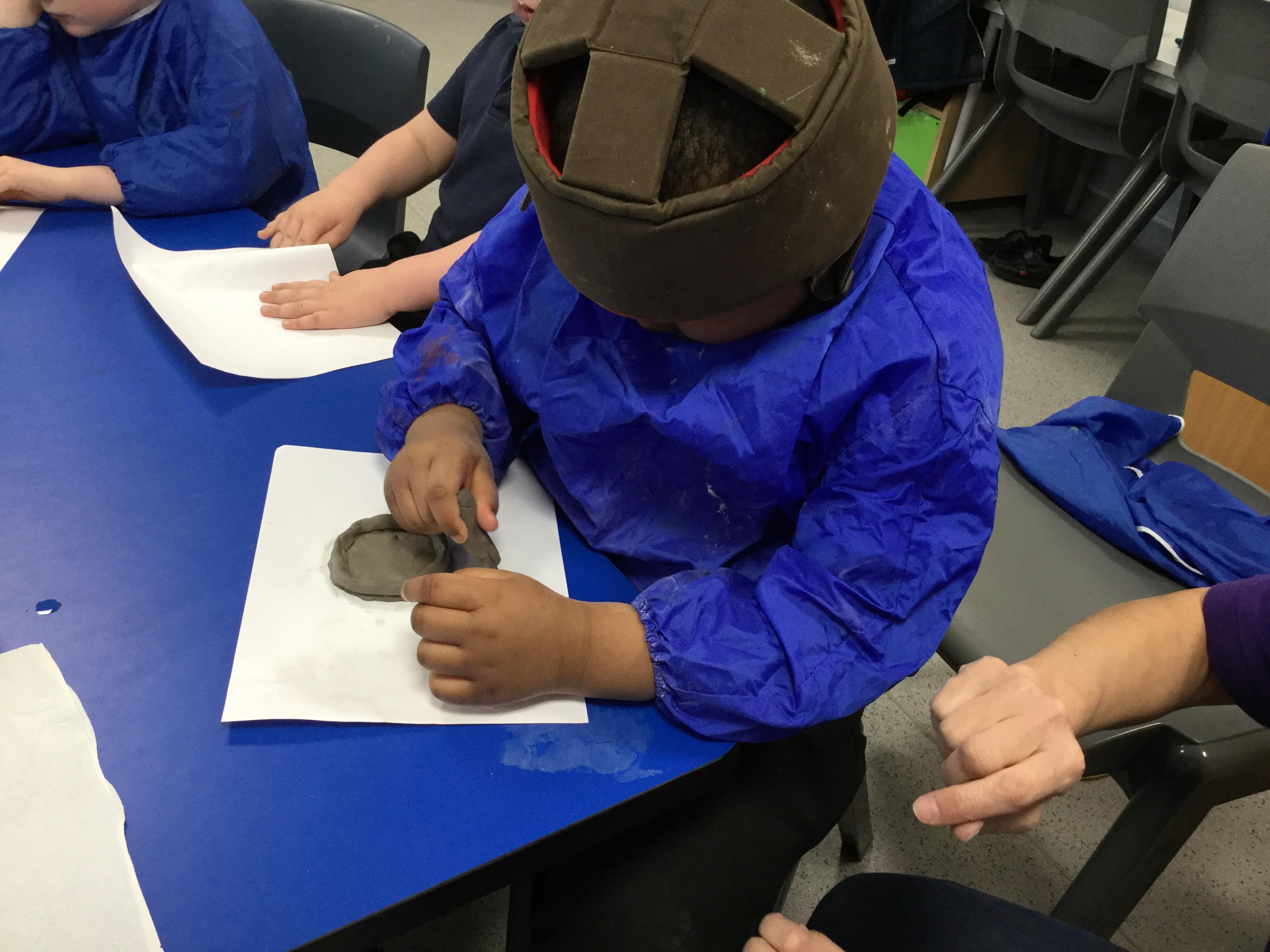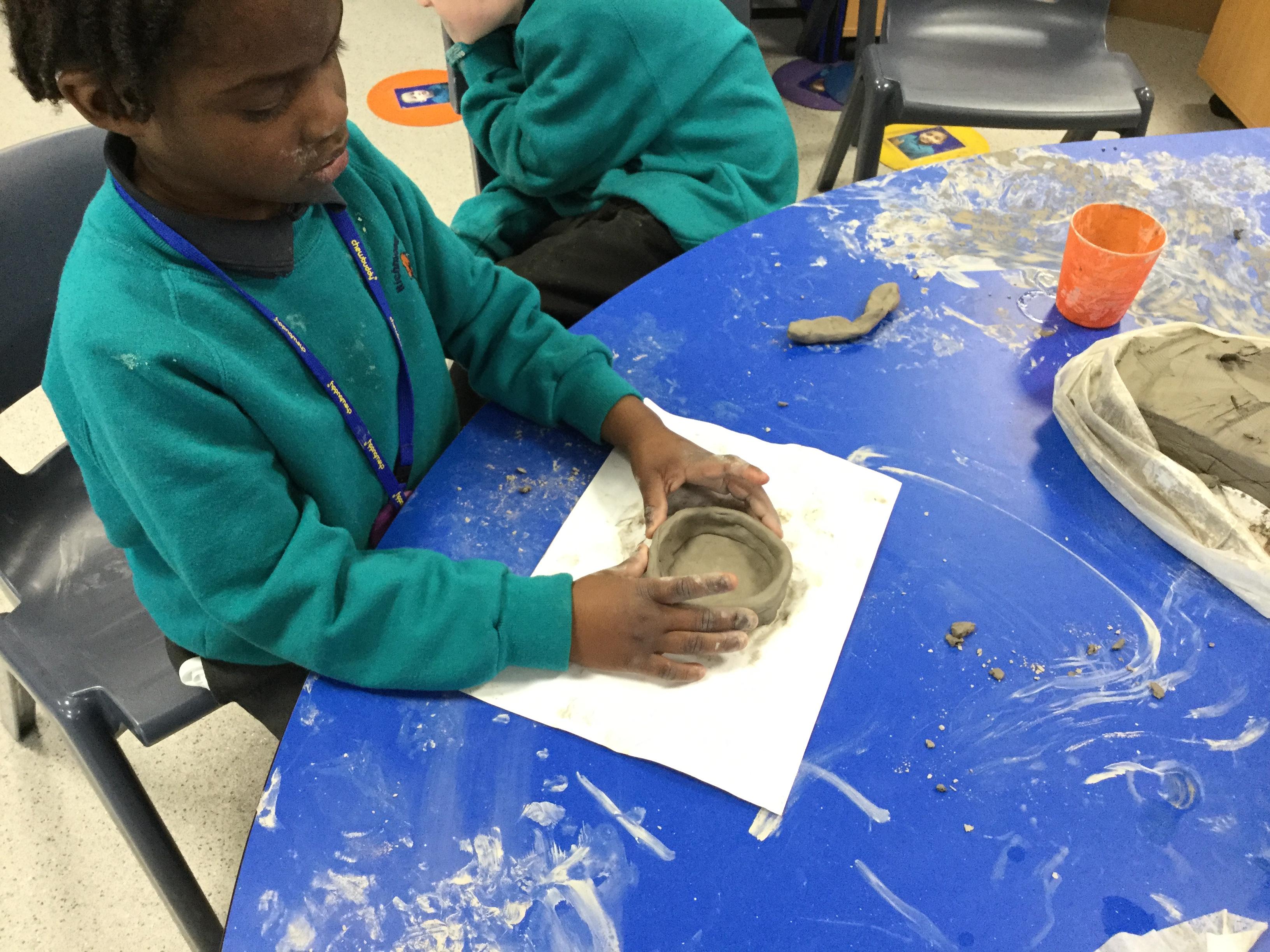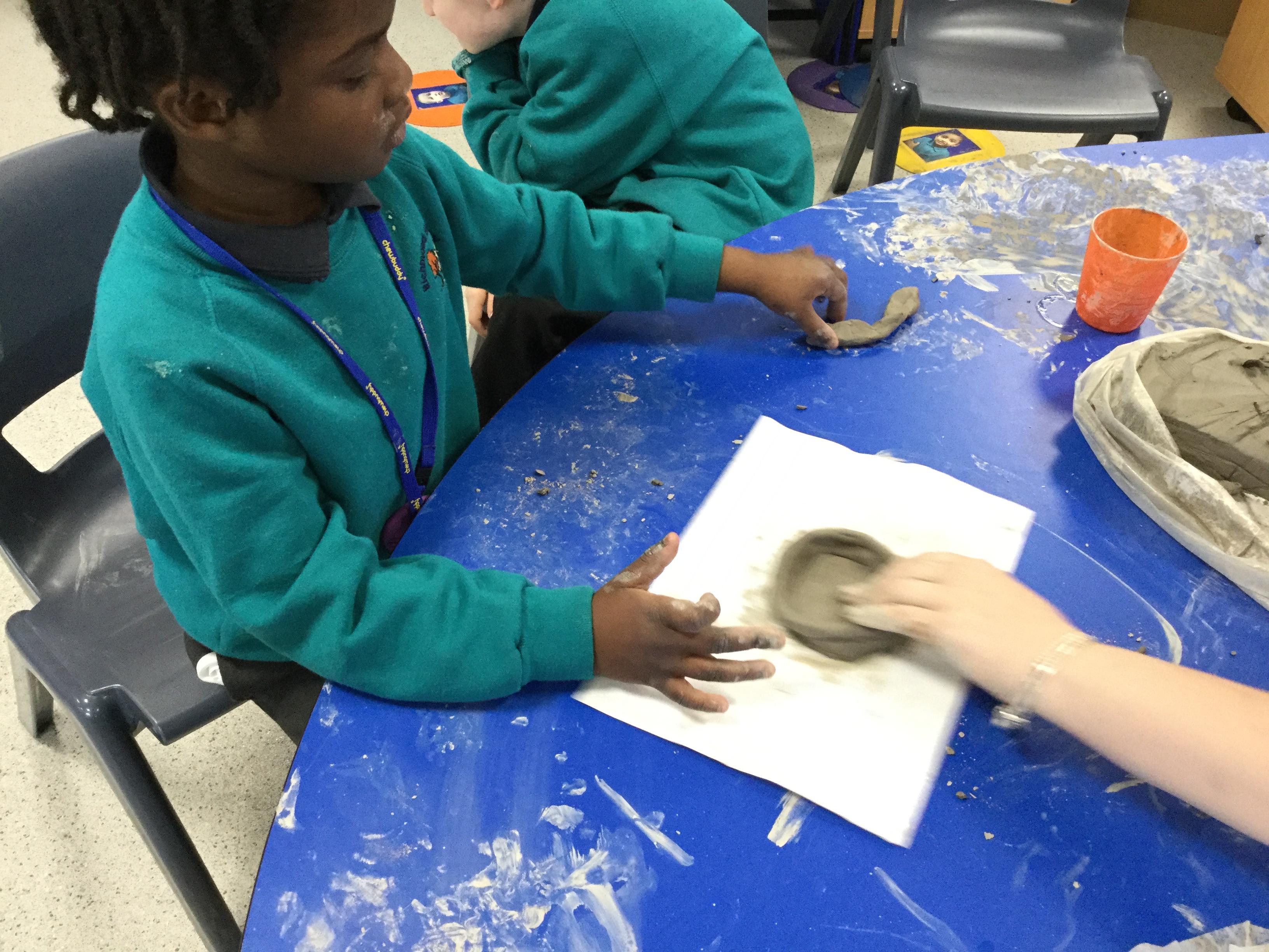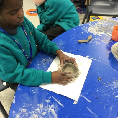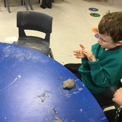 We rolled clay into long sausages and curled it round and round to make clay pots which we sent home for Mother's day.