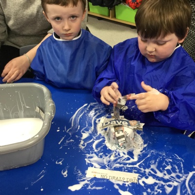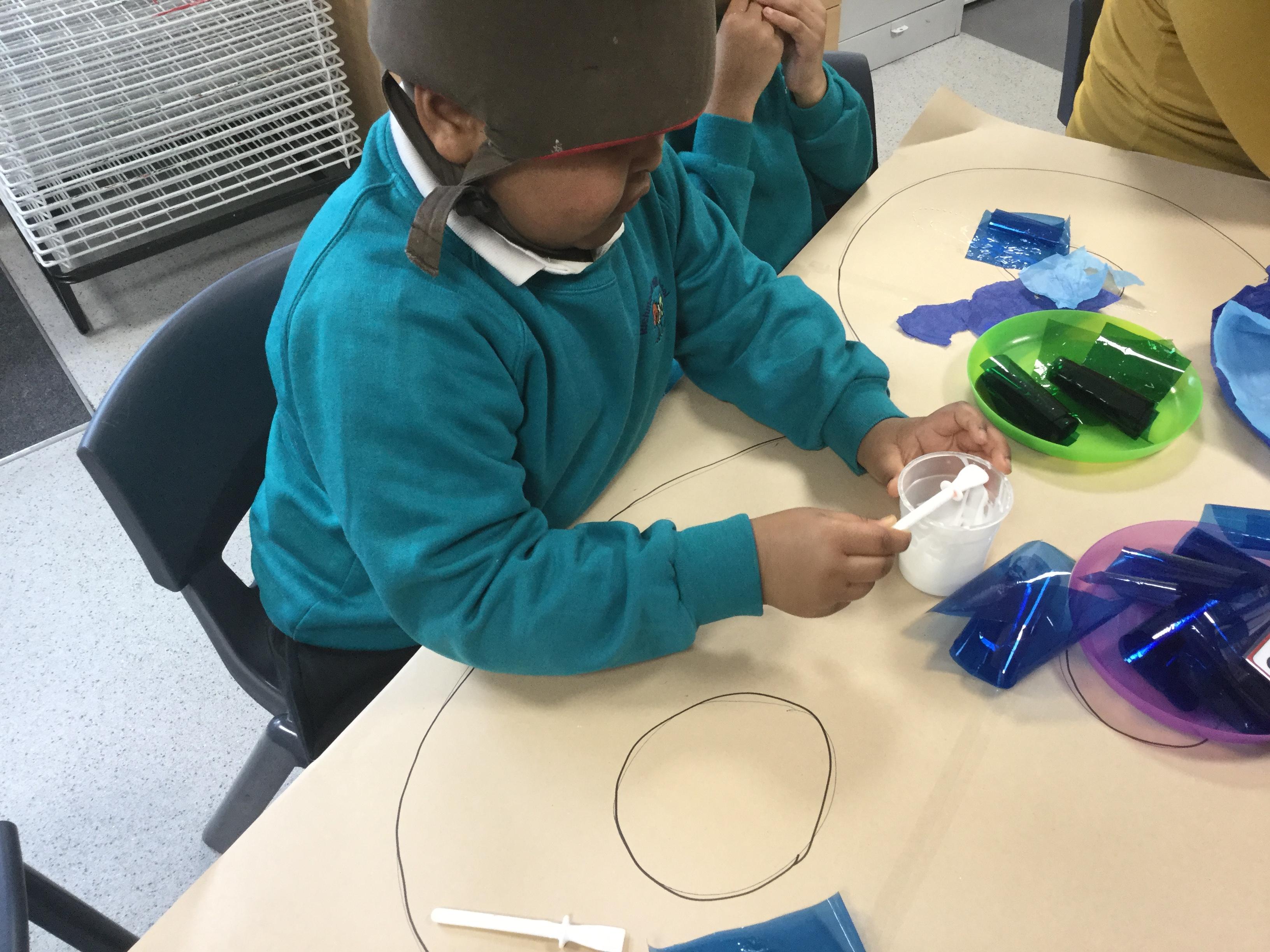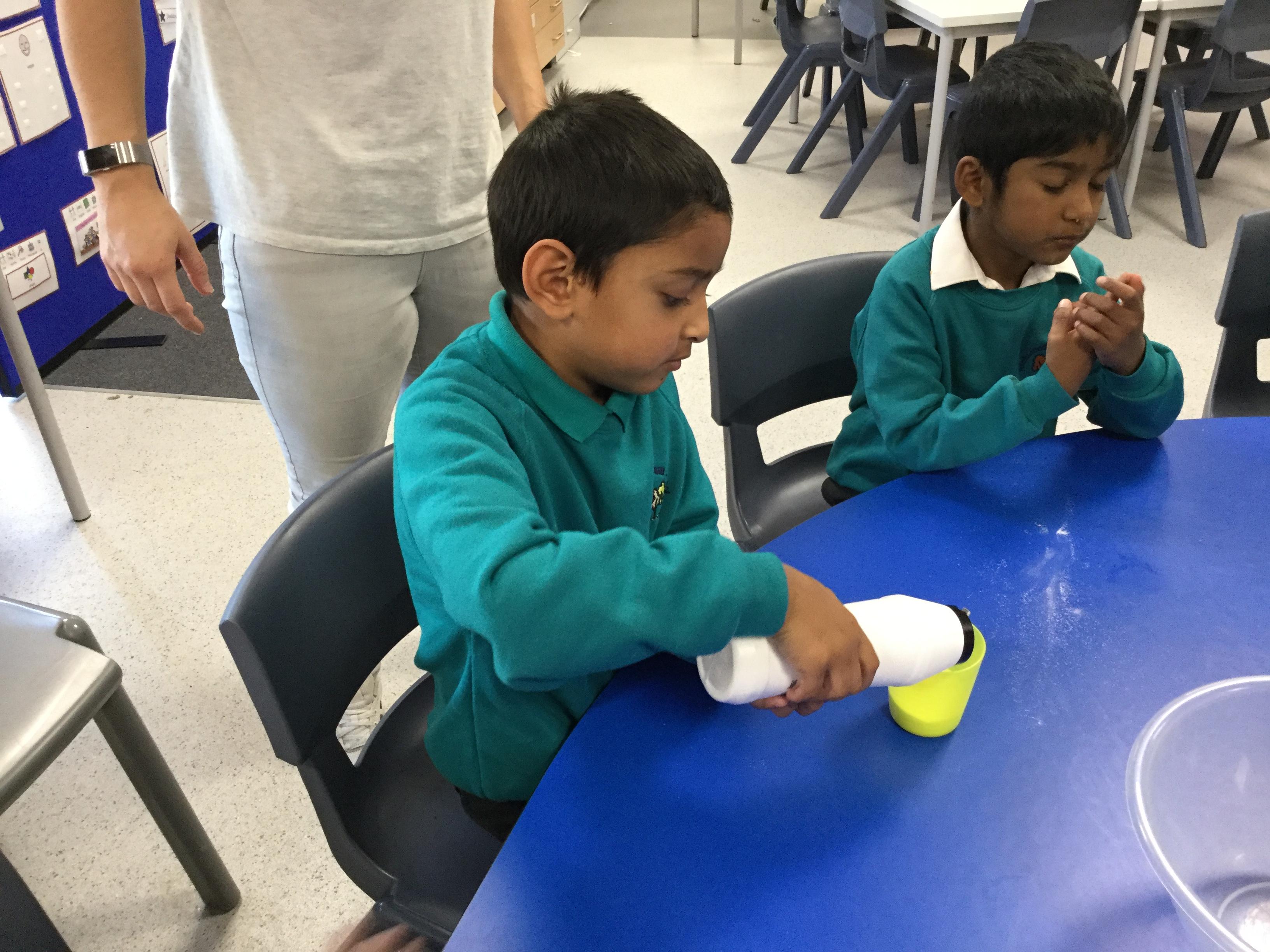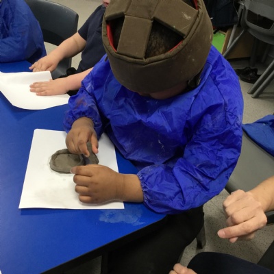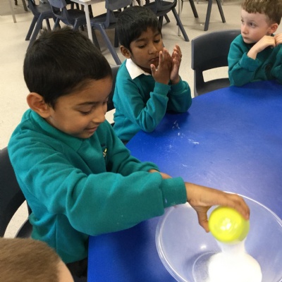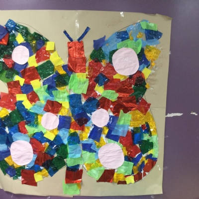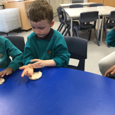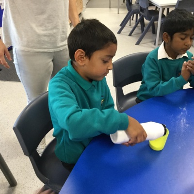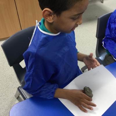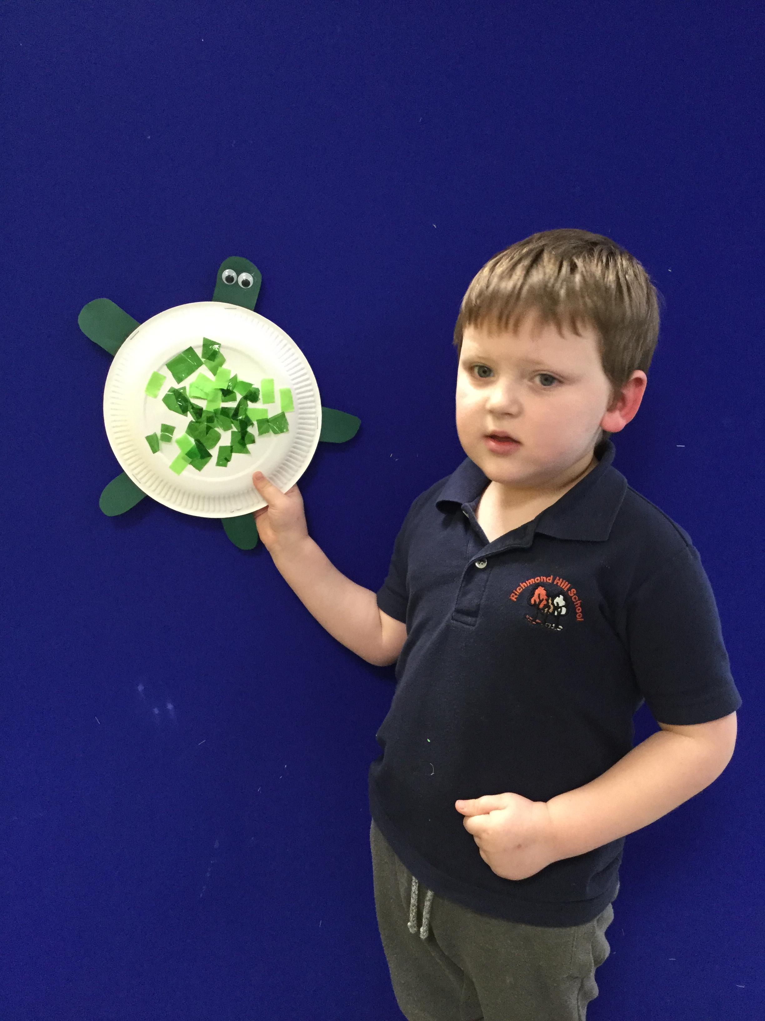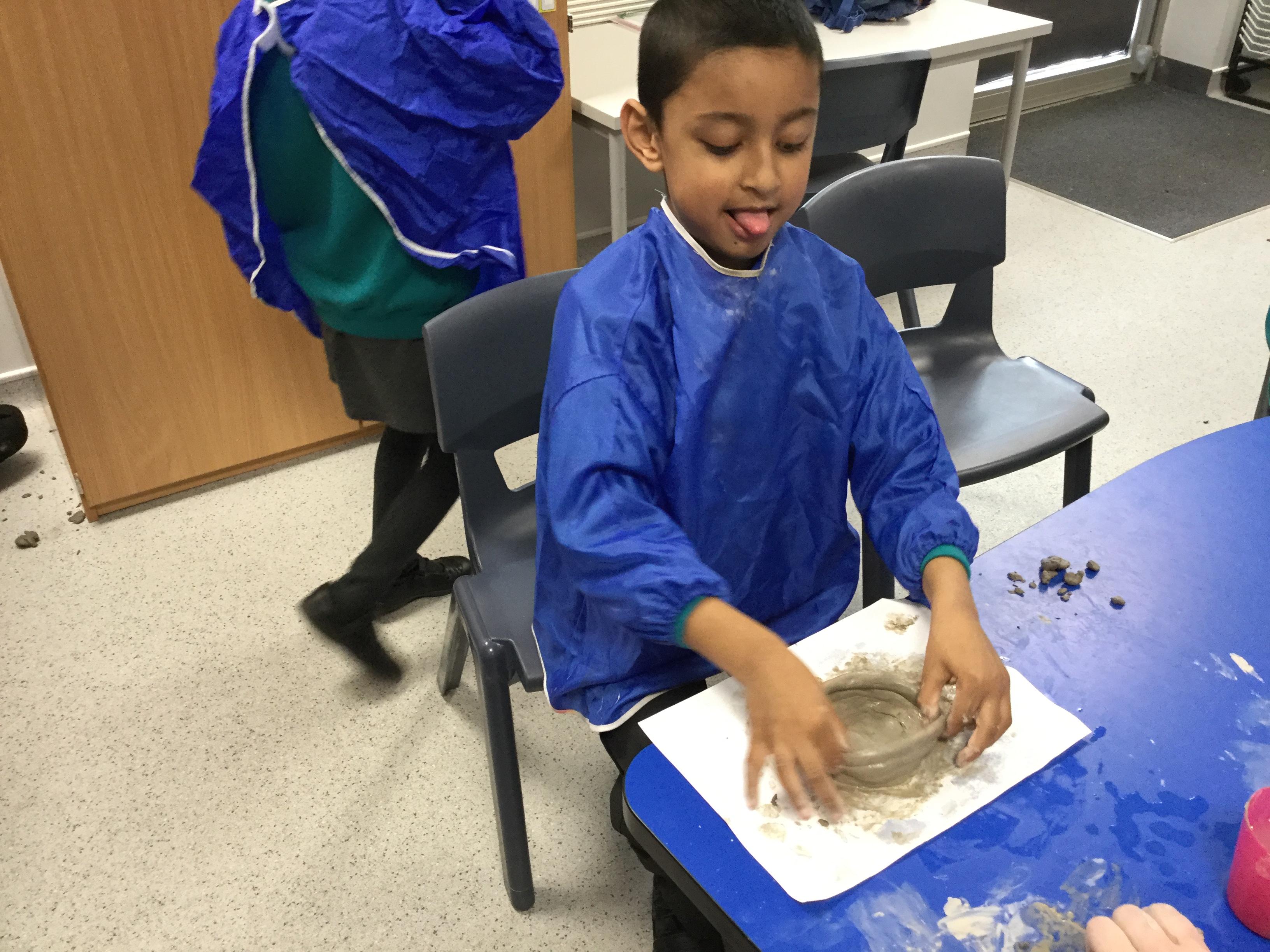 We made a bowl using paper mache. We had lots of fun tearing the newspaper and got our hands very sticky!!