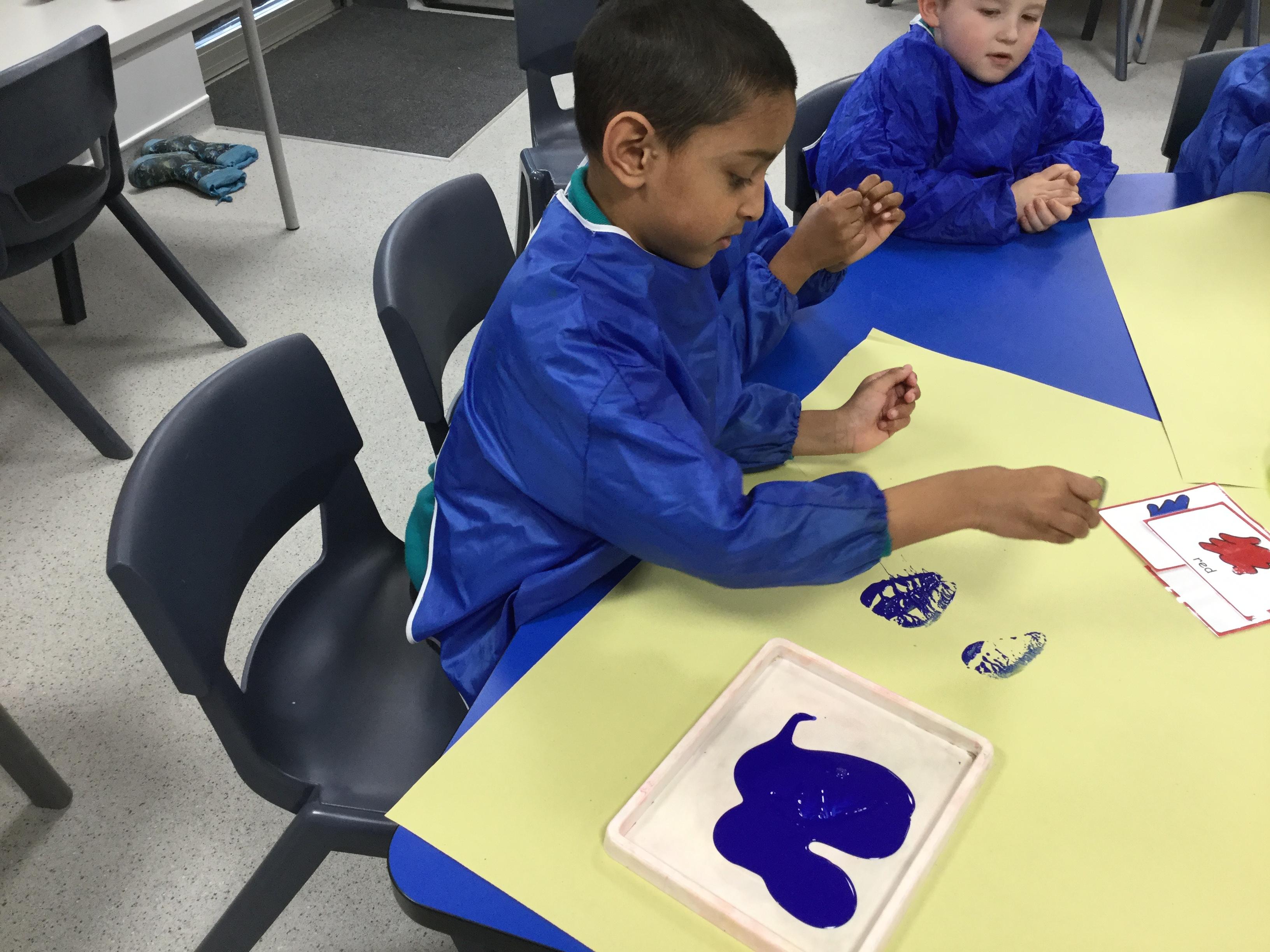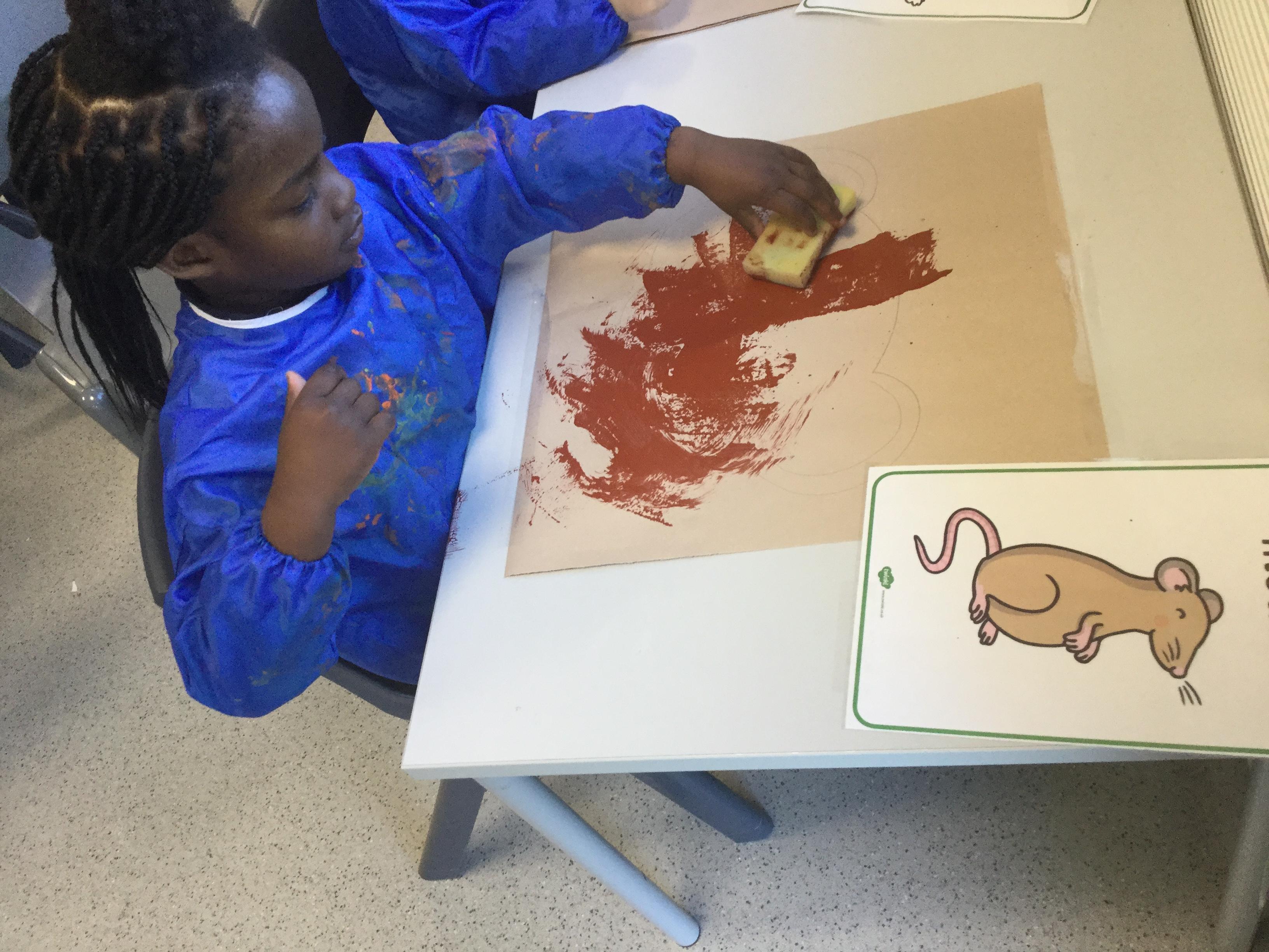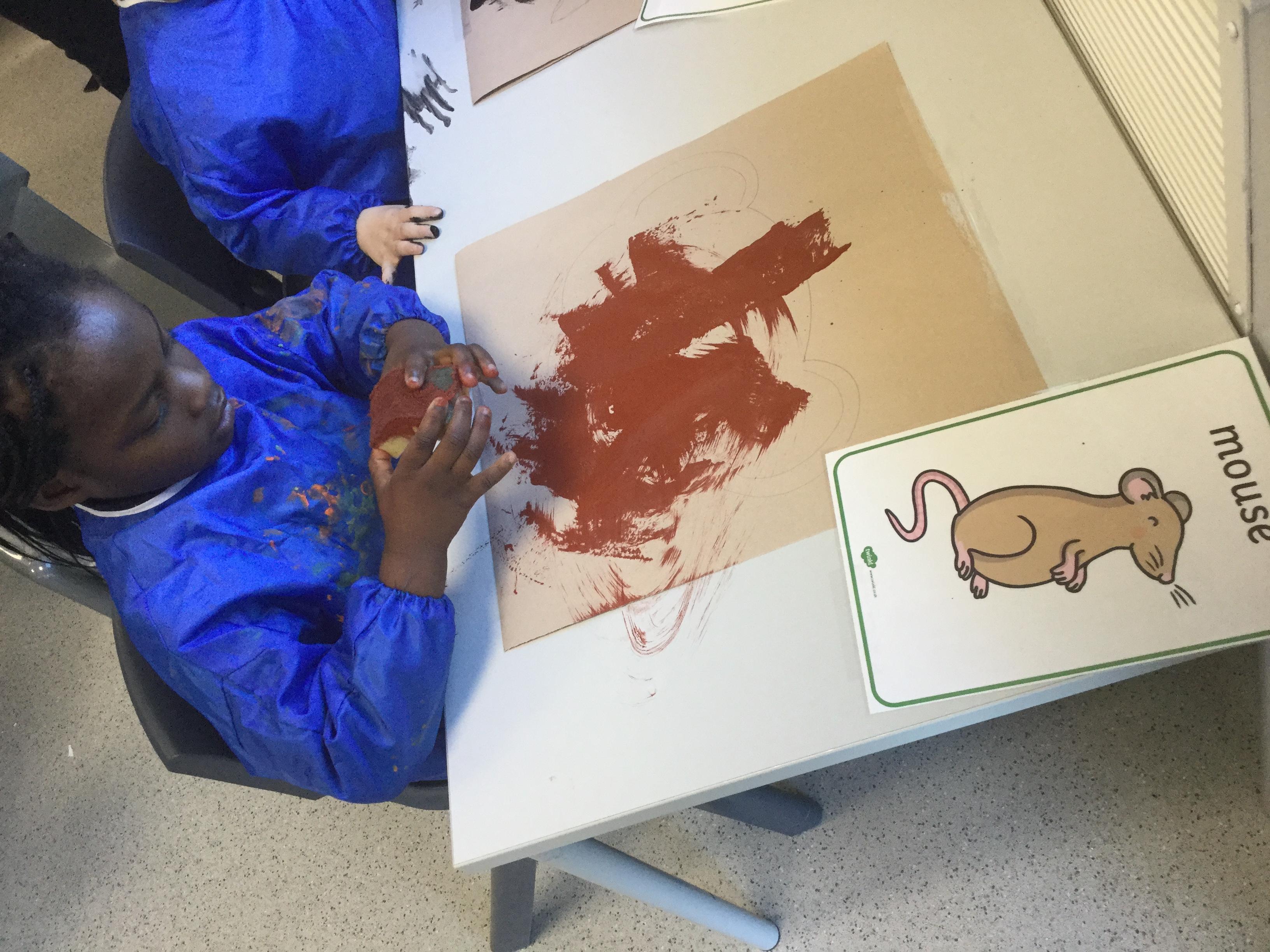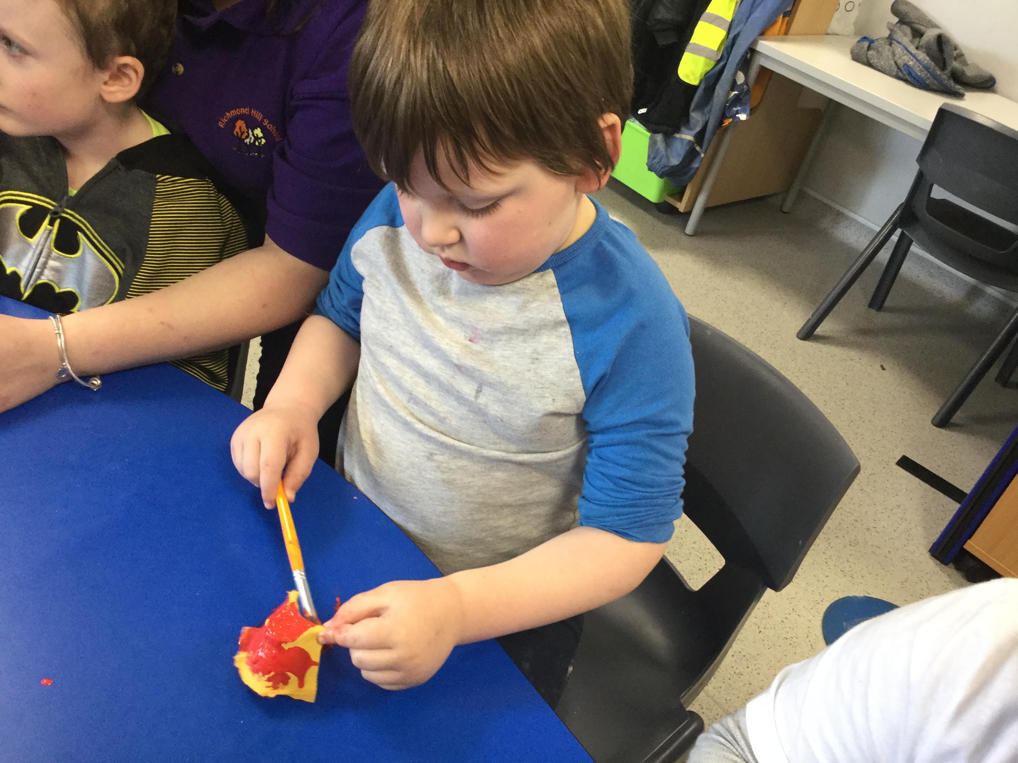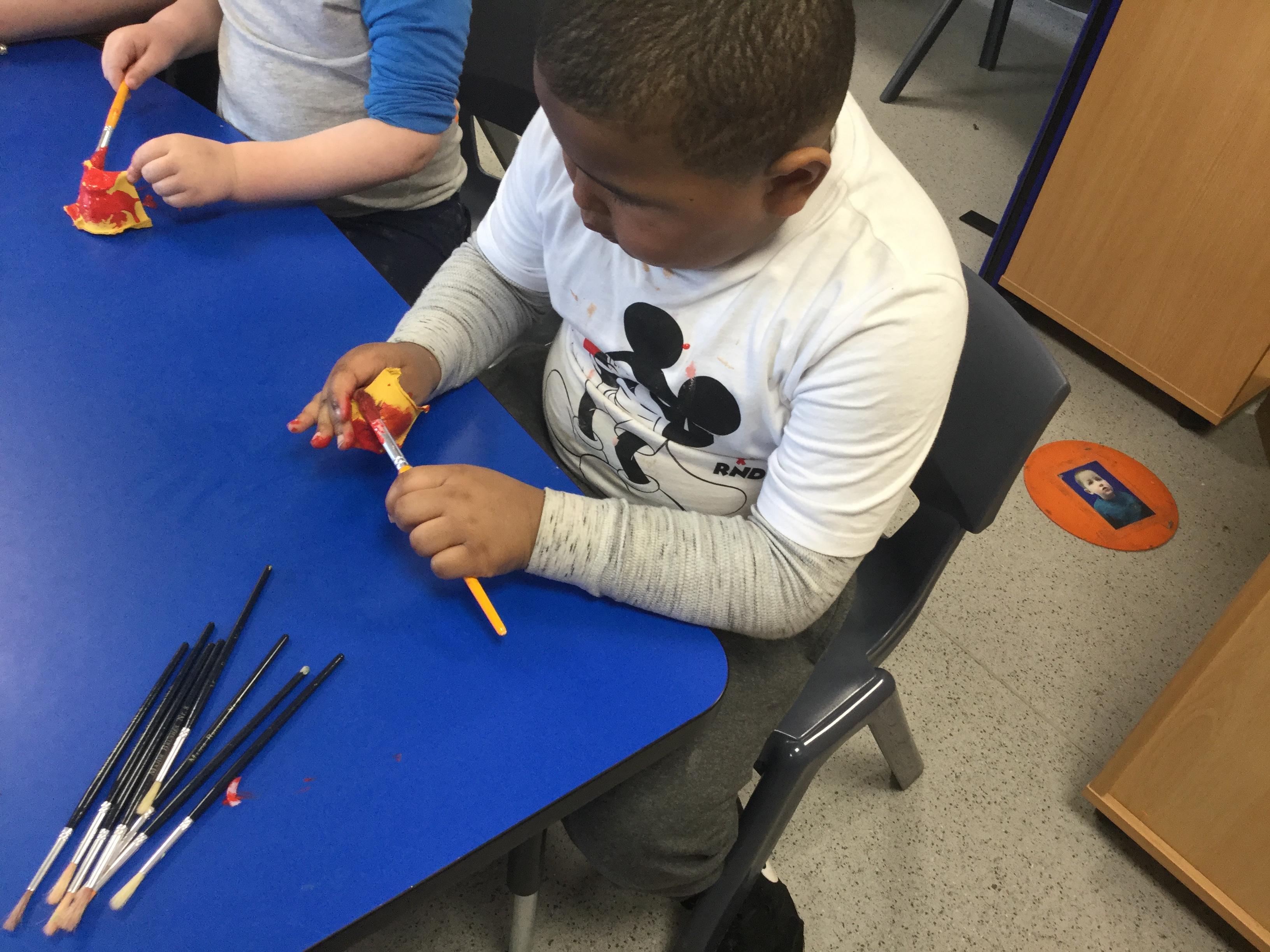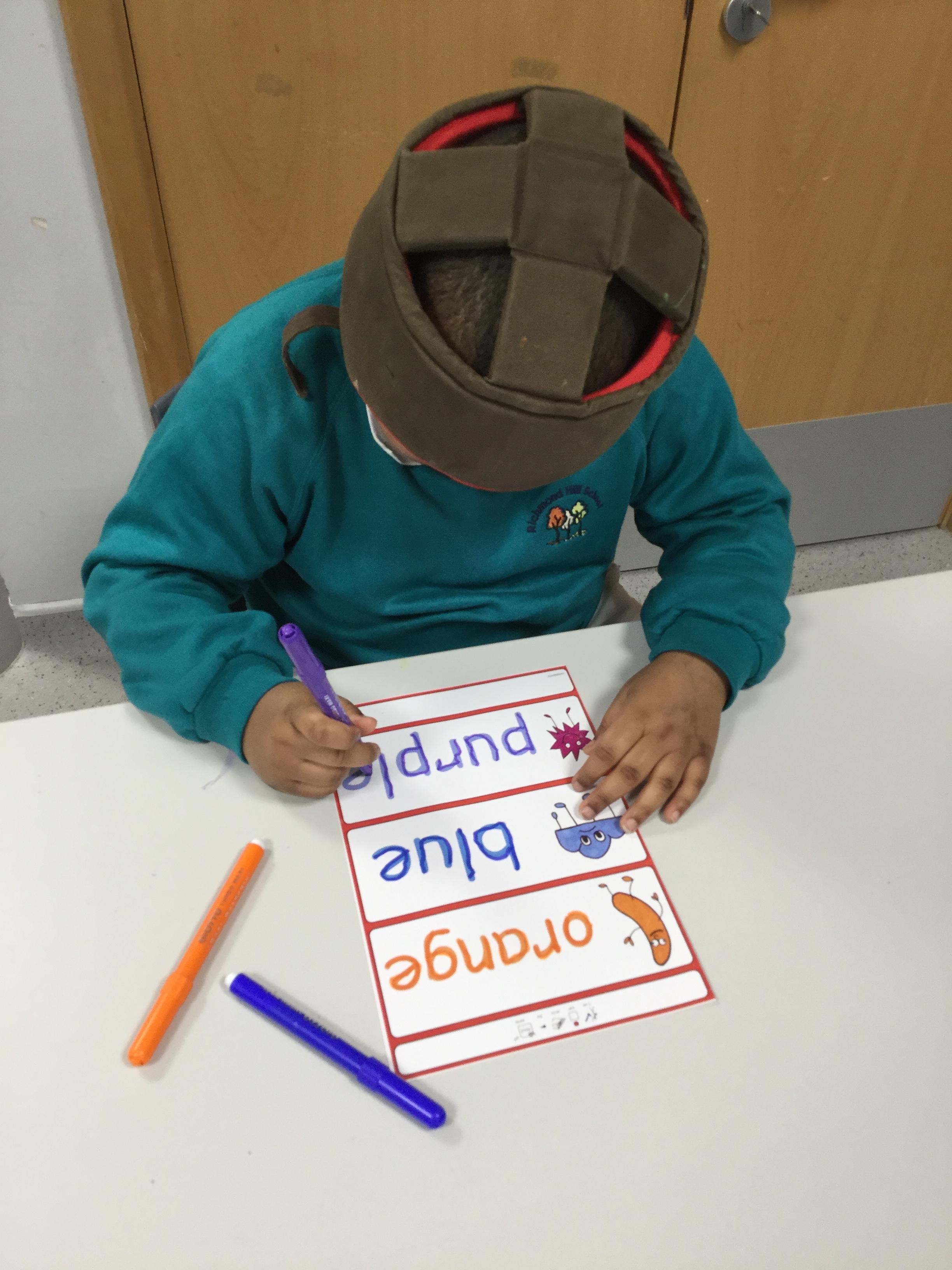 We have been having lots of fun with our story so far this term. We have been for a walk looking for the red monster, creating the monsters for our class display board, over writing or under writing the different colours with the matching felt tip and making marks using the different coloured resources.