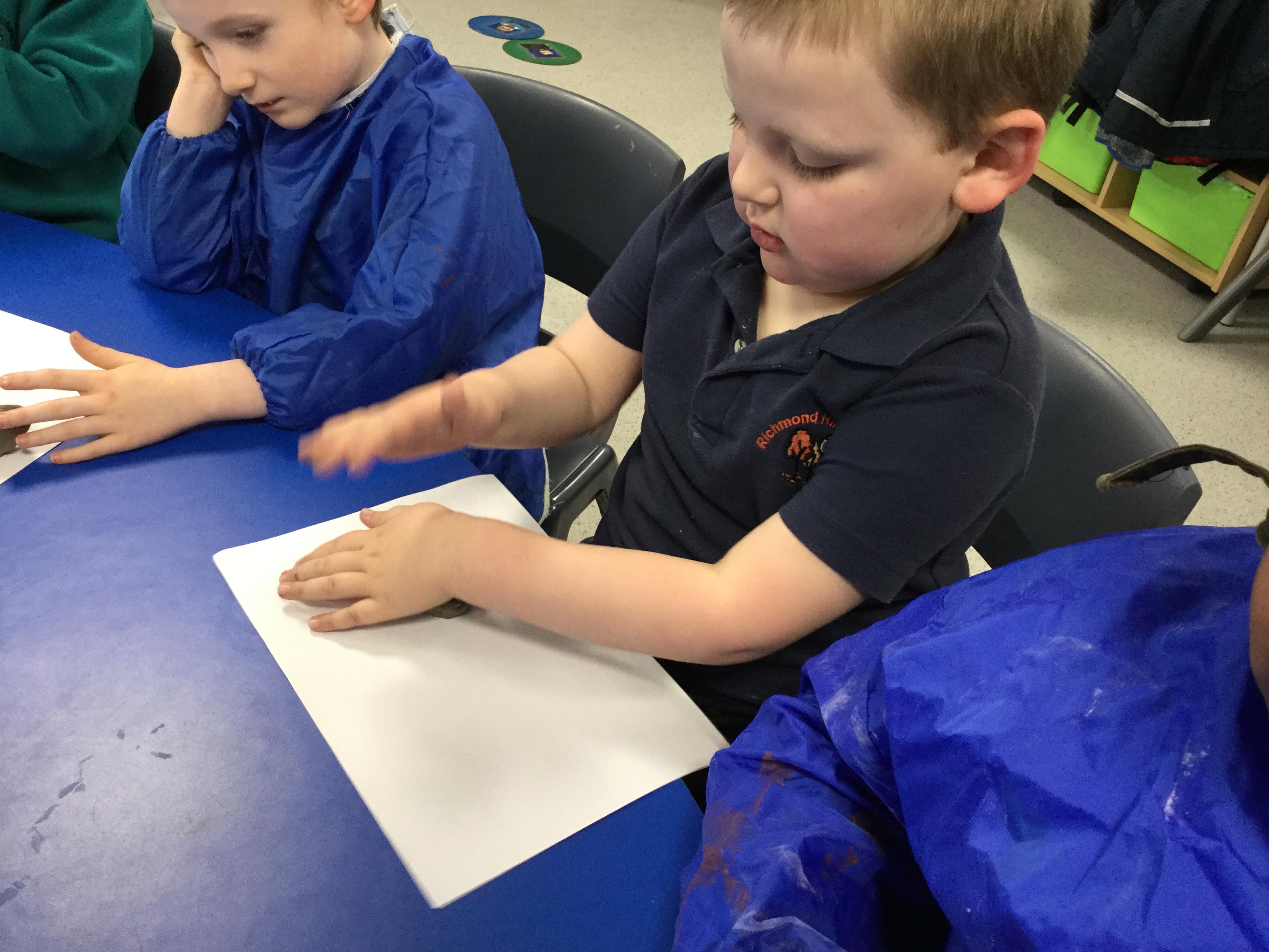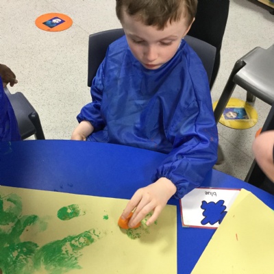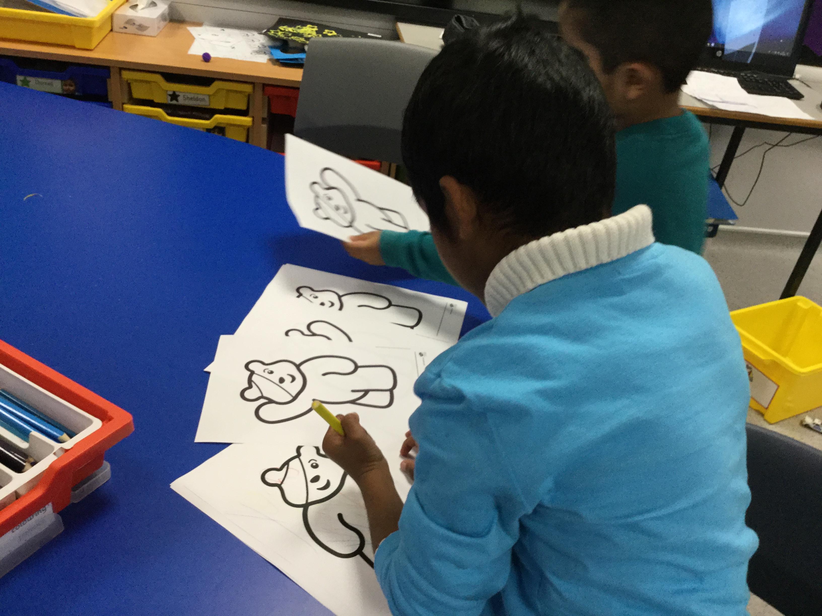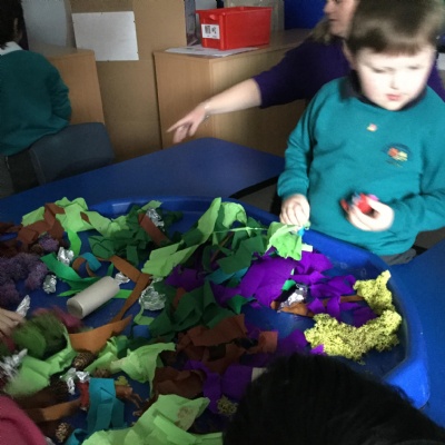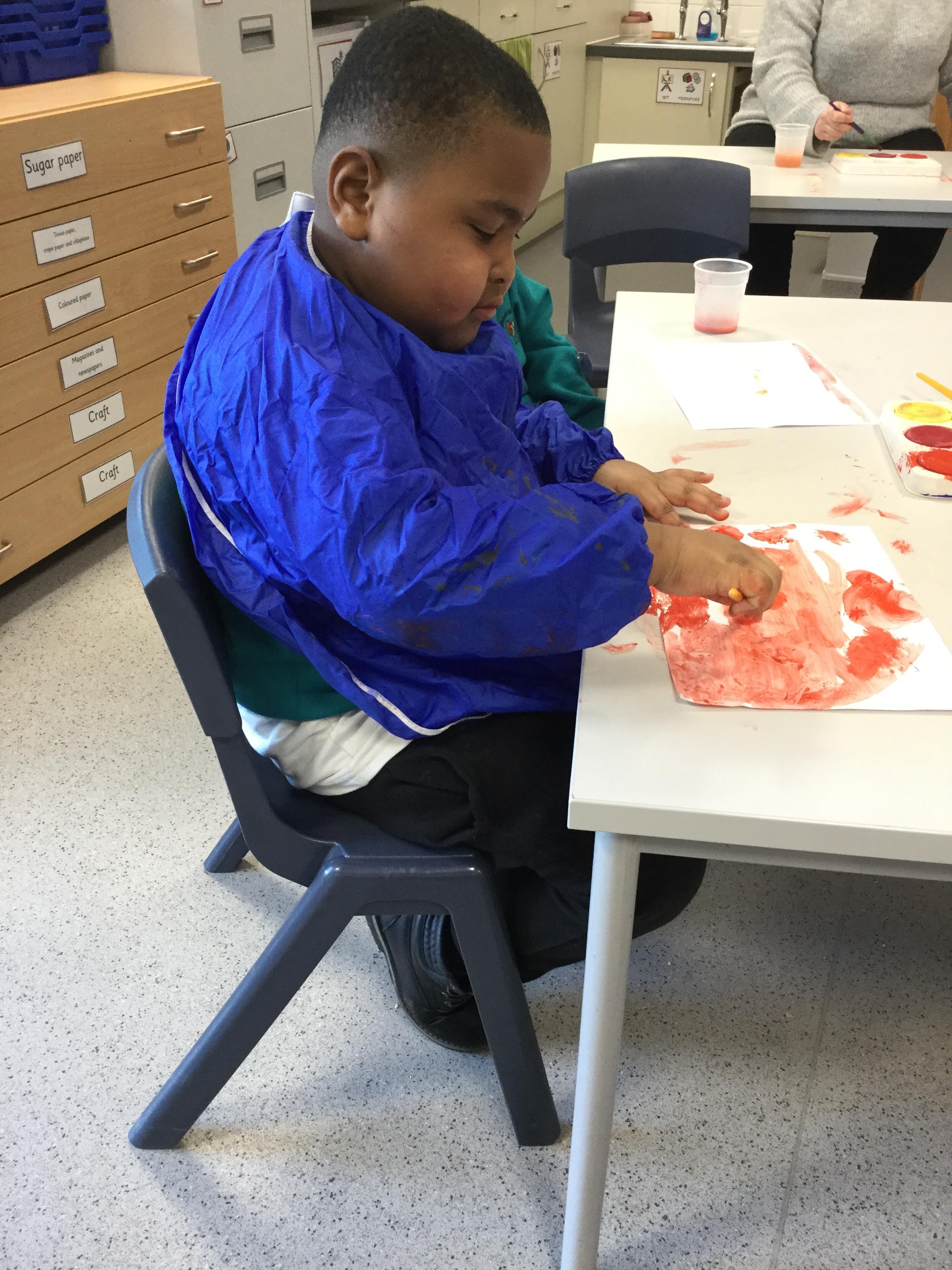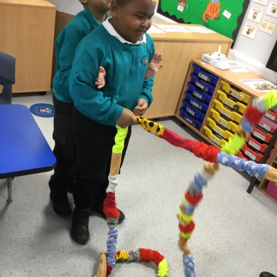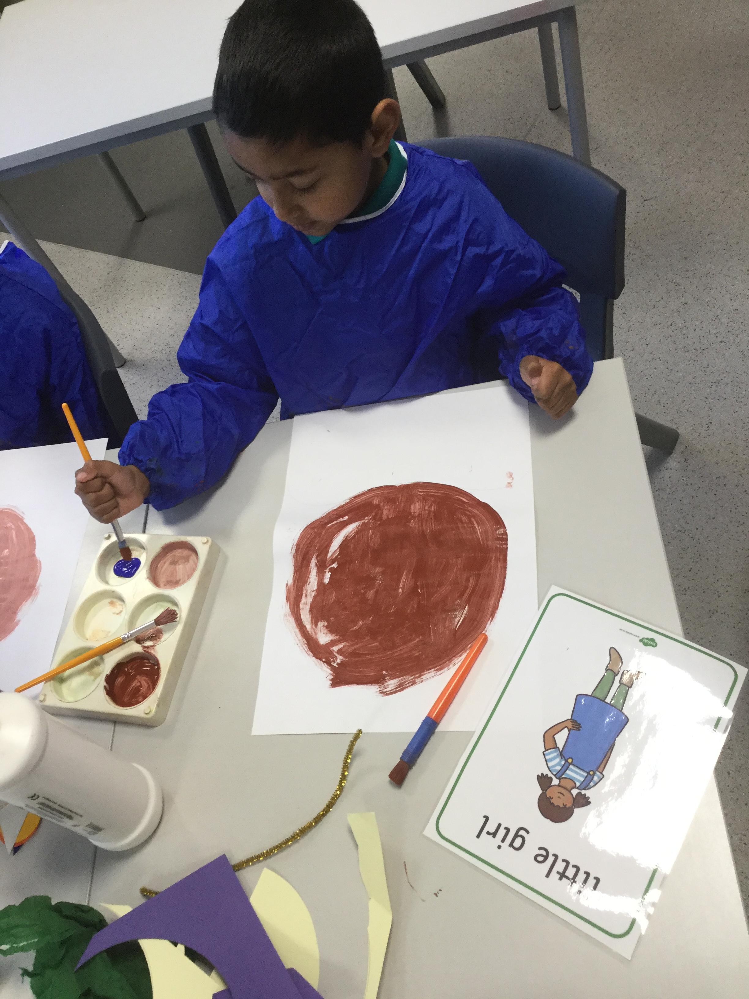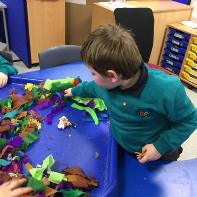 We have been having lots of fun with our story so far this term. We have been for a walk looking for the red monster, creating the monsters for our class display board, over writing or under writing the different colours with the matching felt tip and making marks using the different coloured resources.