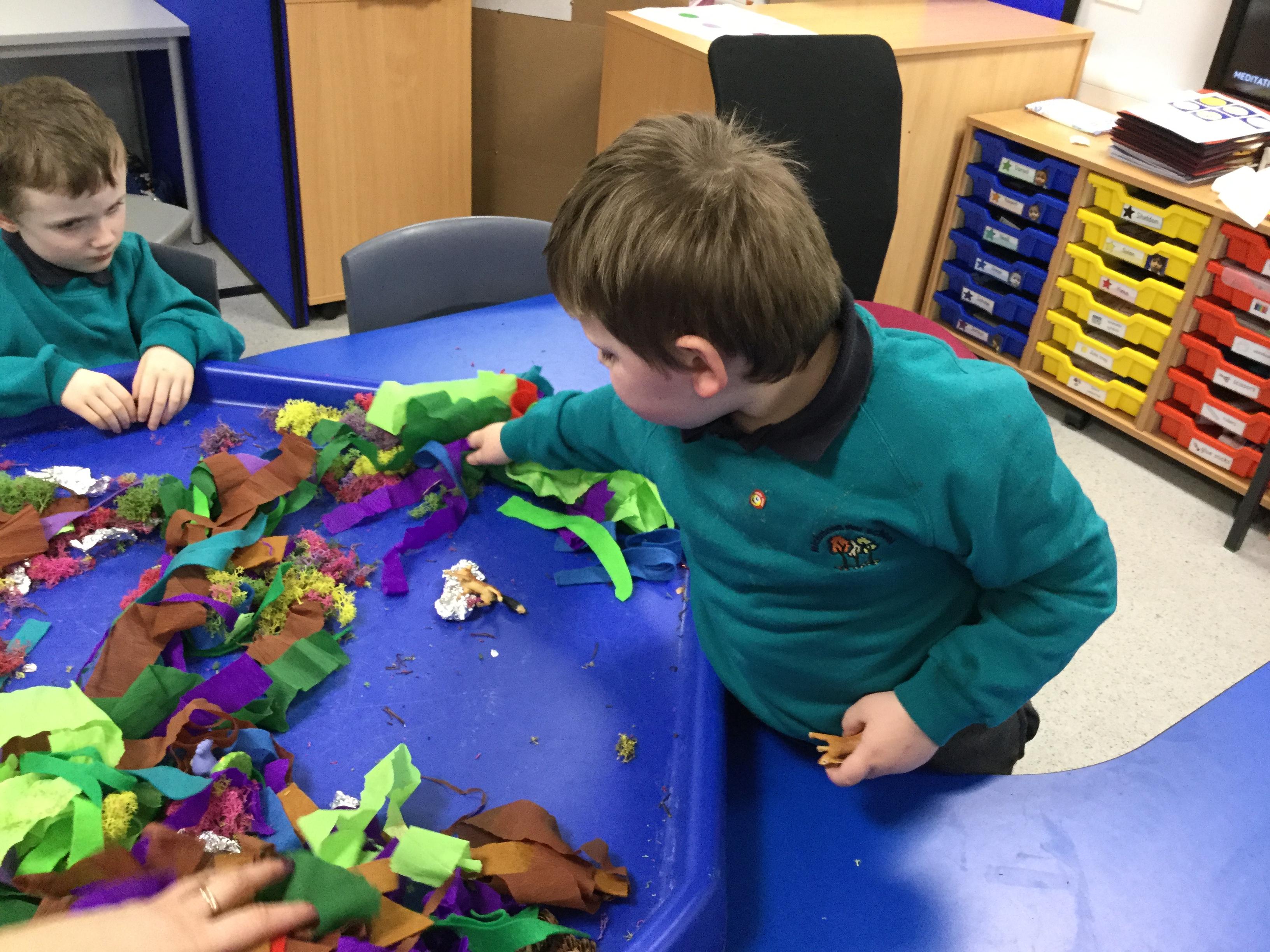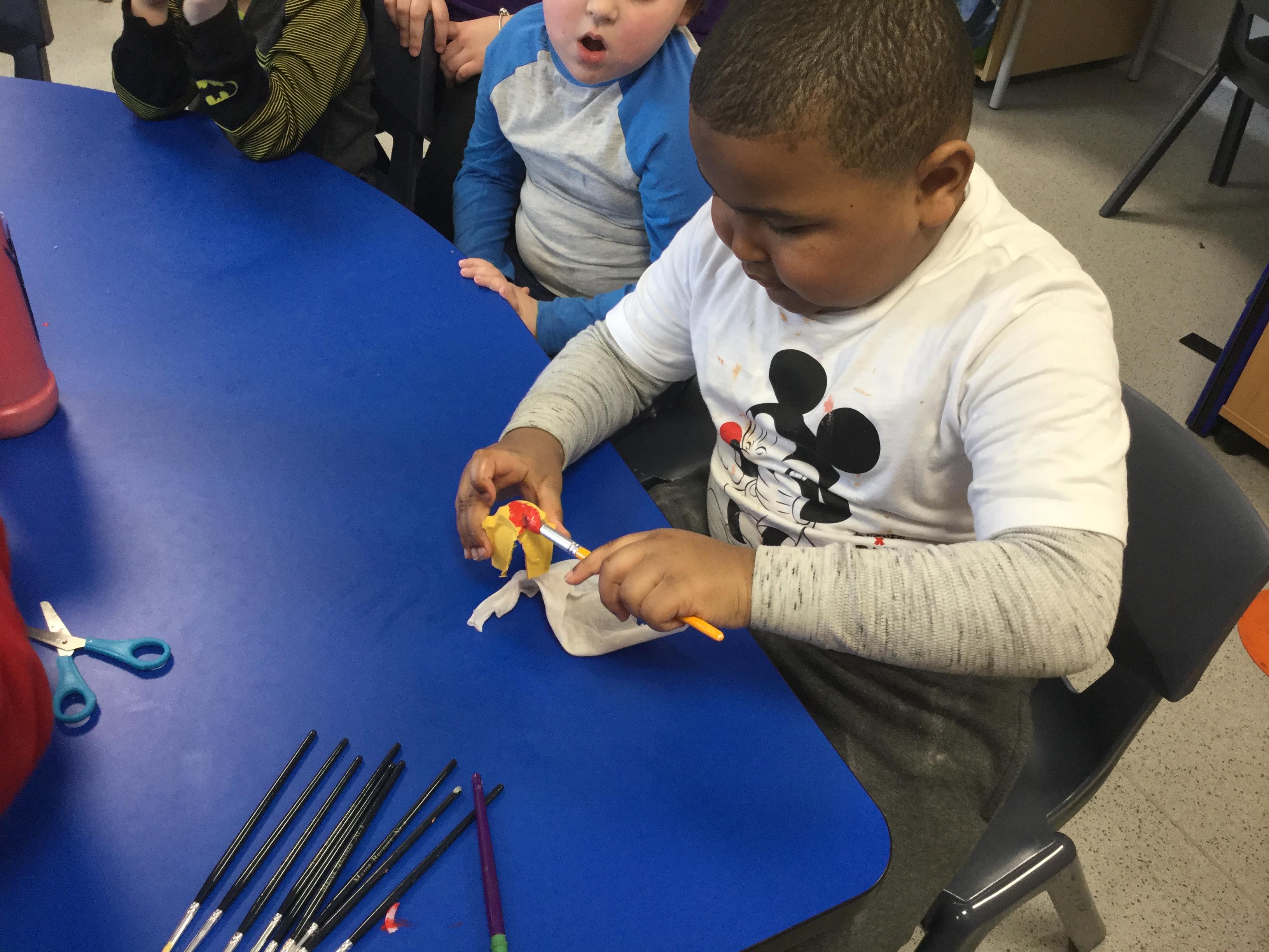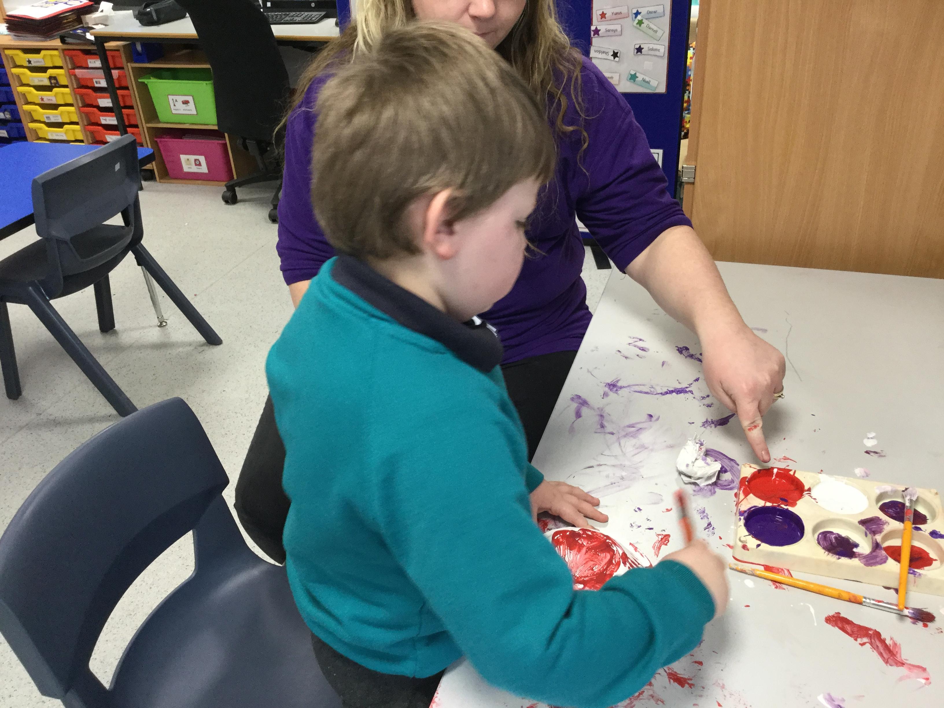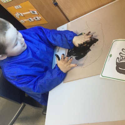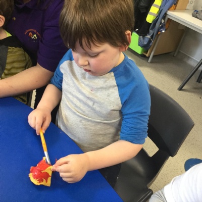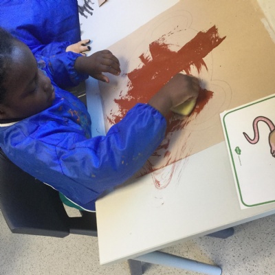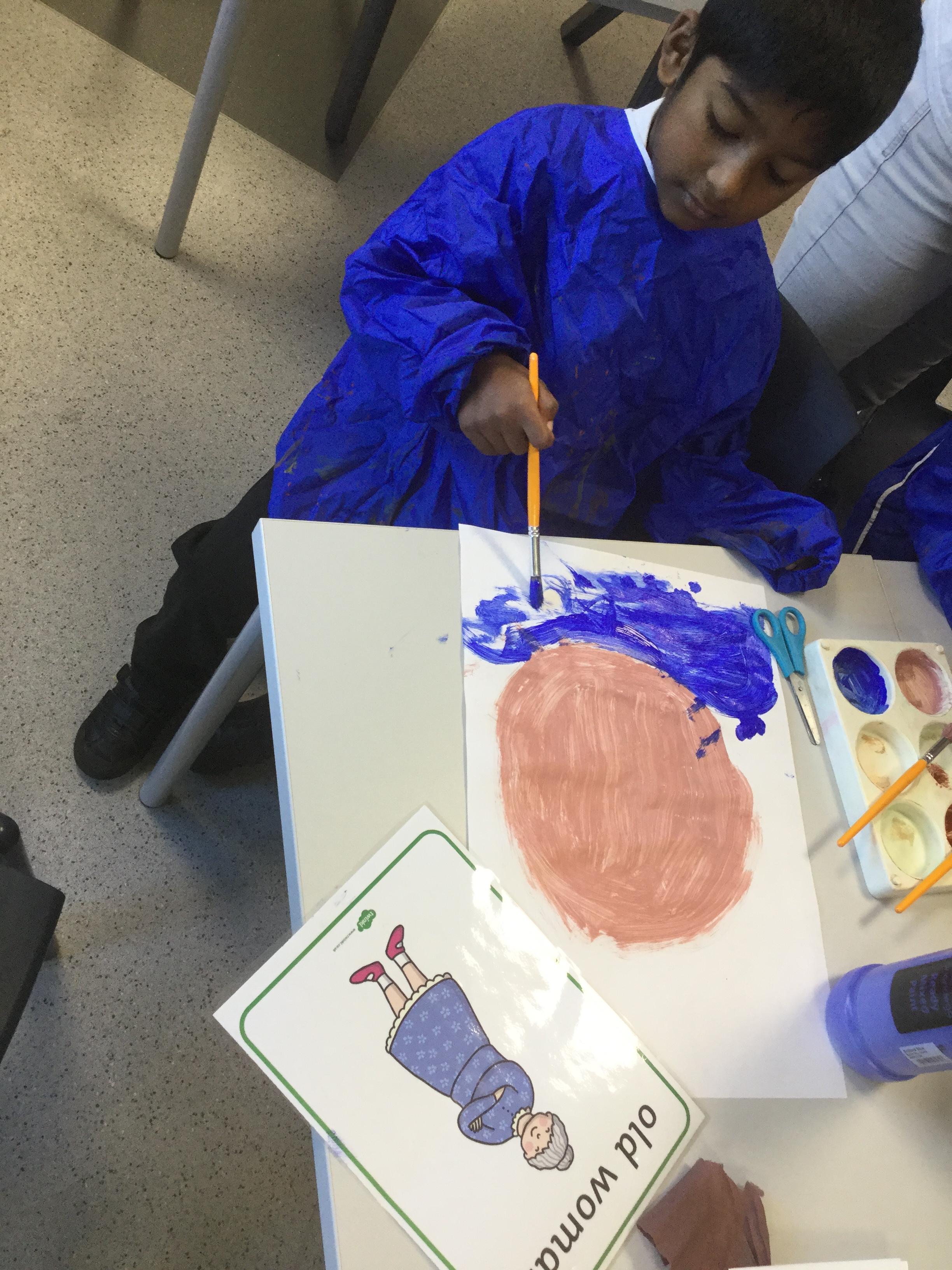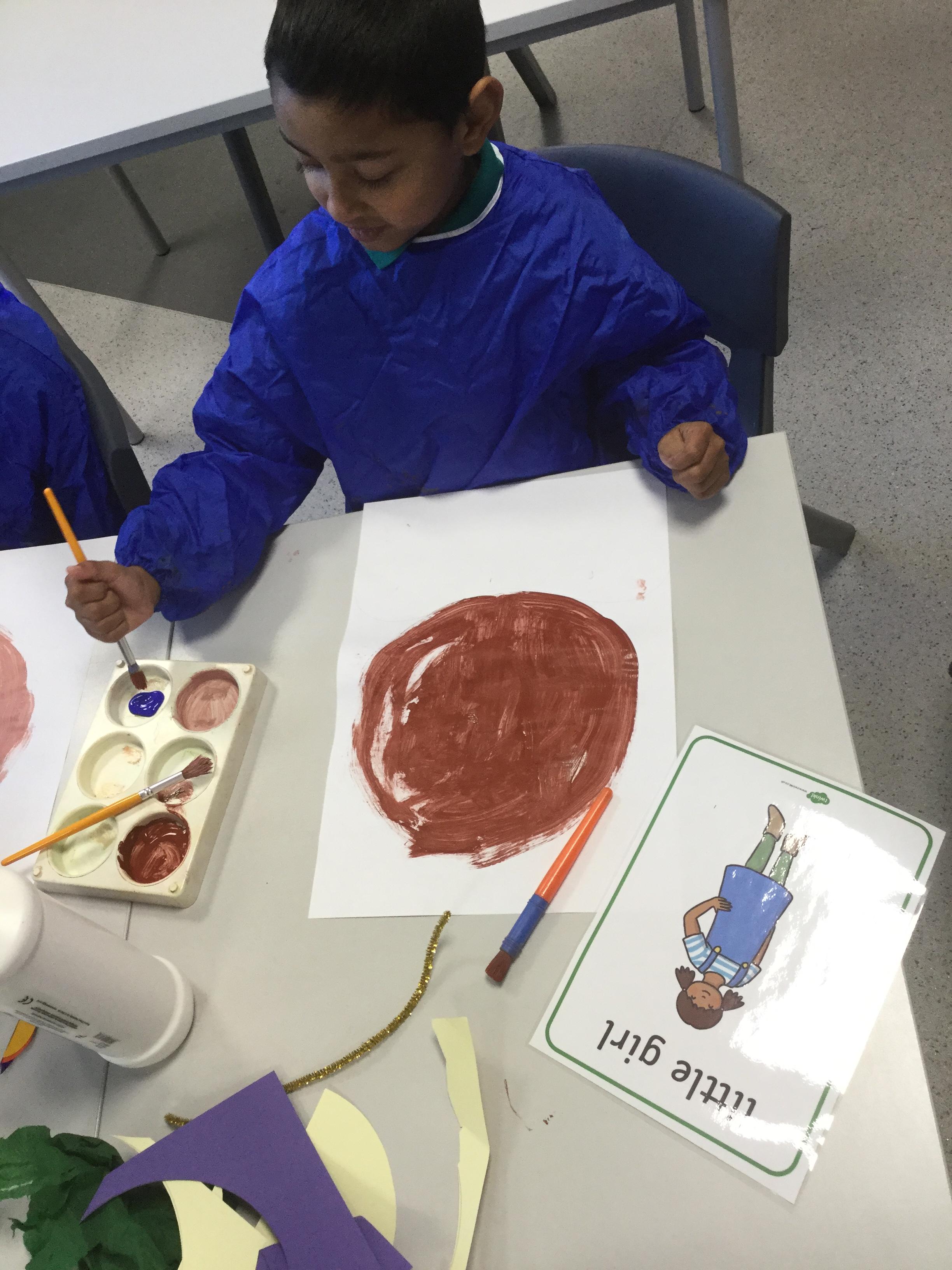 We have been having lots of fun with our story so far this term. We have been for a walk looking for the red monster, creating the monsters for our class display board, over writing or under writing the different colours with the matching felt tip and making marks using the different coloured resources.