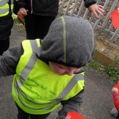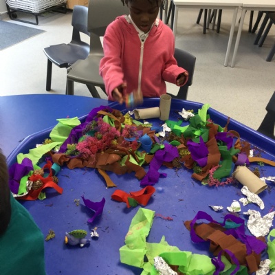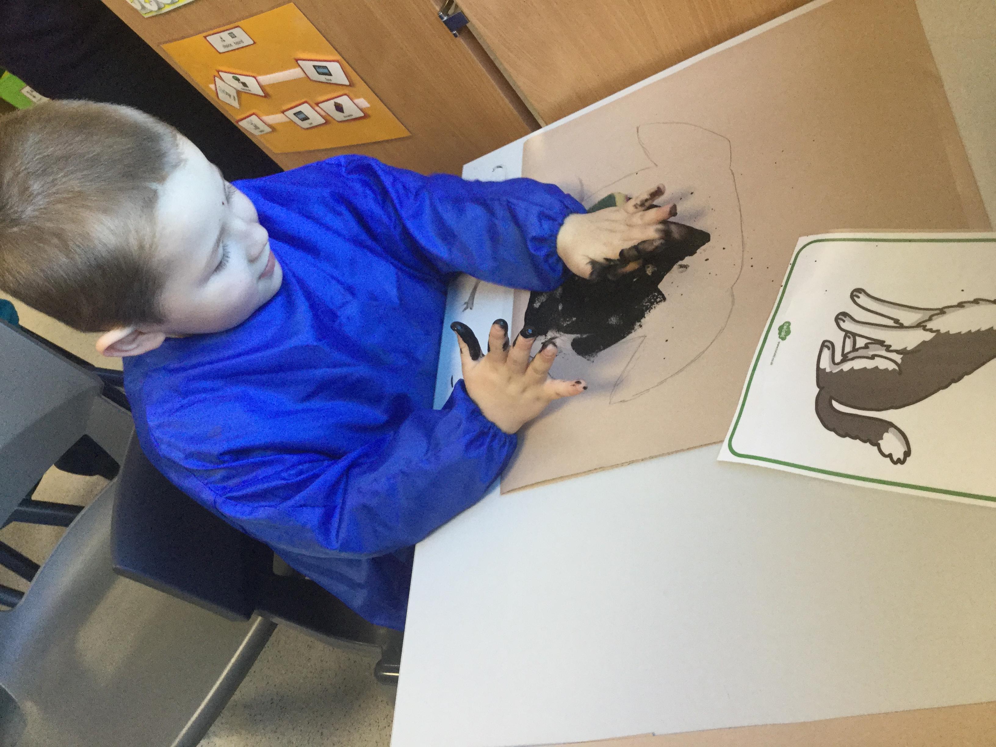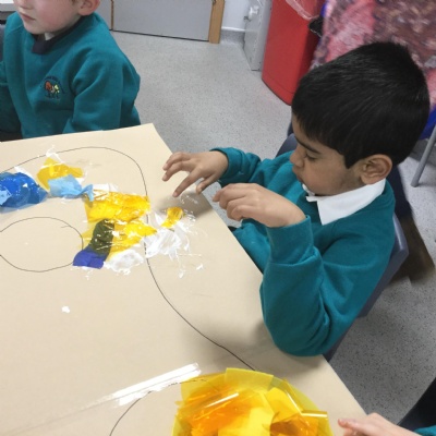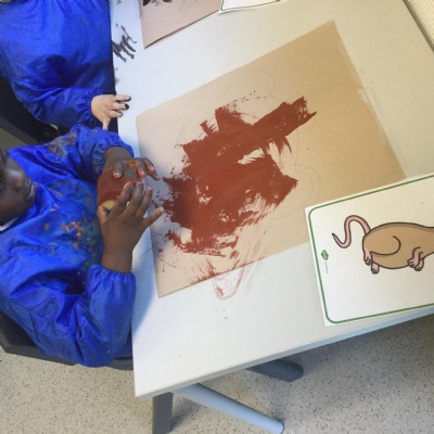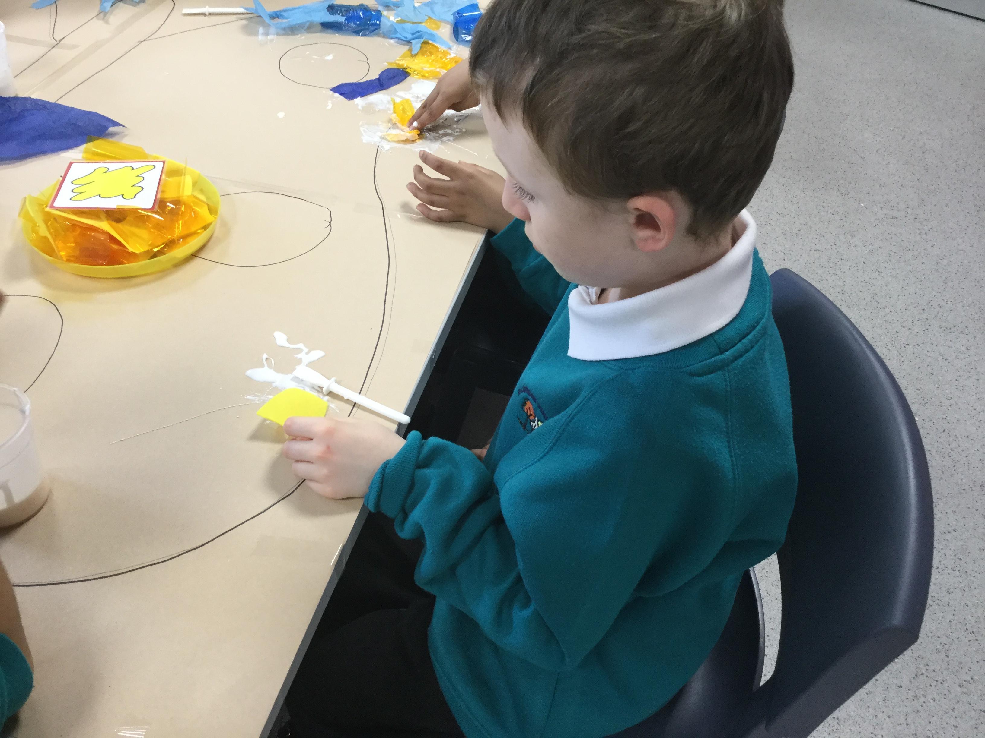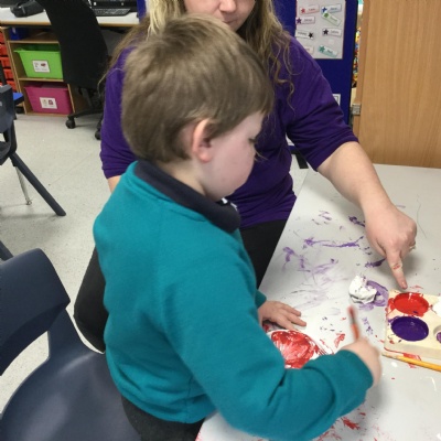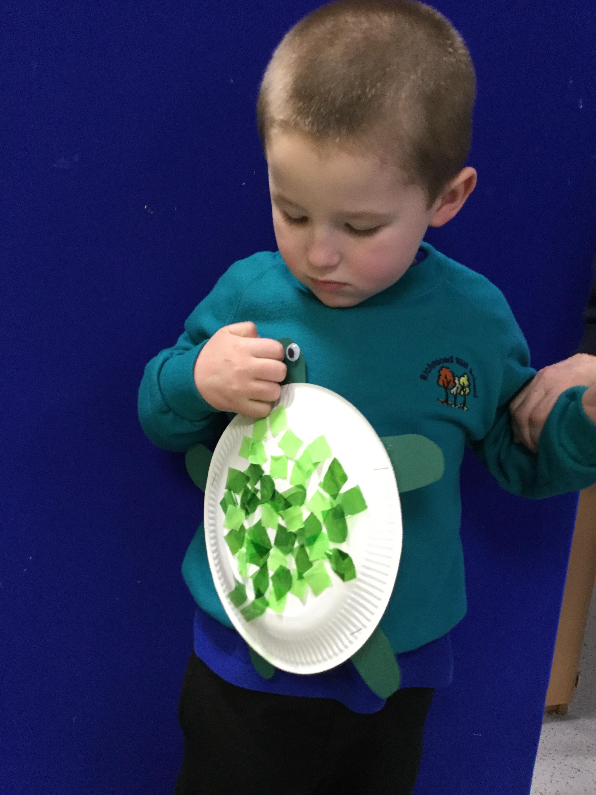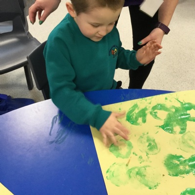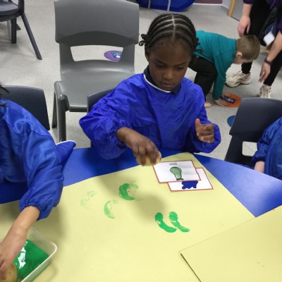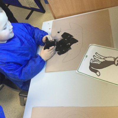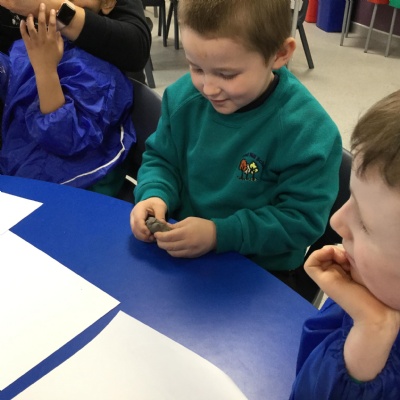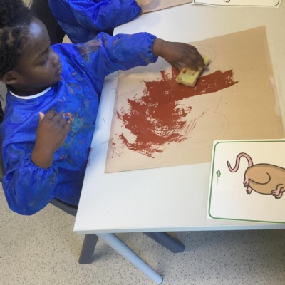 We have been having lots of fun with our story so far this term. We have been for a walk looking for the red monster, creating the monsters for our class display board, over writing or under writing the different colours with the matching felt tip and making marks using the different coloured resources.