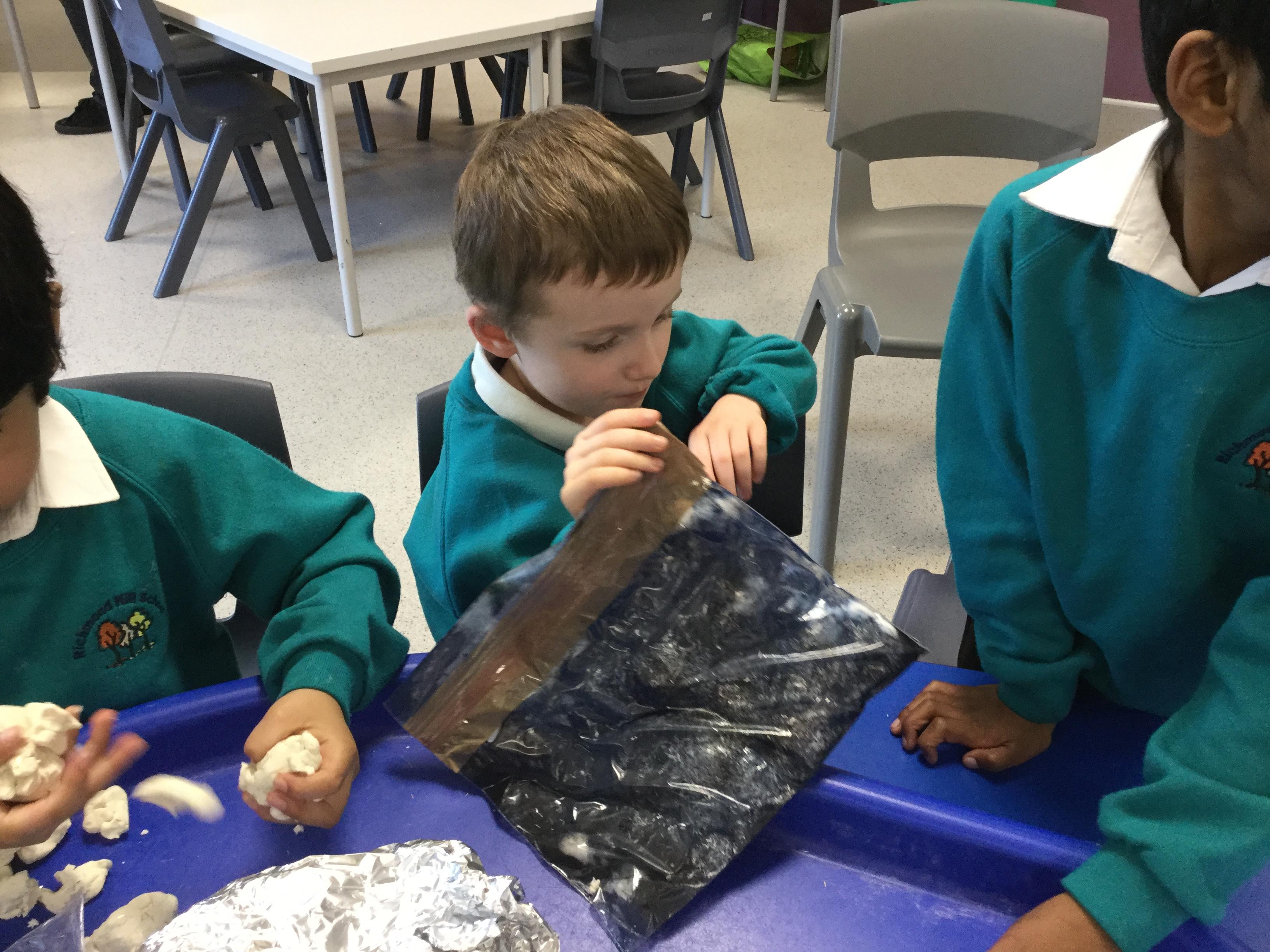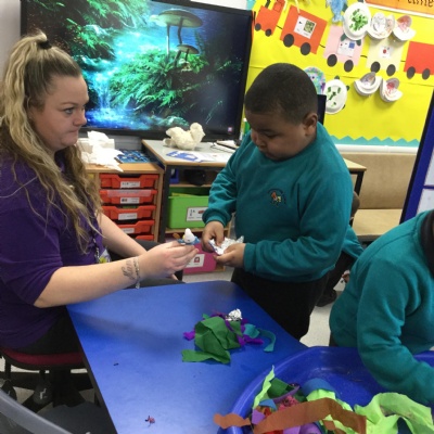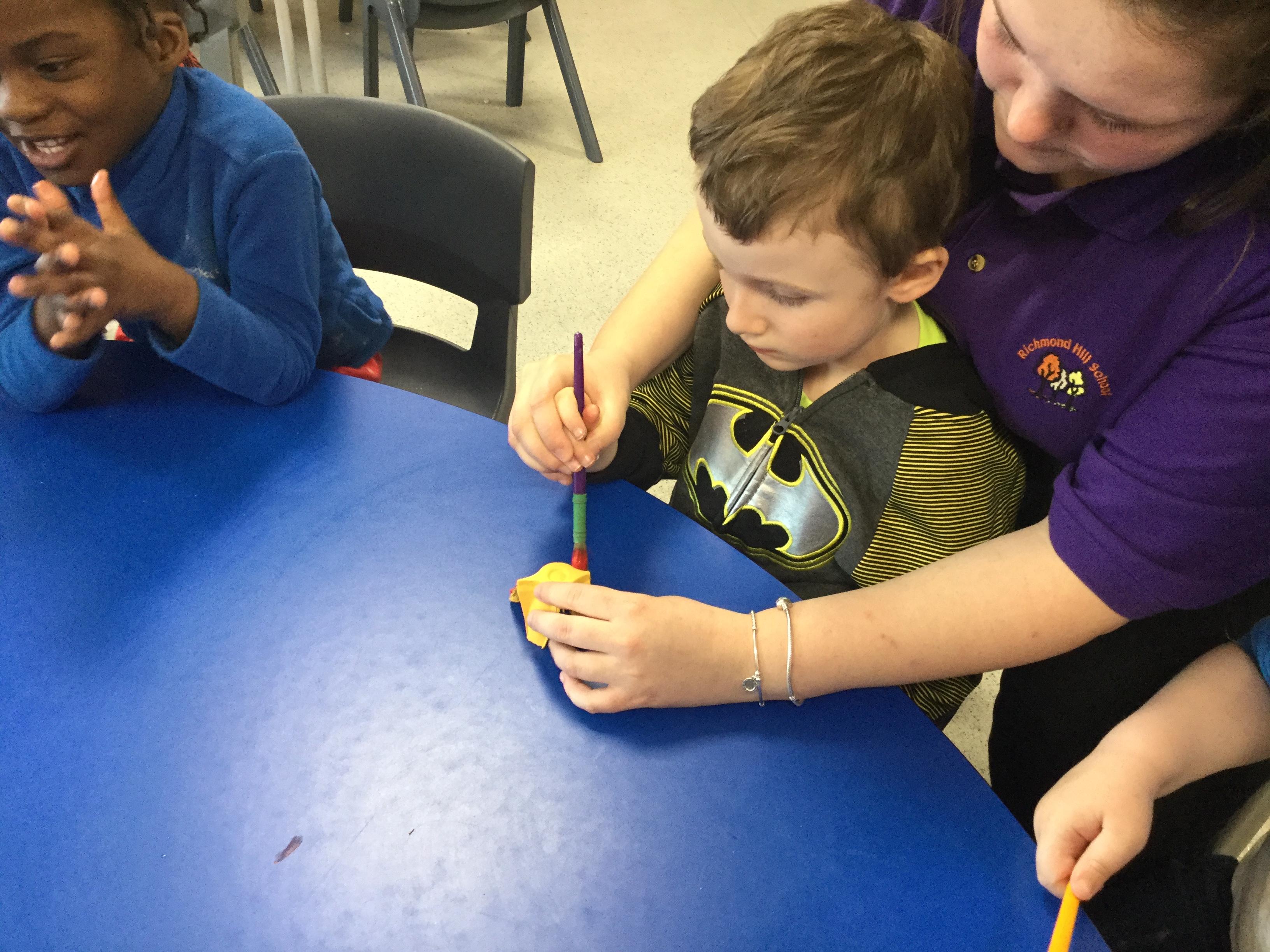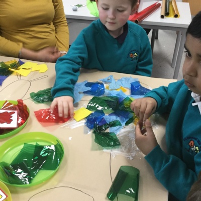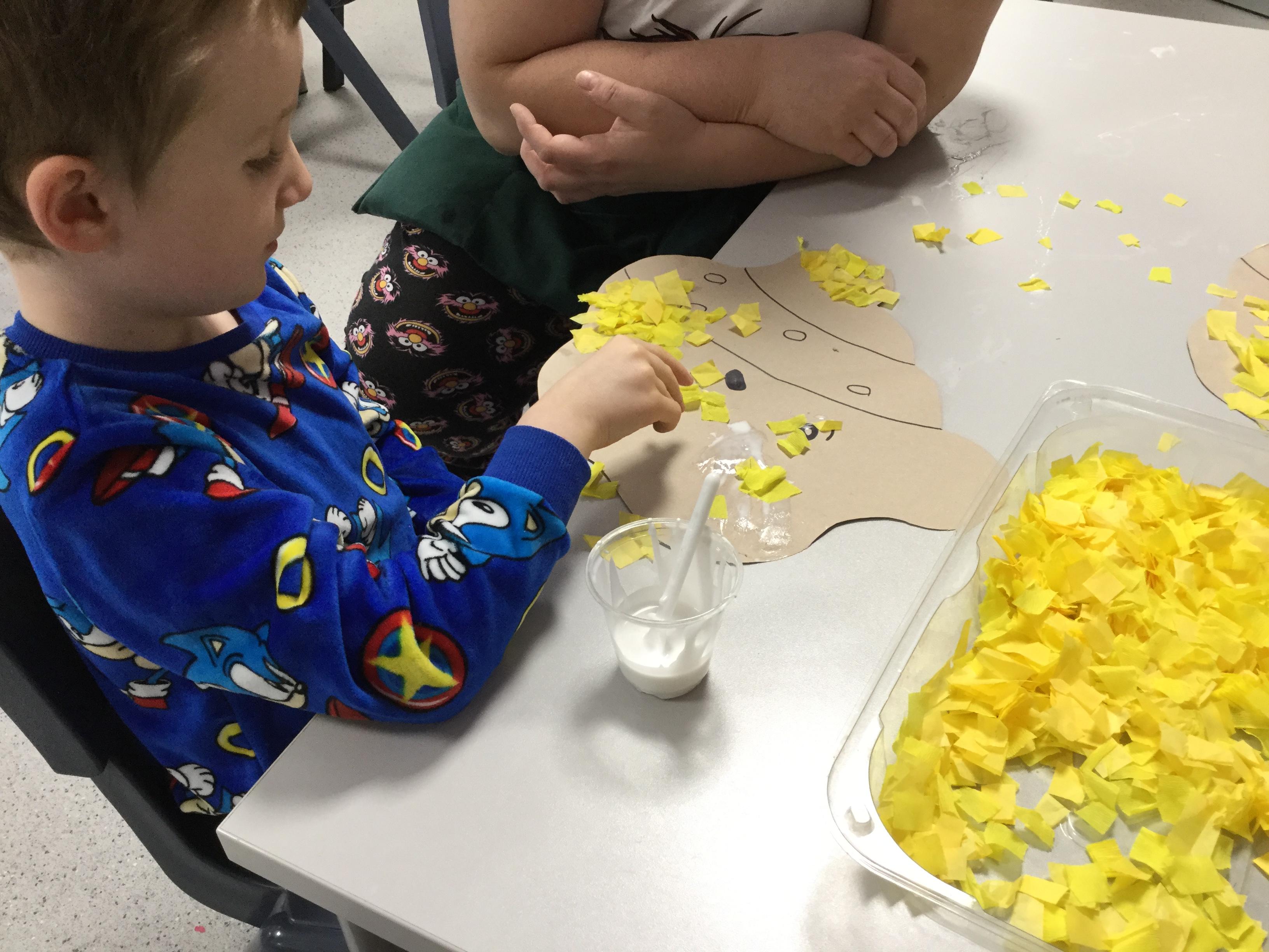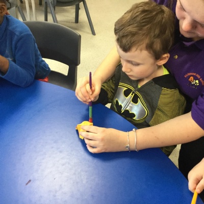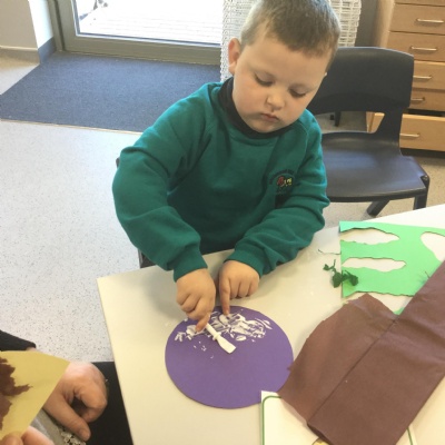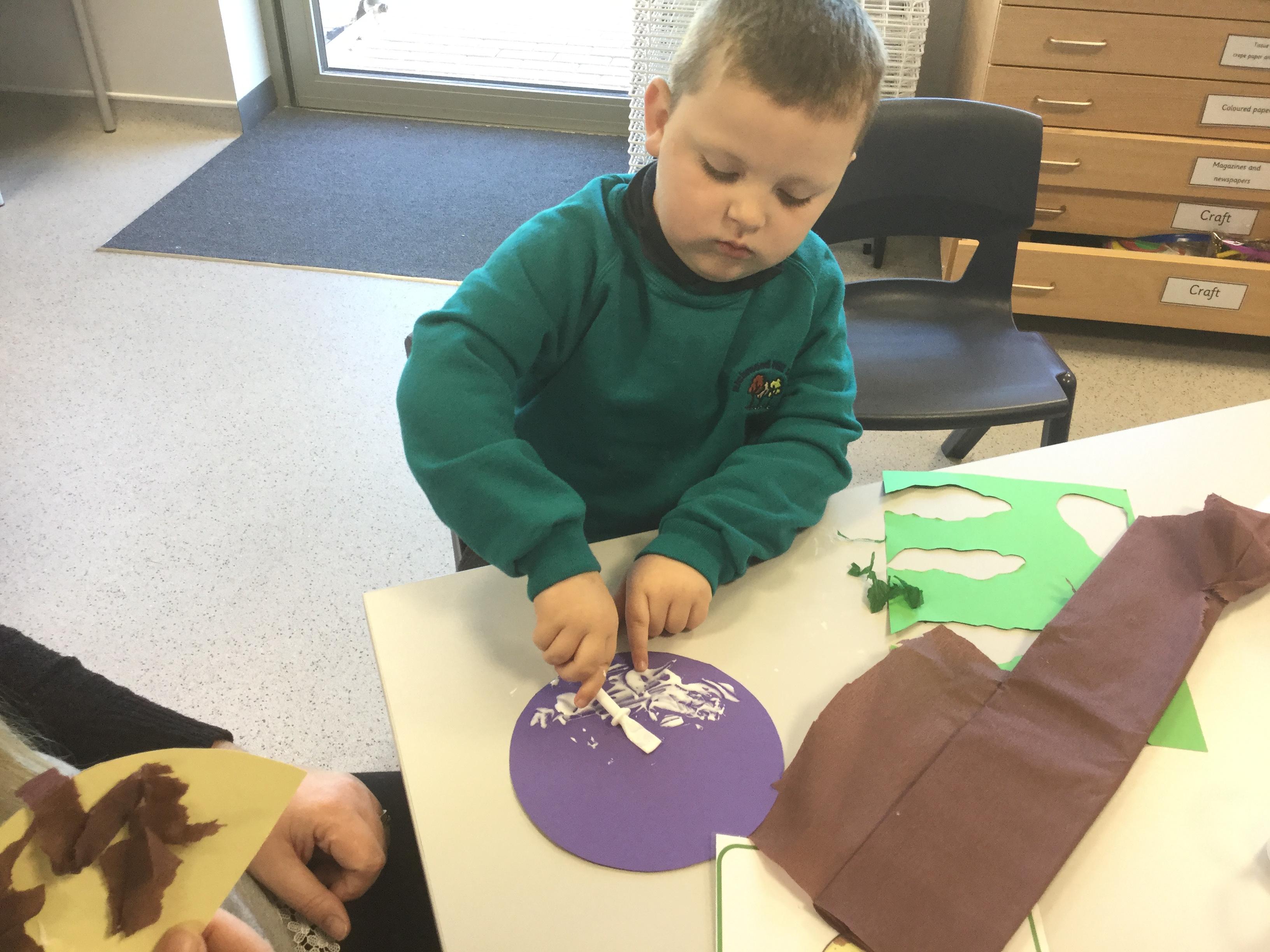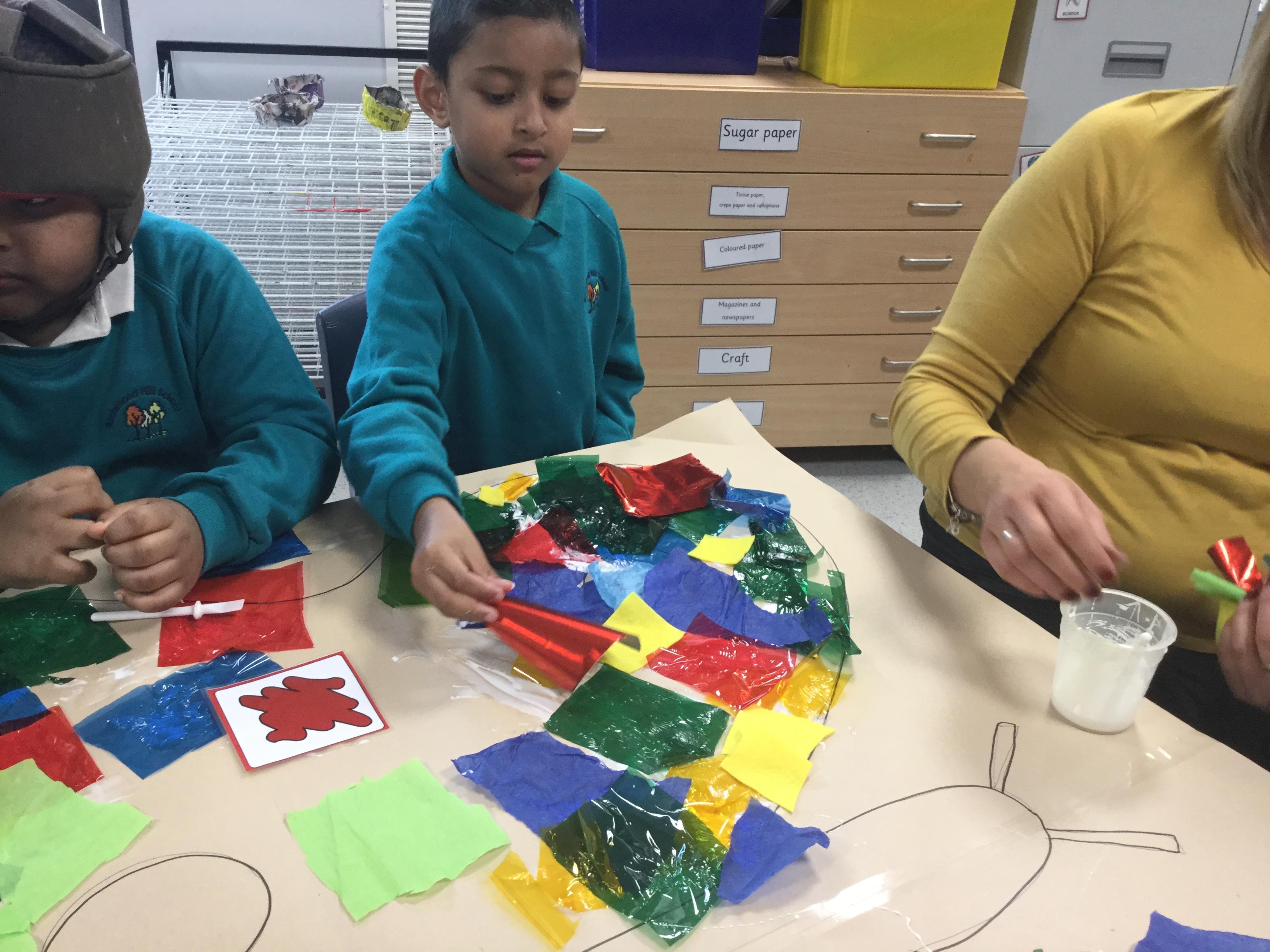 We have been having lots of fun with our story so far this term. We have been for a walk looking for the red monster, creating the monsters for our class display board, over writing or under writing the different colours with the matching felt tip and making marks using the different coloured resources.