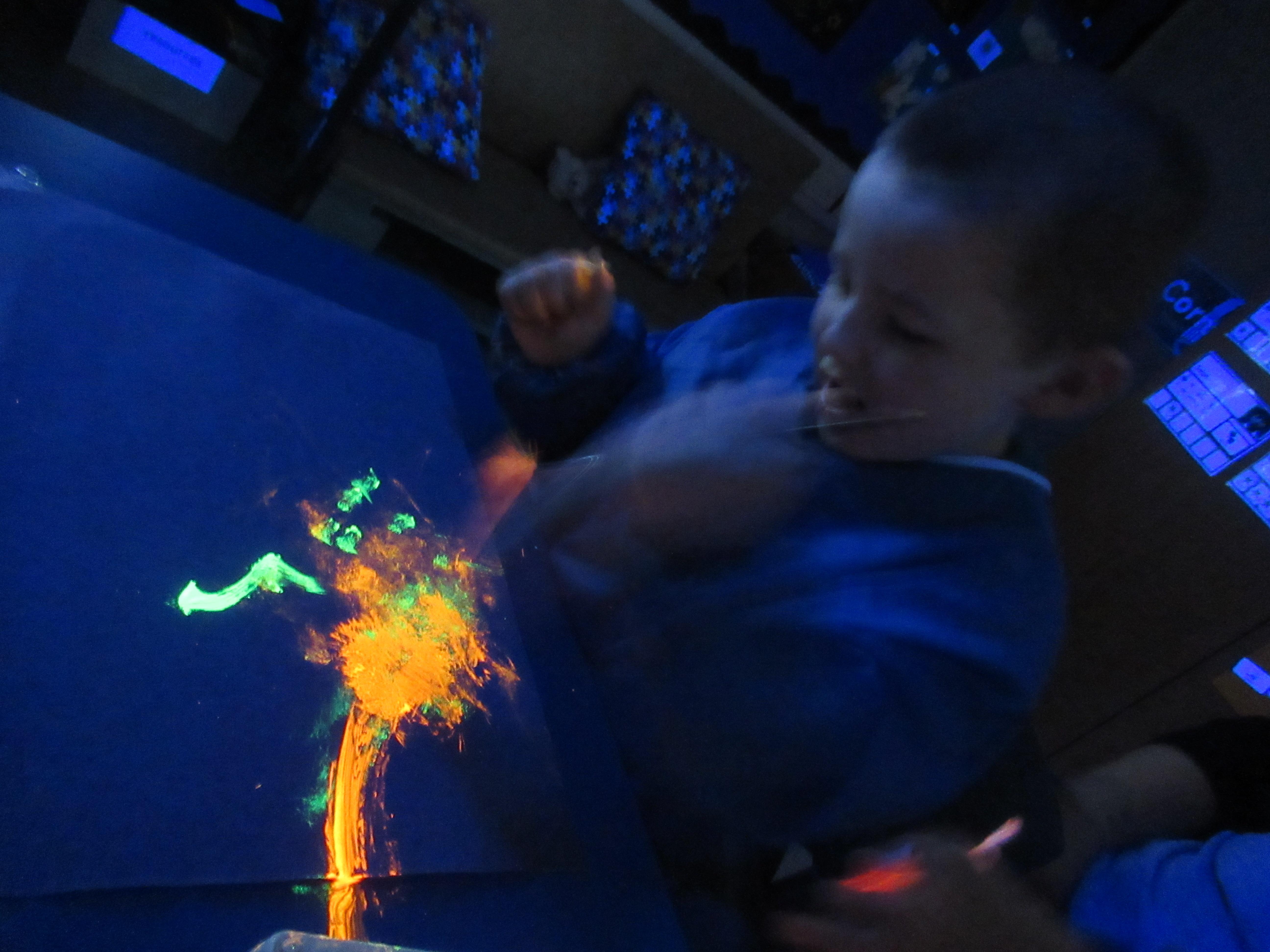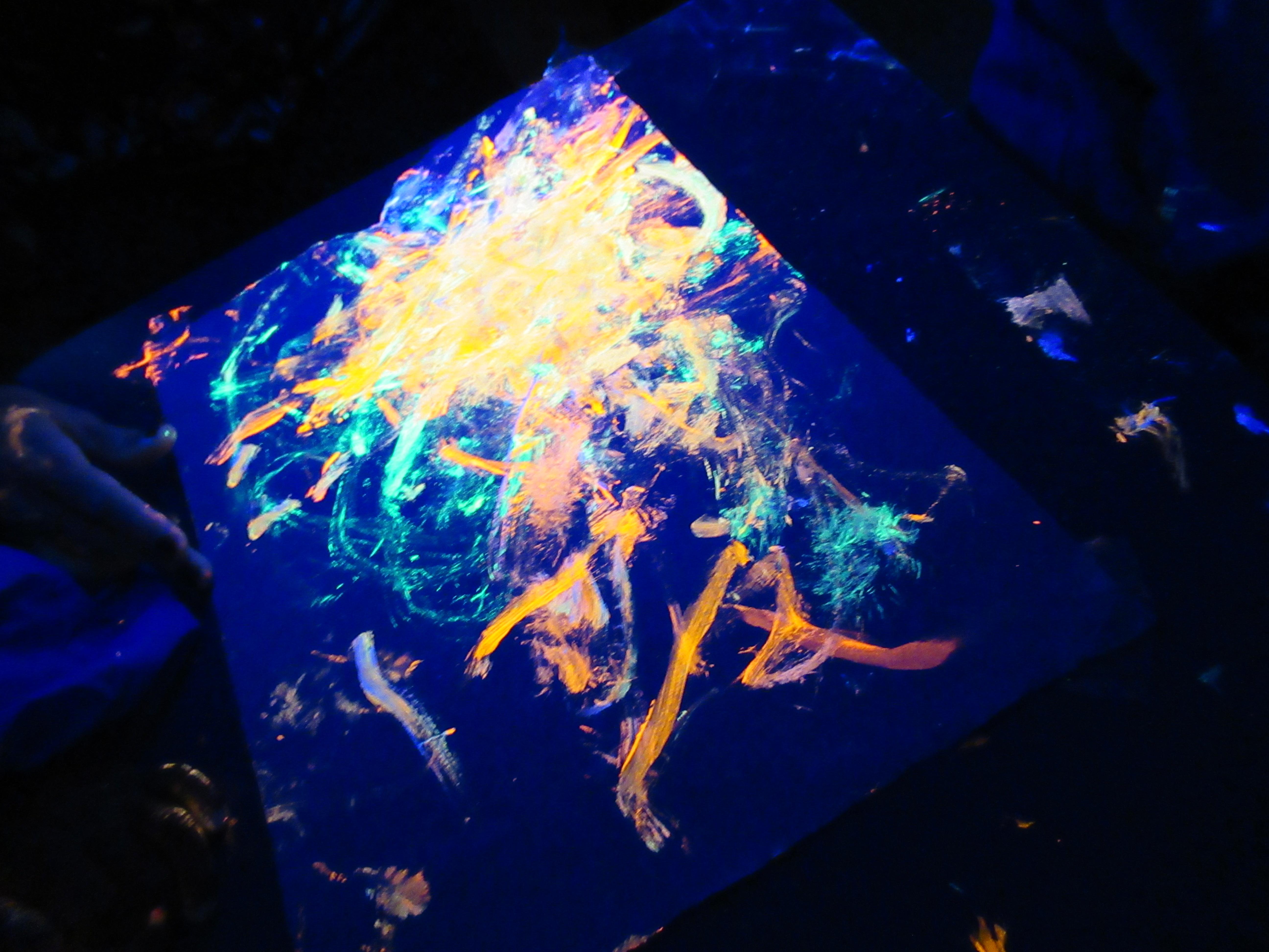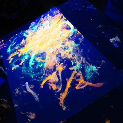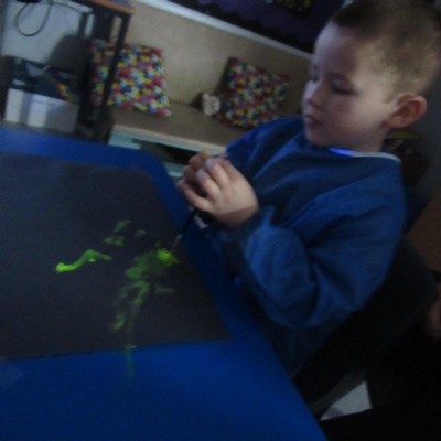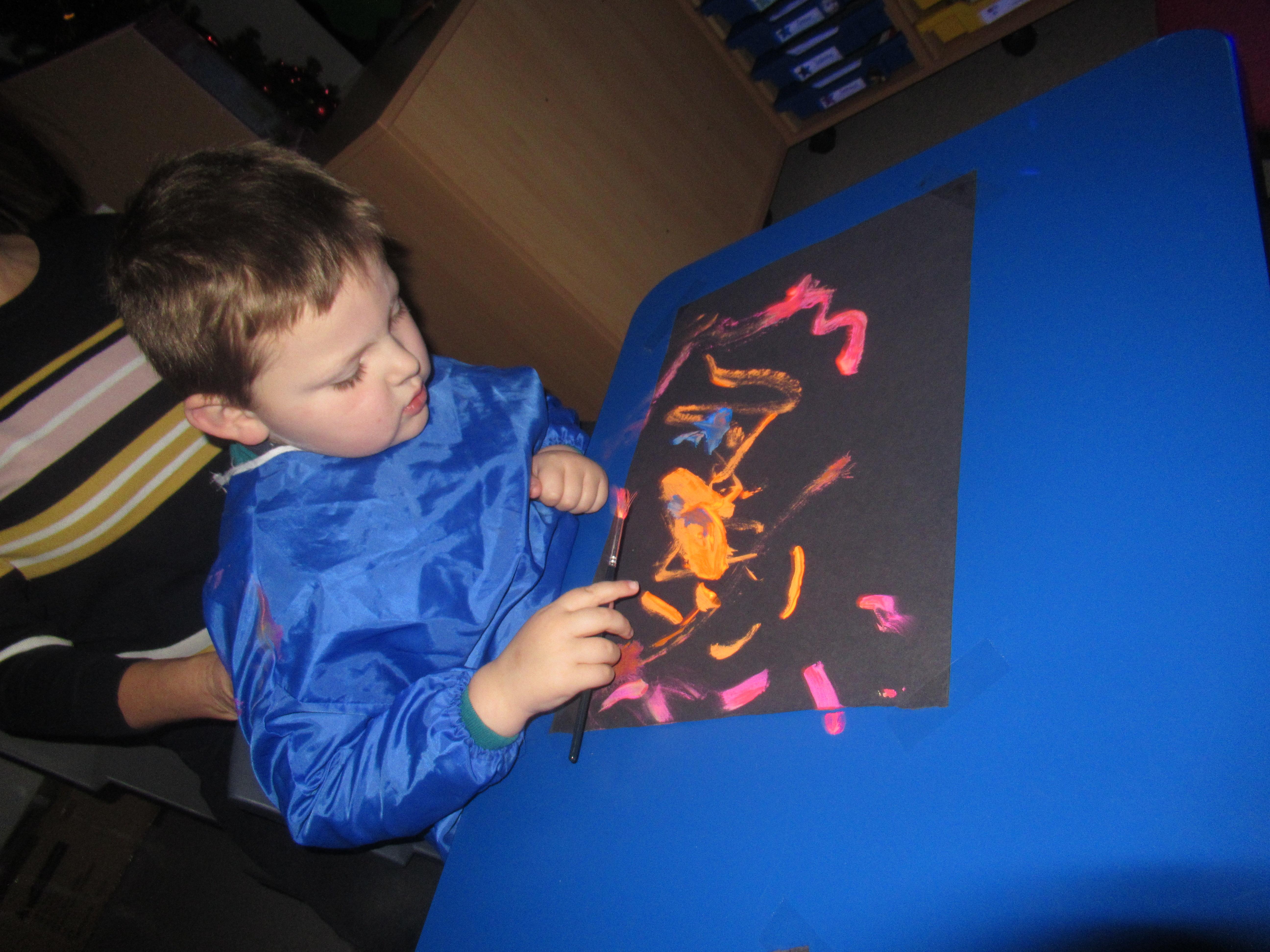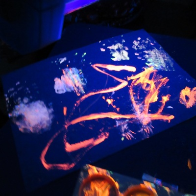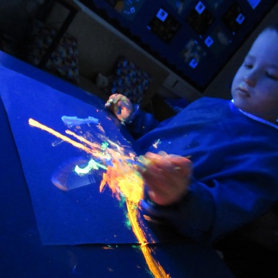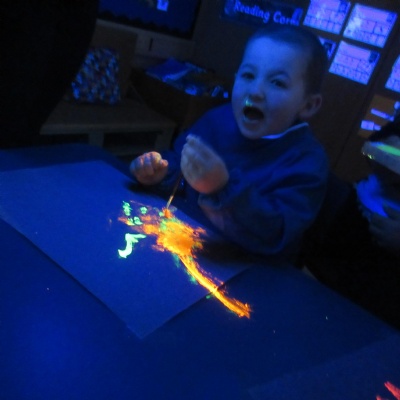 We had great fun painting pictures using UV paint. Take a look at the pictures below.