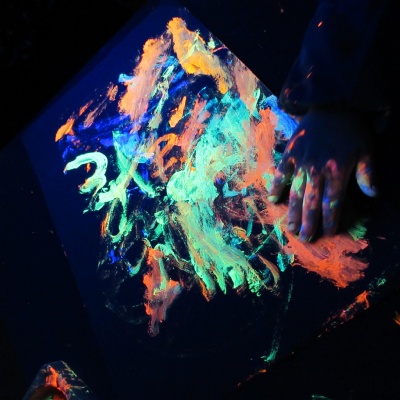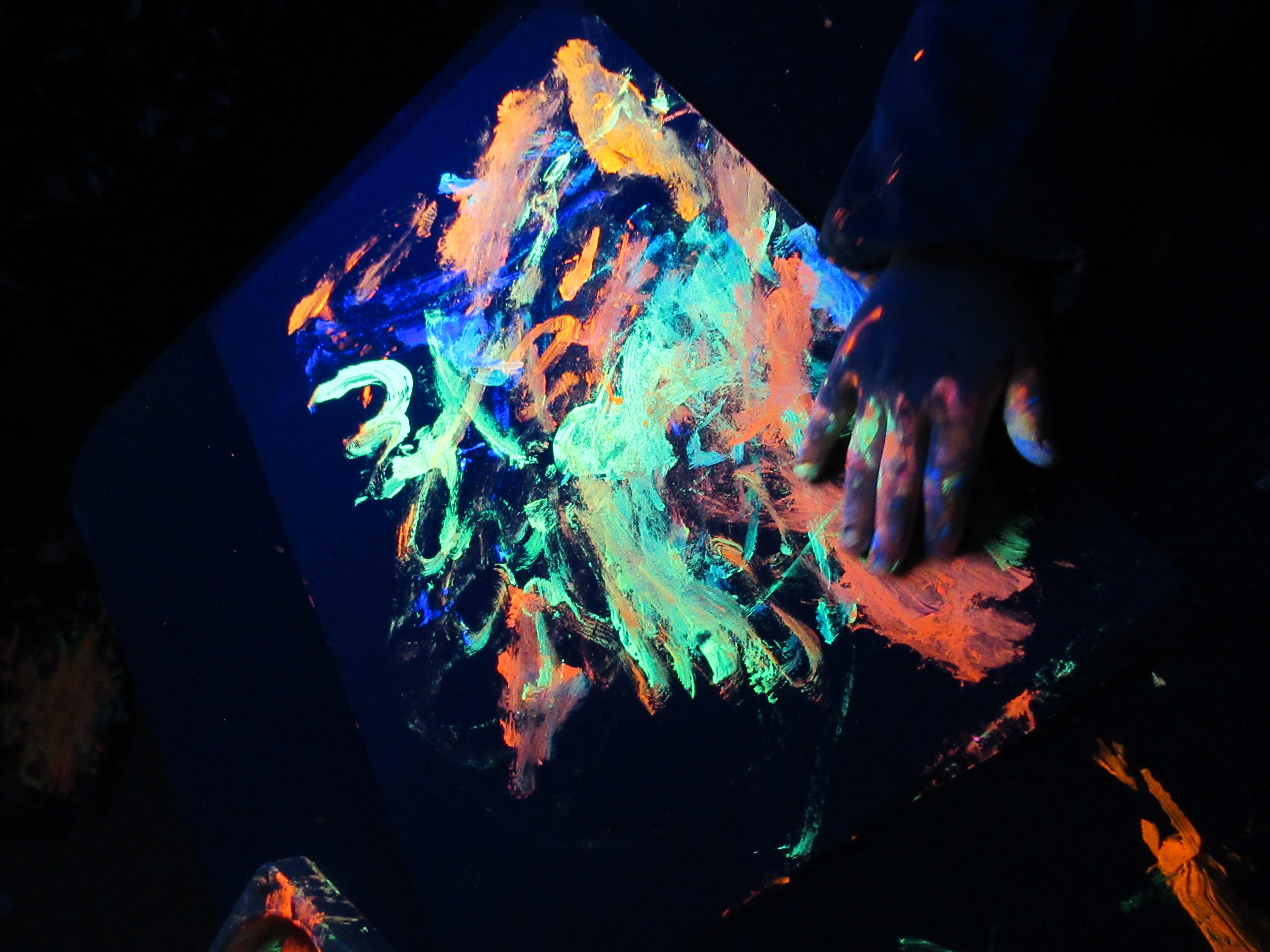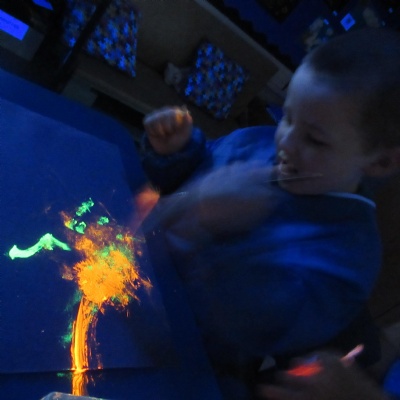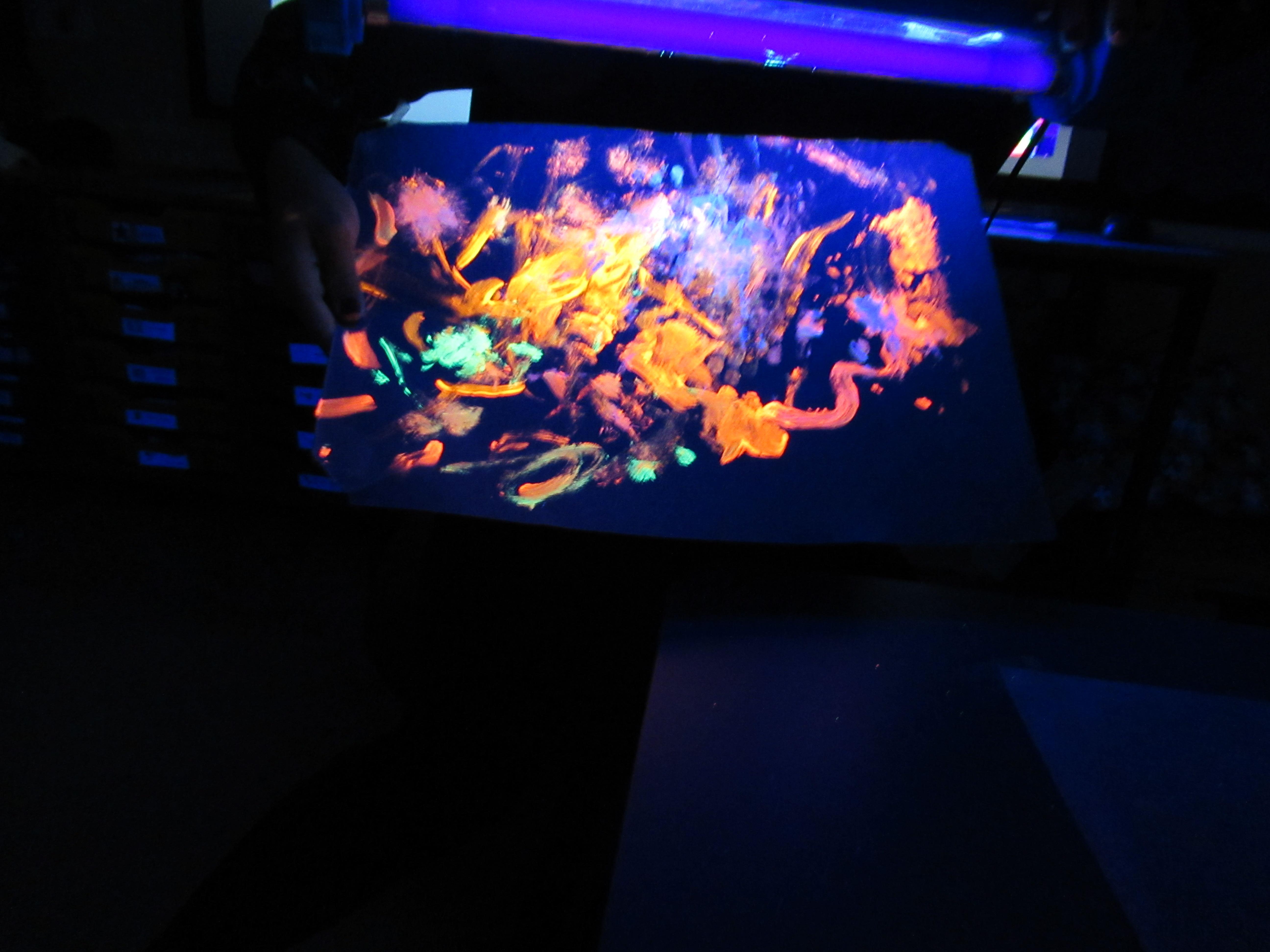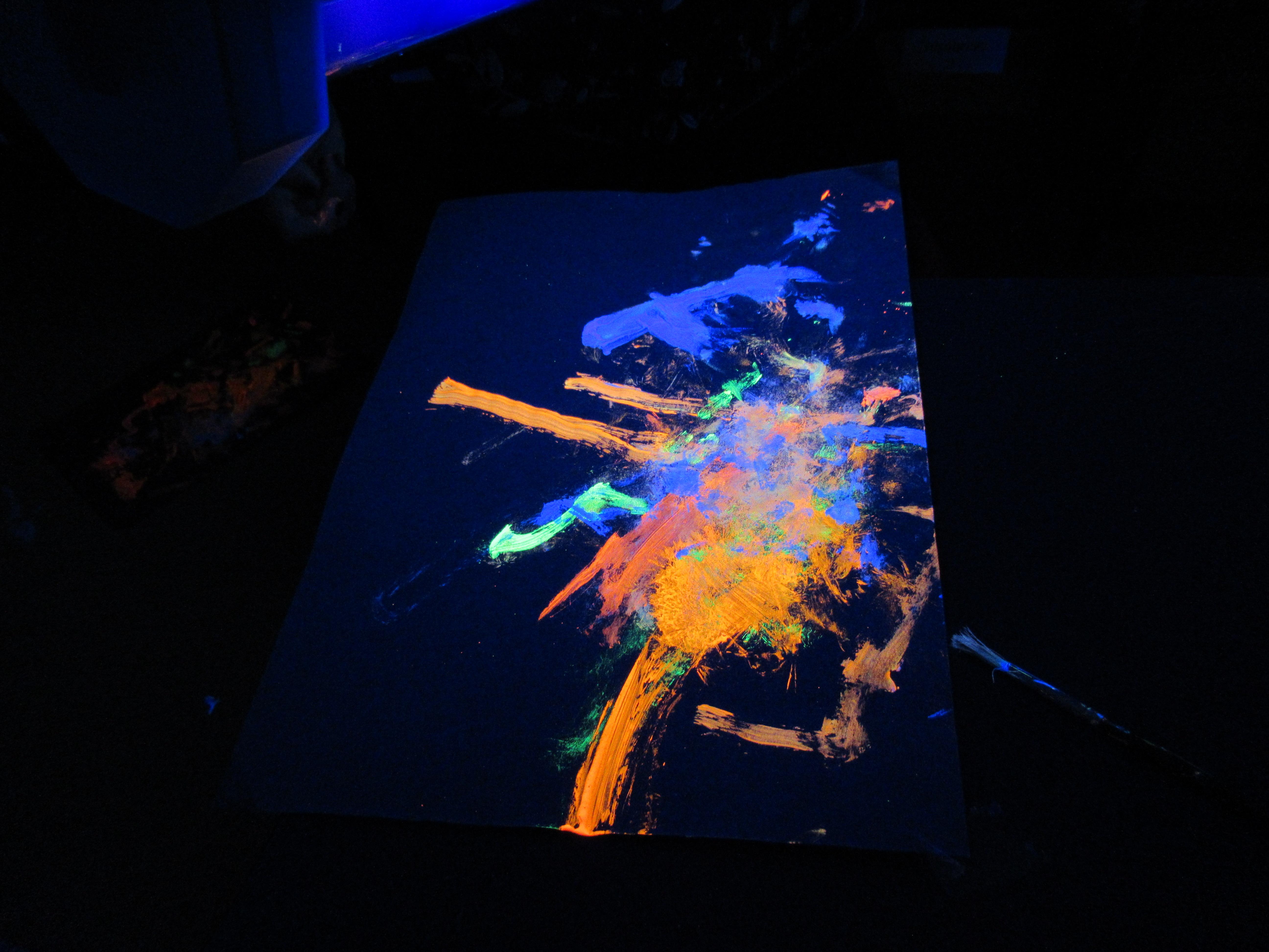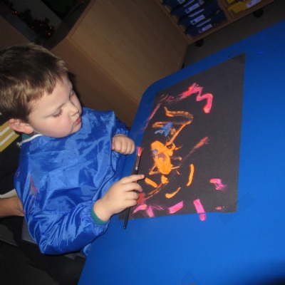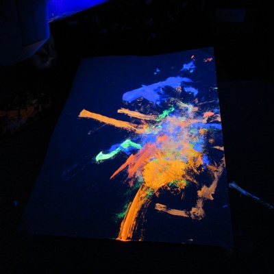 We had great fun painting pictures using UV paint. Take a look at the pictures below.