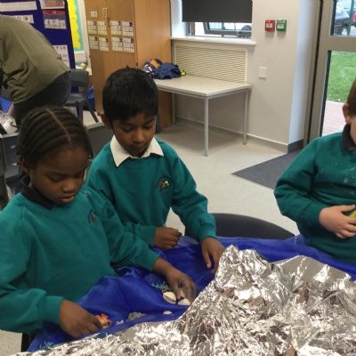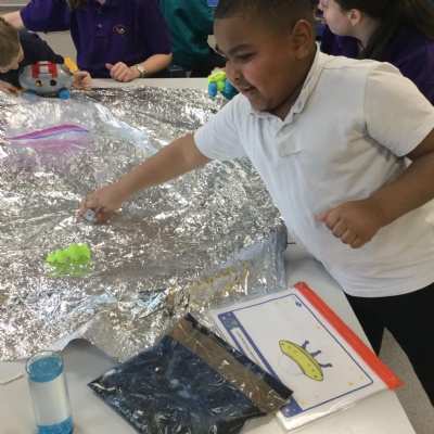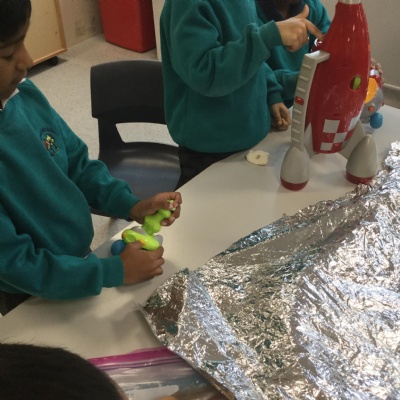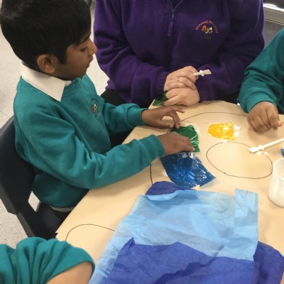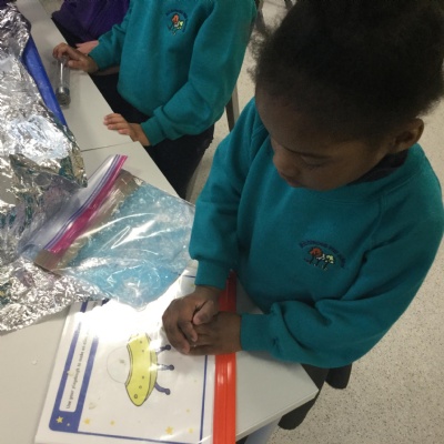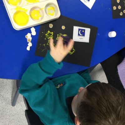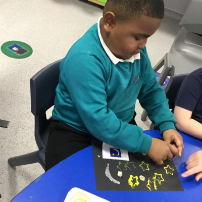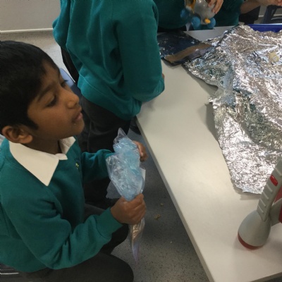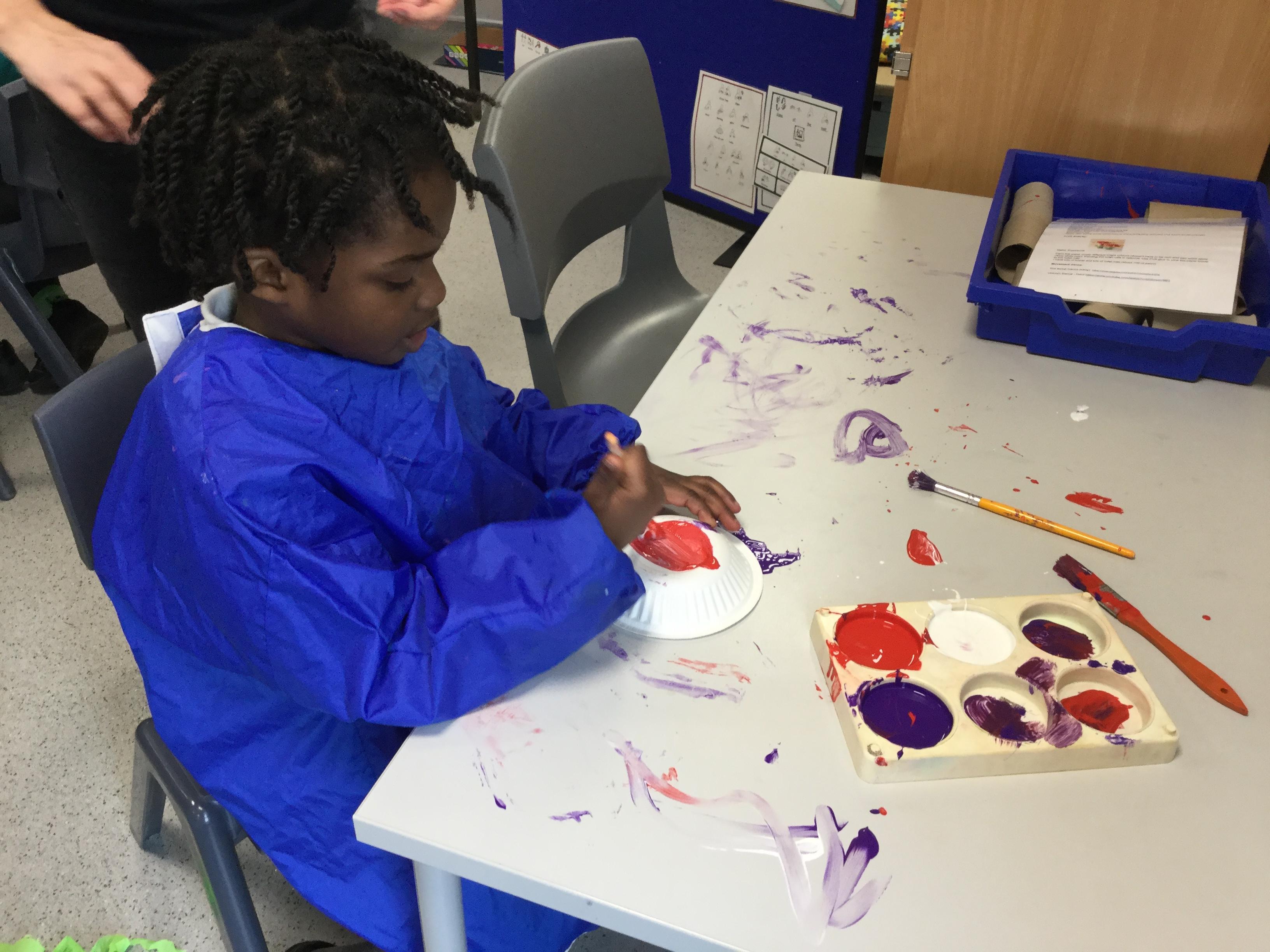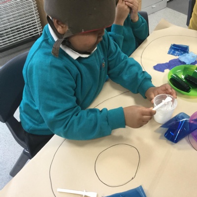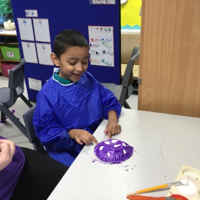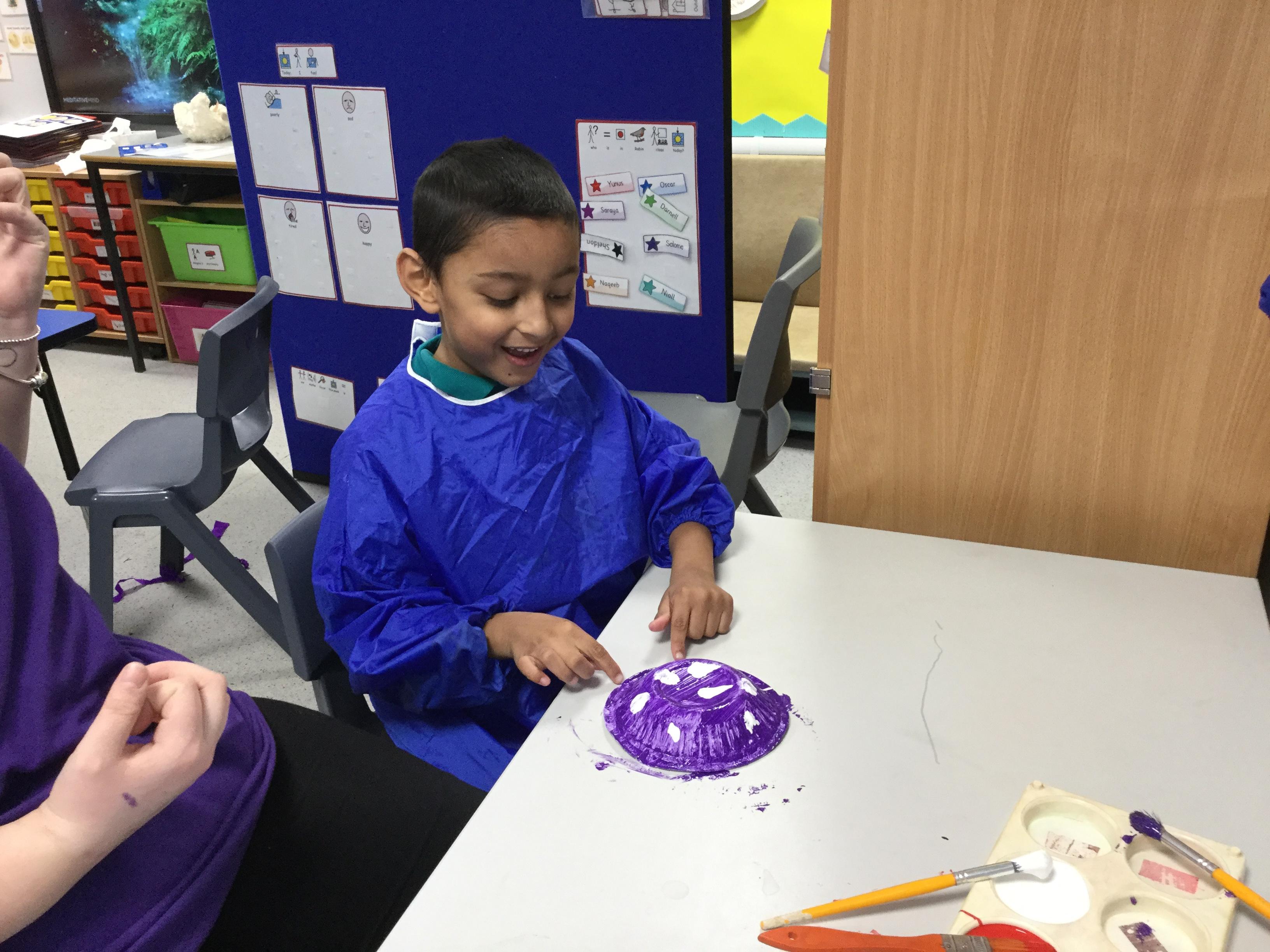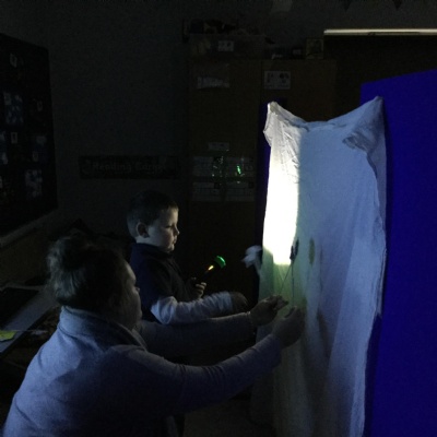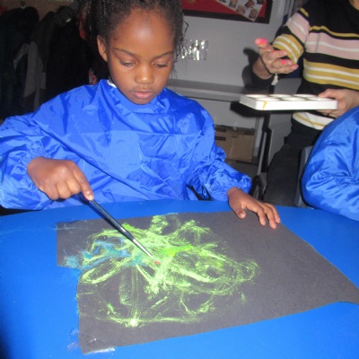 We had great fun painting pictures using UV paint. Take a look at the pictures below.