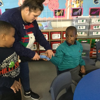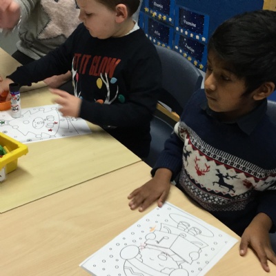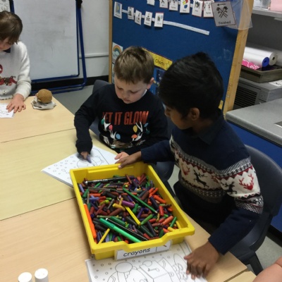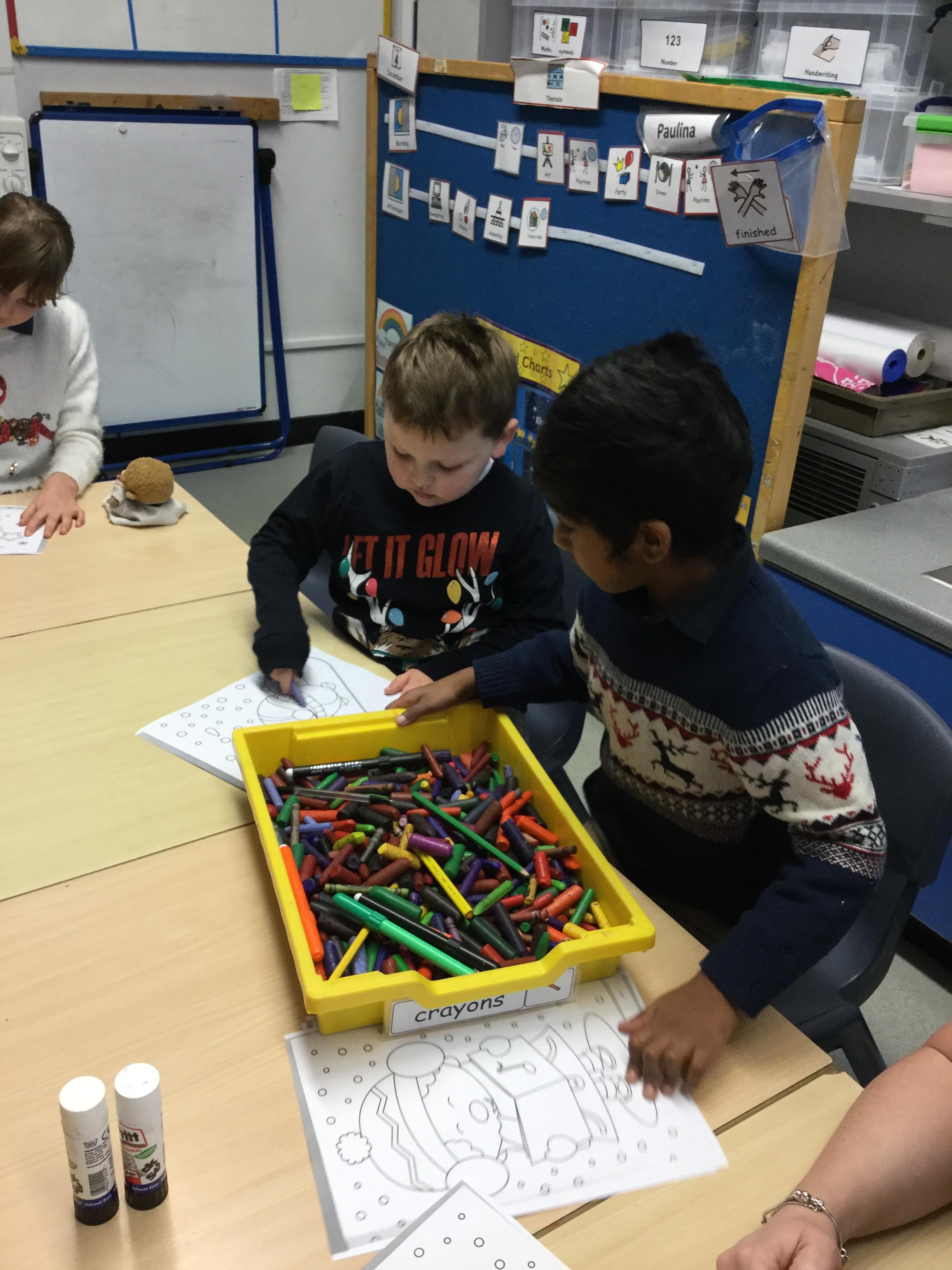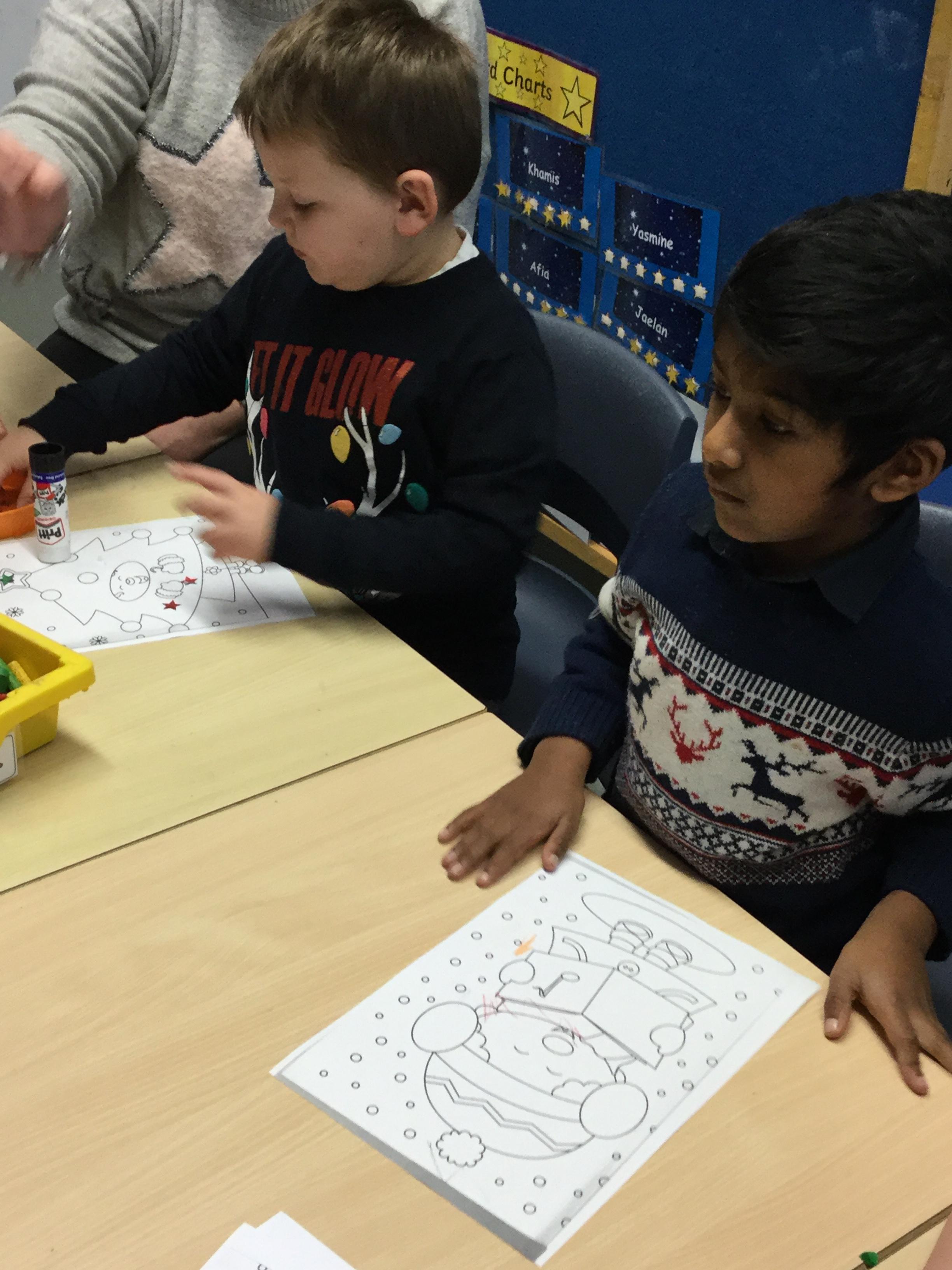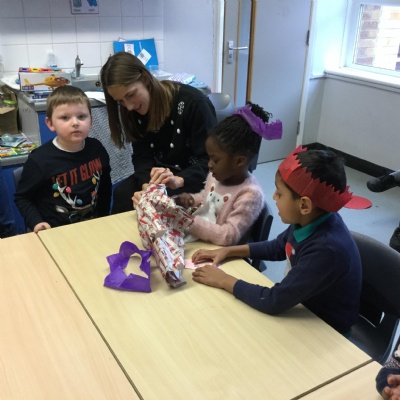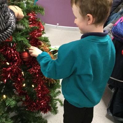 We have been busy spending time with our buddies in blue class. We have been making Christmas decorations to put up in our classrooms and had great fun opening our secret Santa presents.
