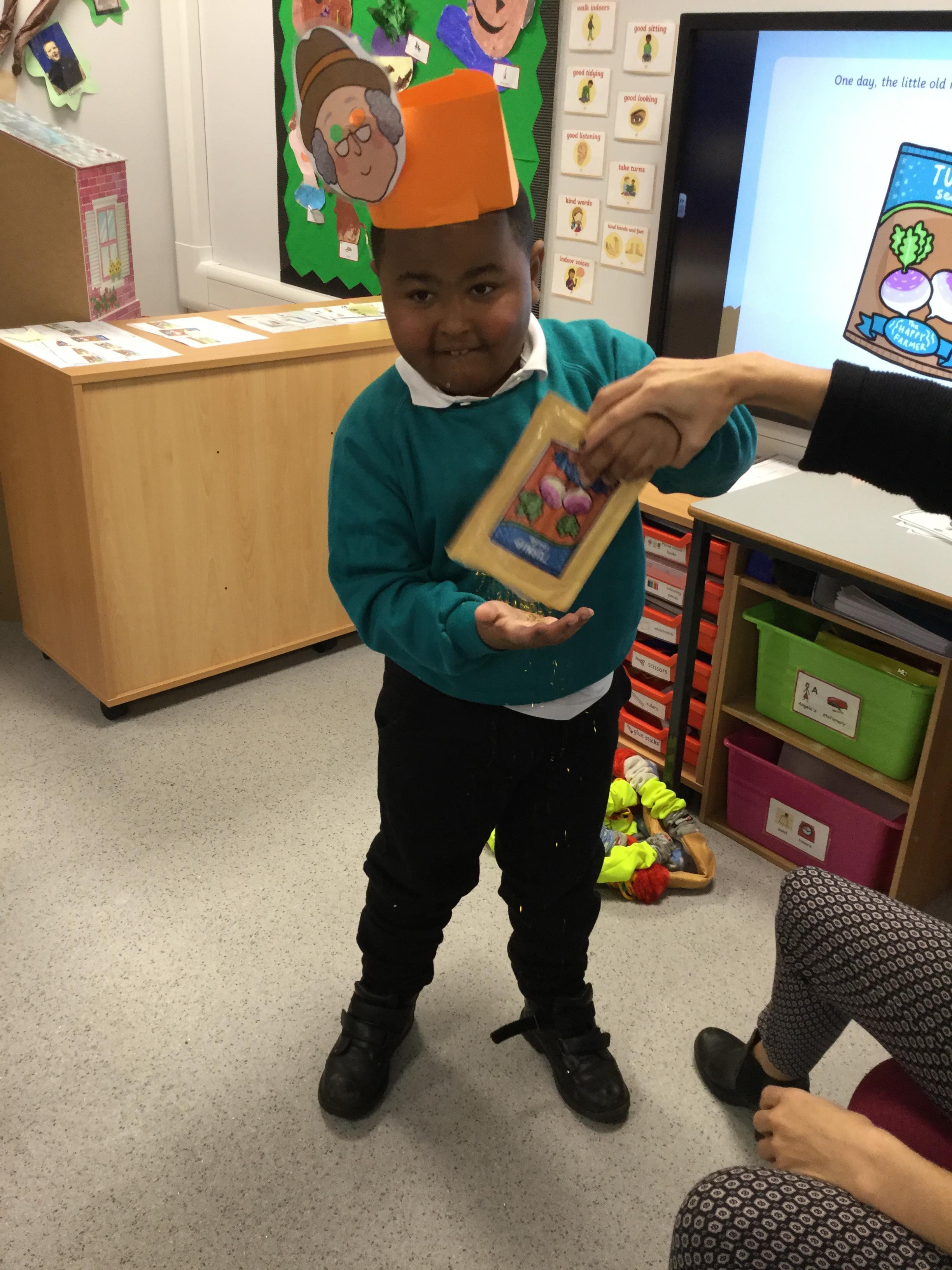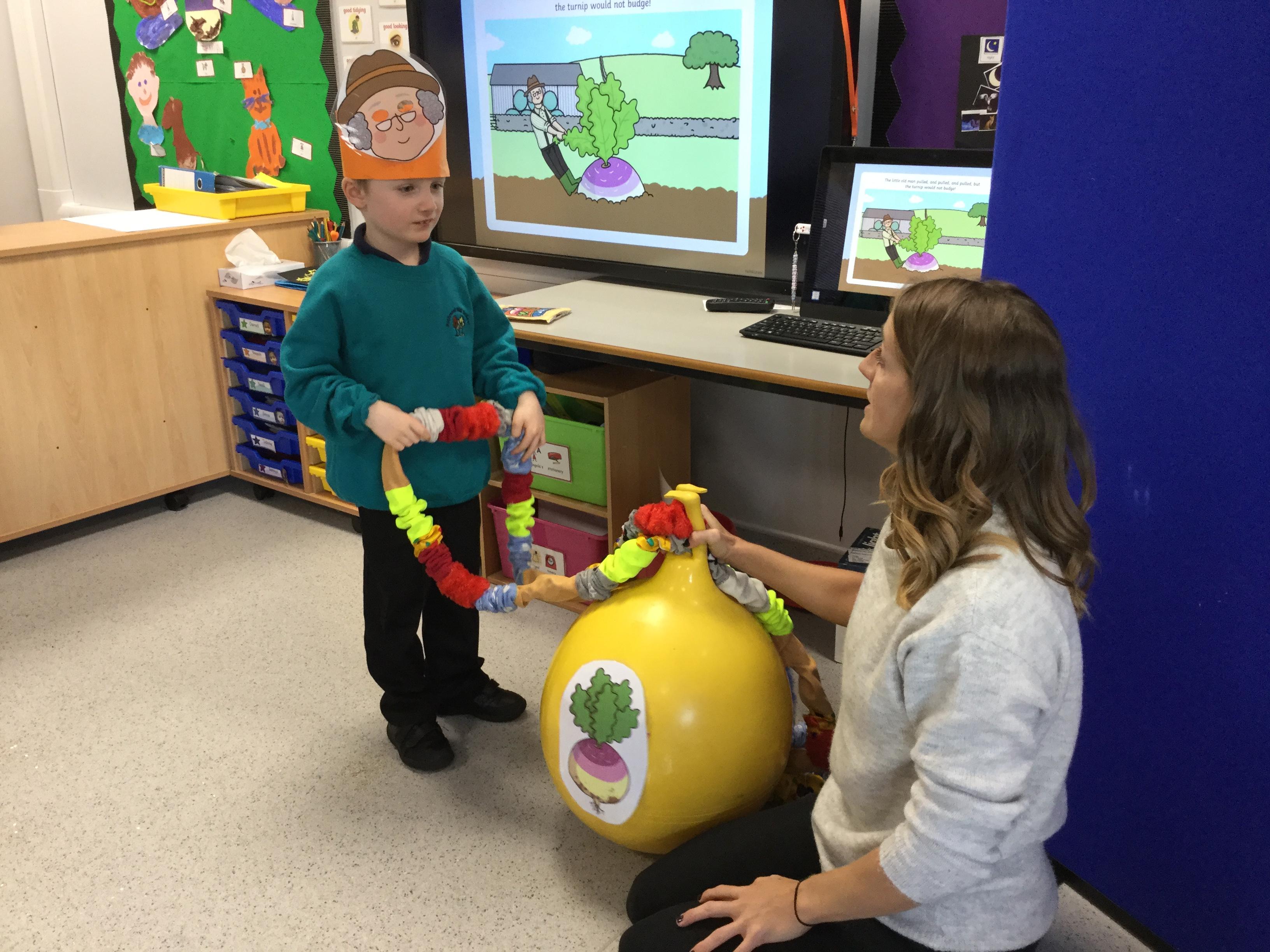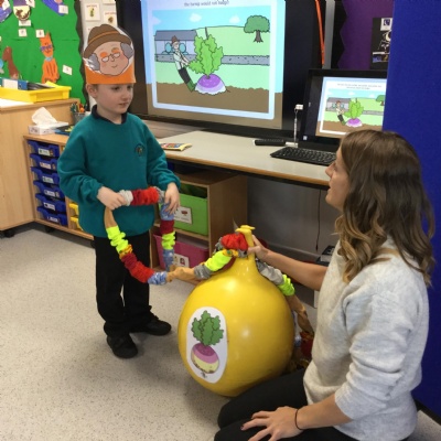 we acted out the story of the enormous turnip in our English lesson this week. The children enjoyed being different characters from the story and joining in with the 'pull' action to pull the turnip out of the ground.
