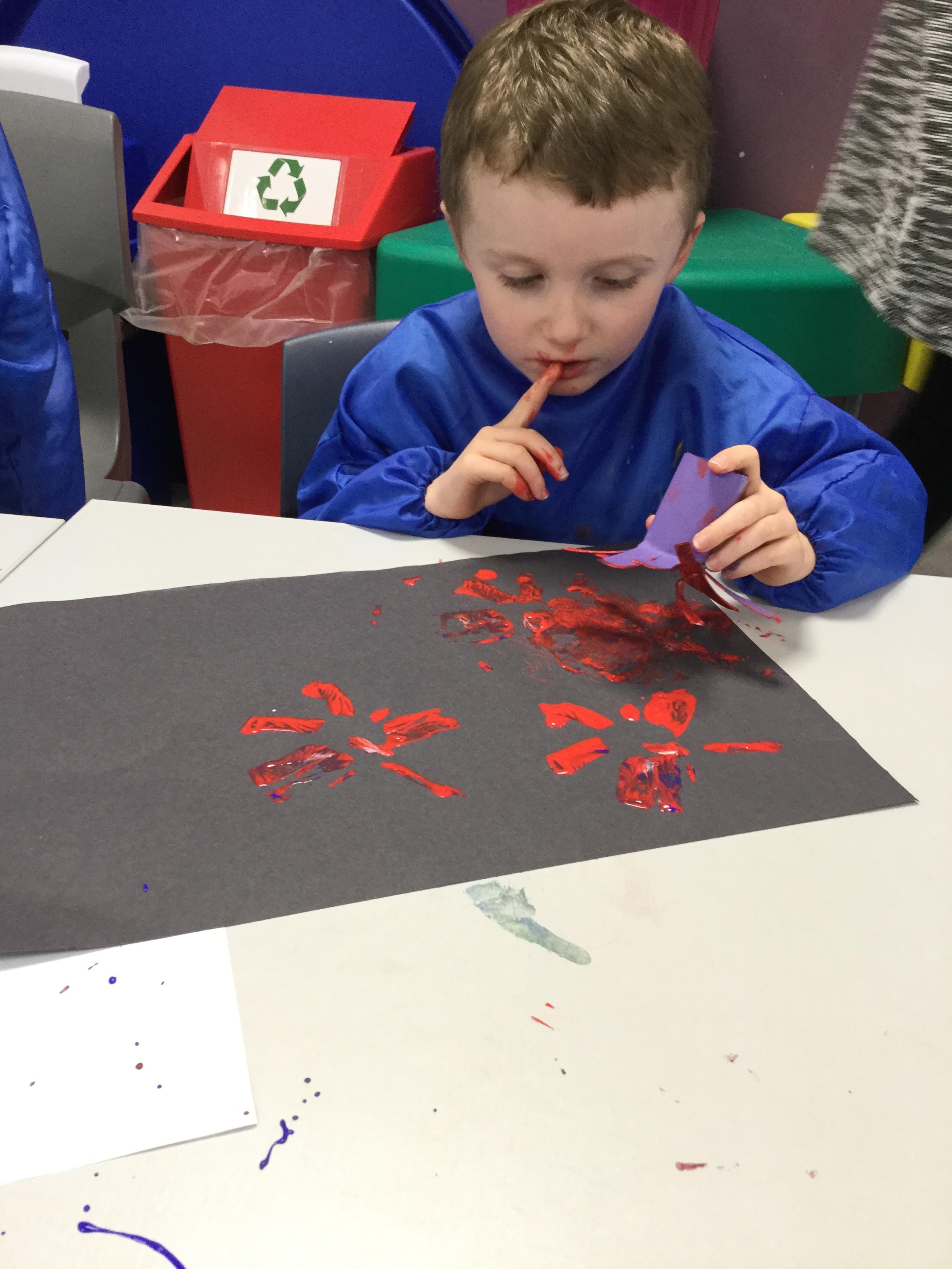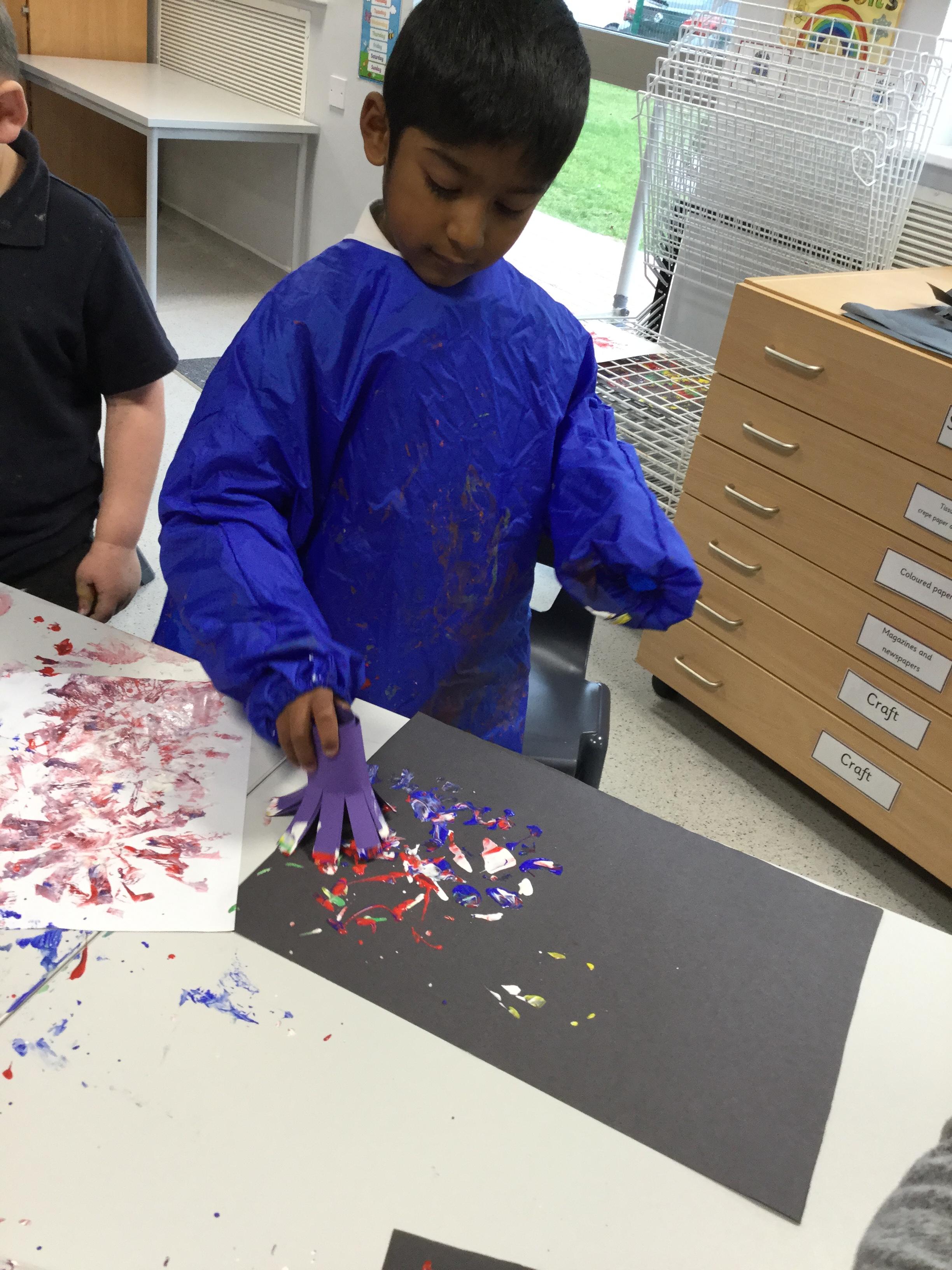 We have also been learning about fire safety and have created some great bonfire pictures using paint.