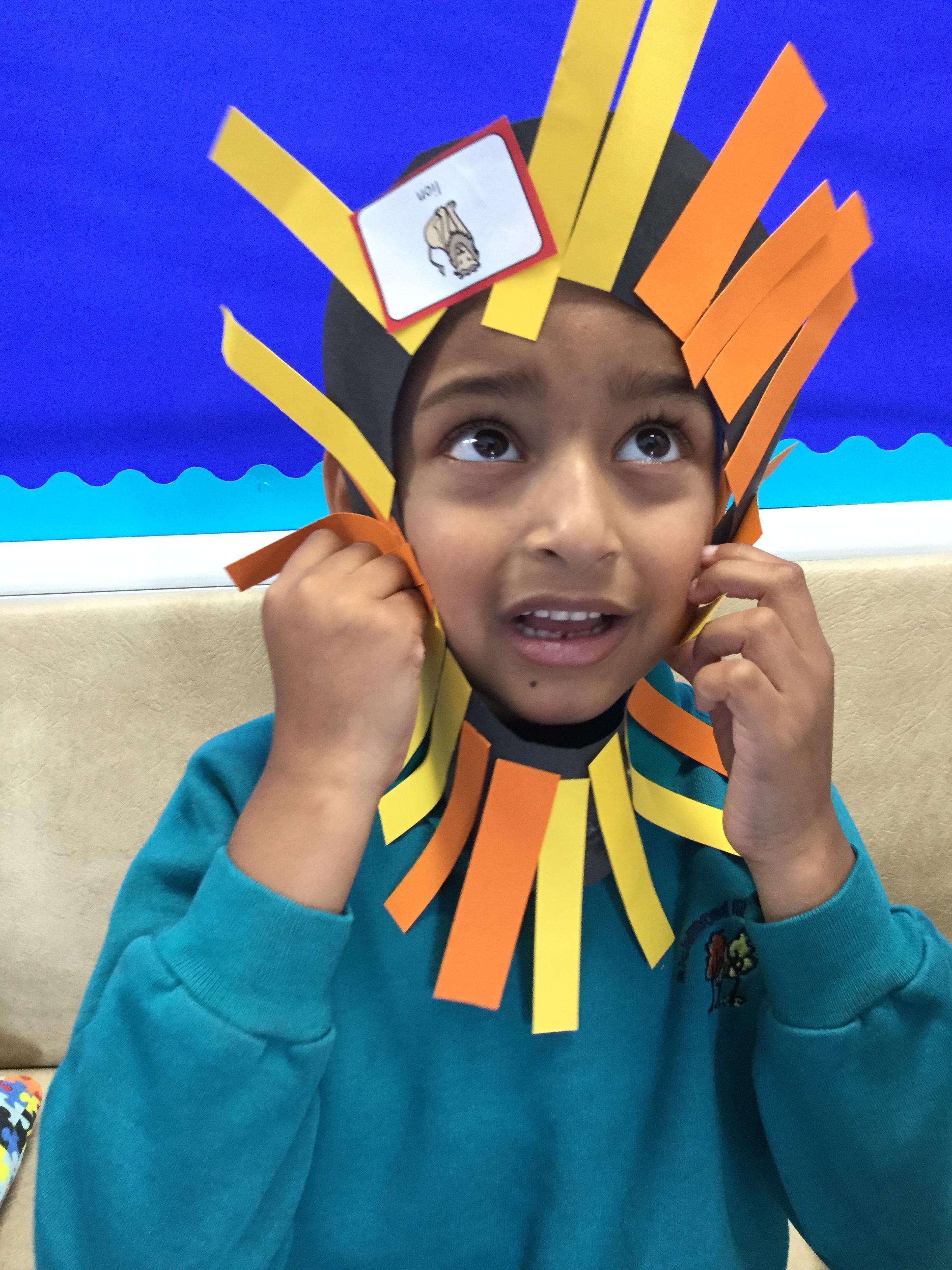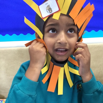In English, we have been looking at the story 'silly suzy goose'. We have focused on each of the animals and the actions they perform in the story. Last week we looked at the Lion and made Lion masks.