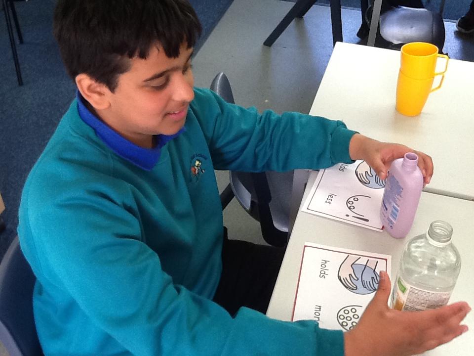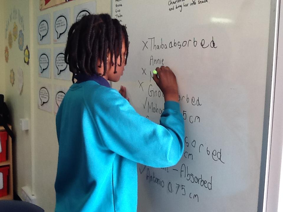 In Numeracy we have been looking at measure and number and have completed several water based experiments where we have recorded data based on different materials collecting and containing rain water. Some of the children have been working on calculations, adding on and taking away and using the appropriate signs to show the working out of these sums.