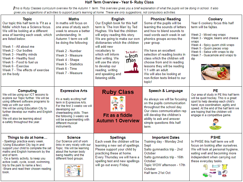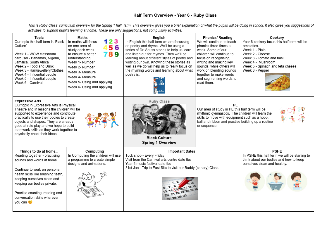 I have added the curriculum map to show the areas of learning we would have been covering this half term.