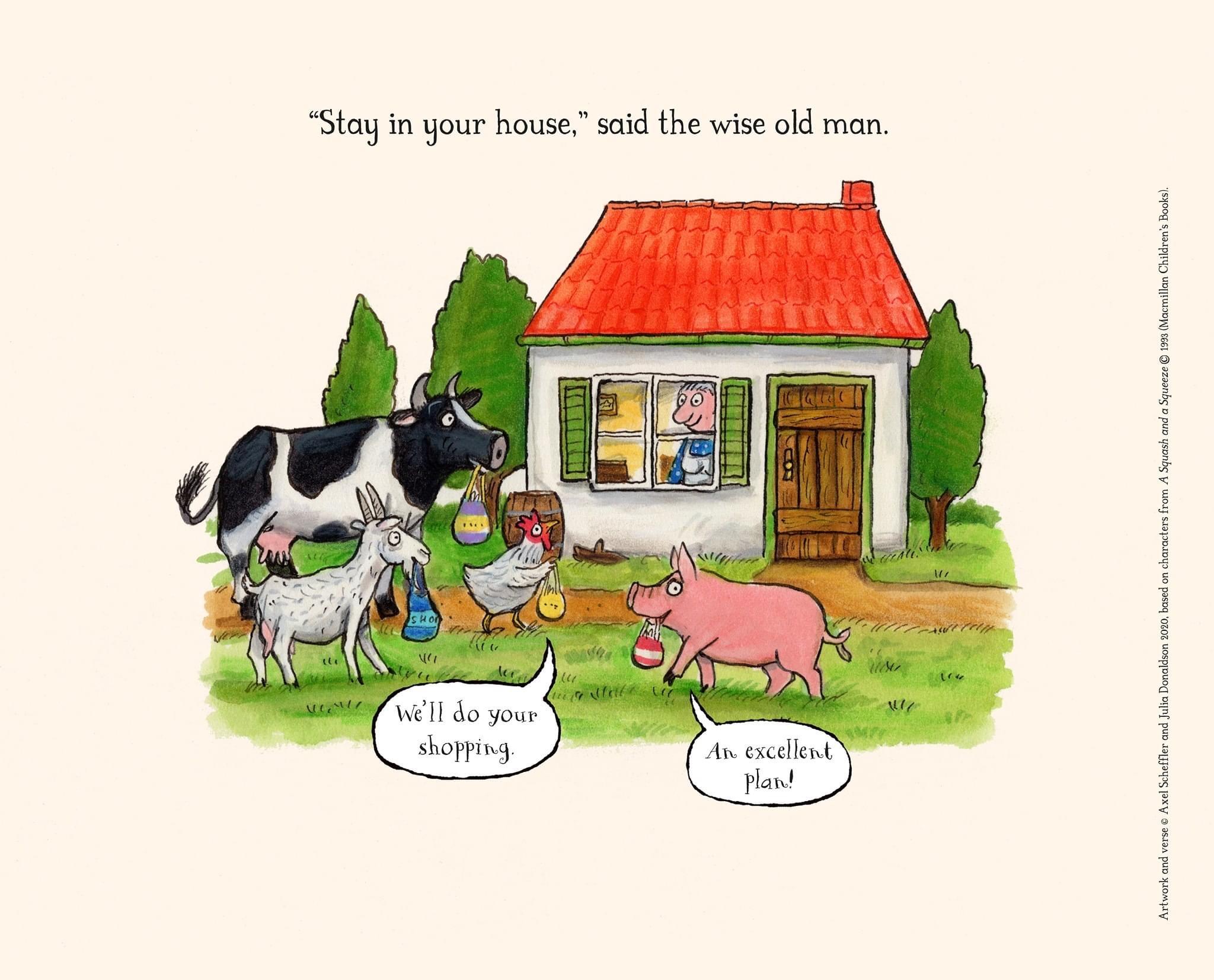The author of the Gruffalo has created some new scenes to help children adjust to living through the coronavirus pandemic. I thought the children would like to see some of the new content by Julia Donaldson and Axel Scheffler. They will have read or heard many of the stories over the years. I have attached the images below.