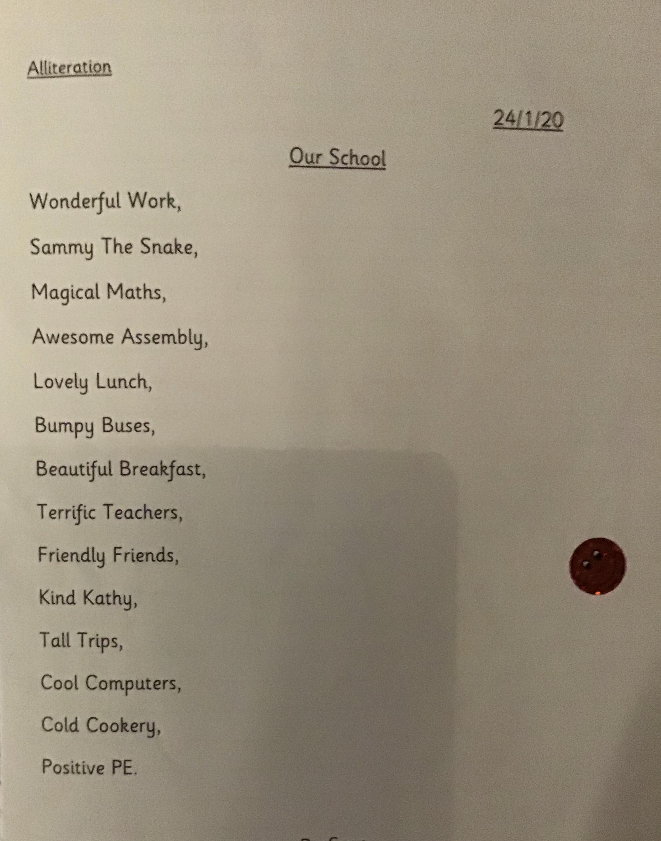 The children have been working hard in English learning about poetry and rhyme. They’ve also being learning about grammar and punctuation. Here are some photos of the children’s fantastic work: