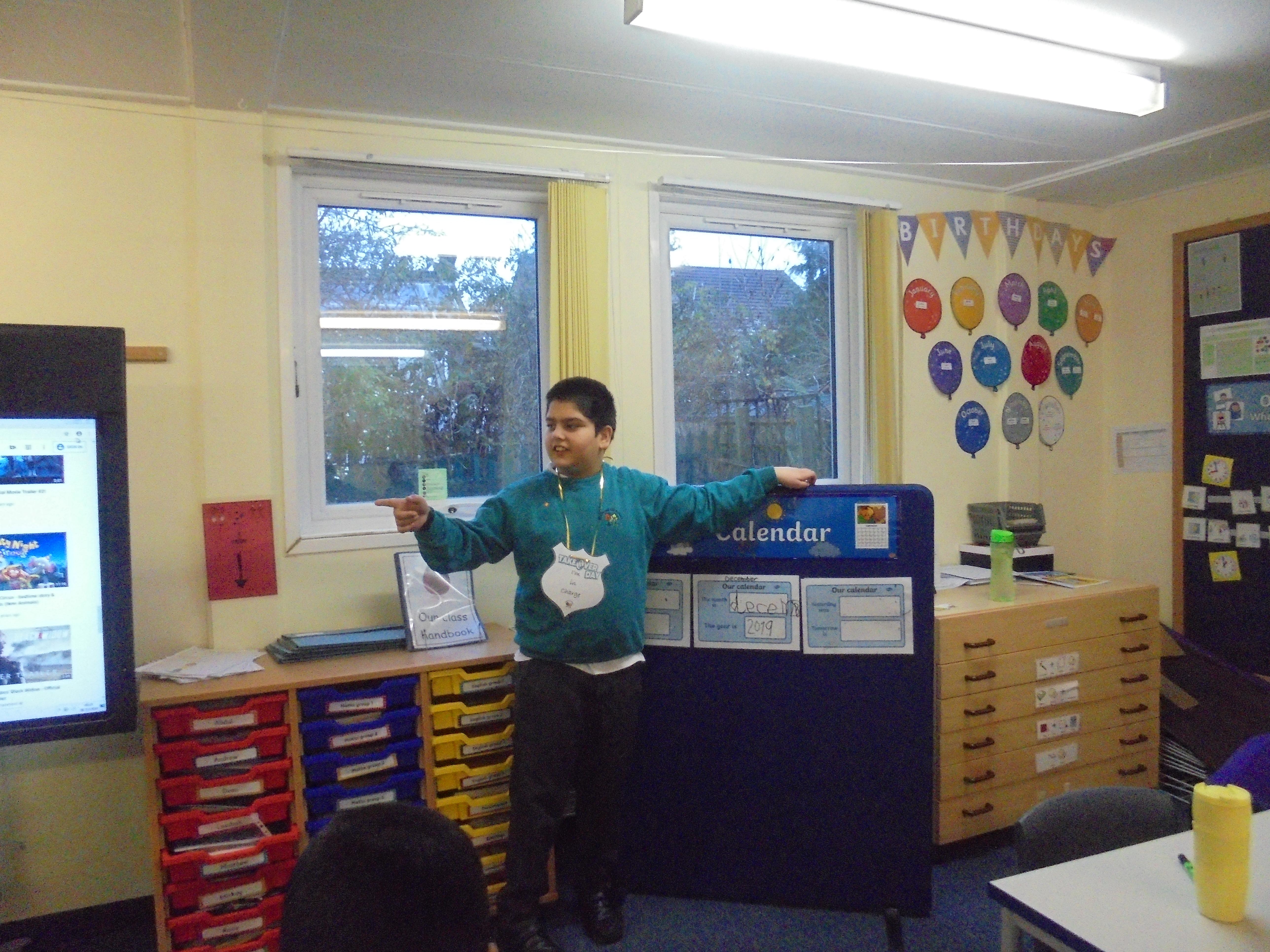 Abdul took over control of the class as part of our whole school Take Over Day! He really enjoyed being the teacher at times throughout the day and deciding what the children should do on this special day!