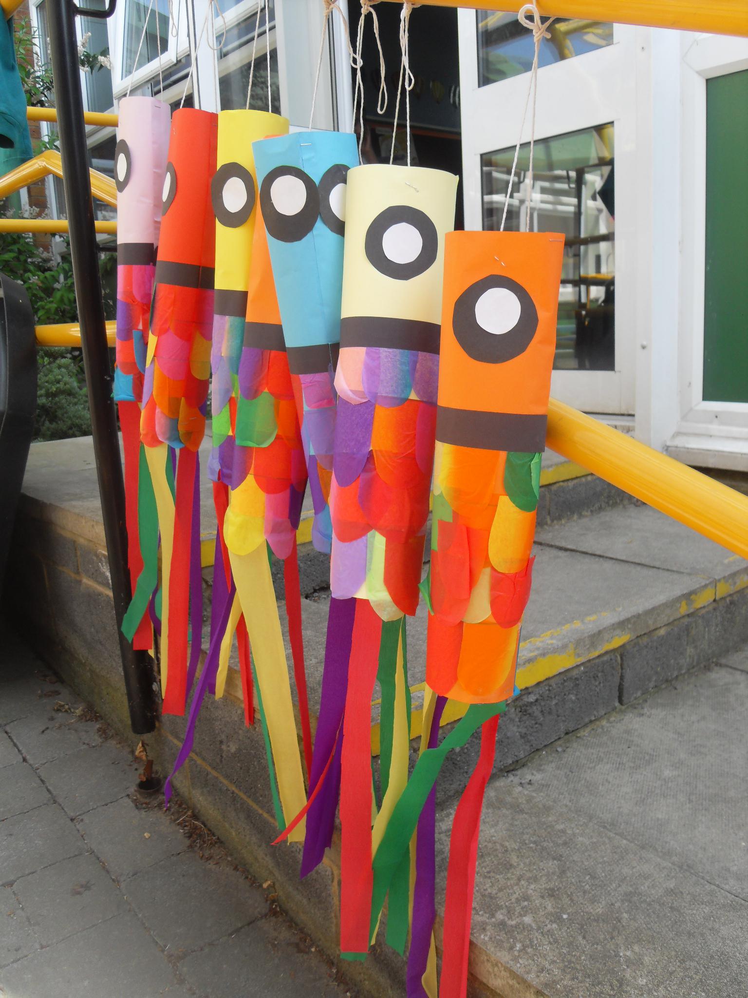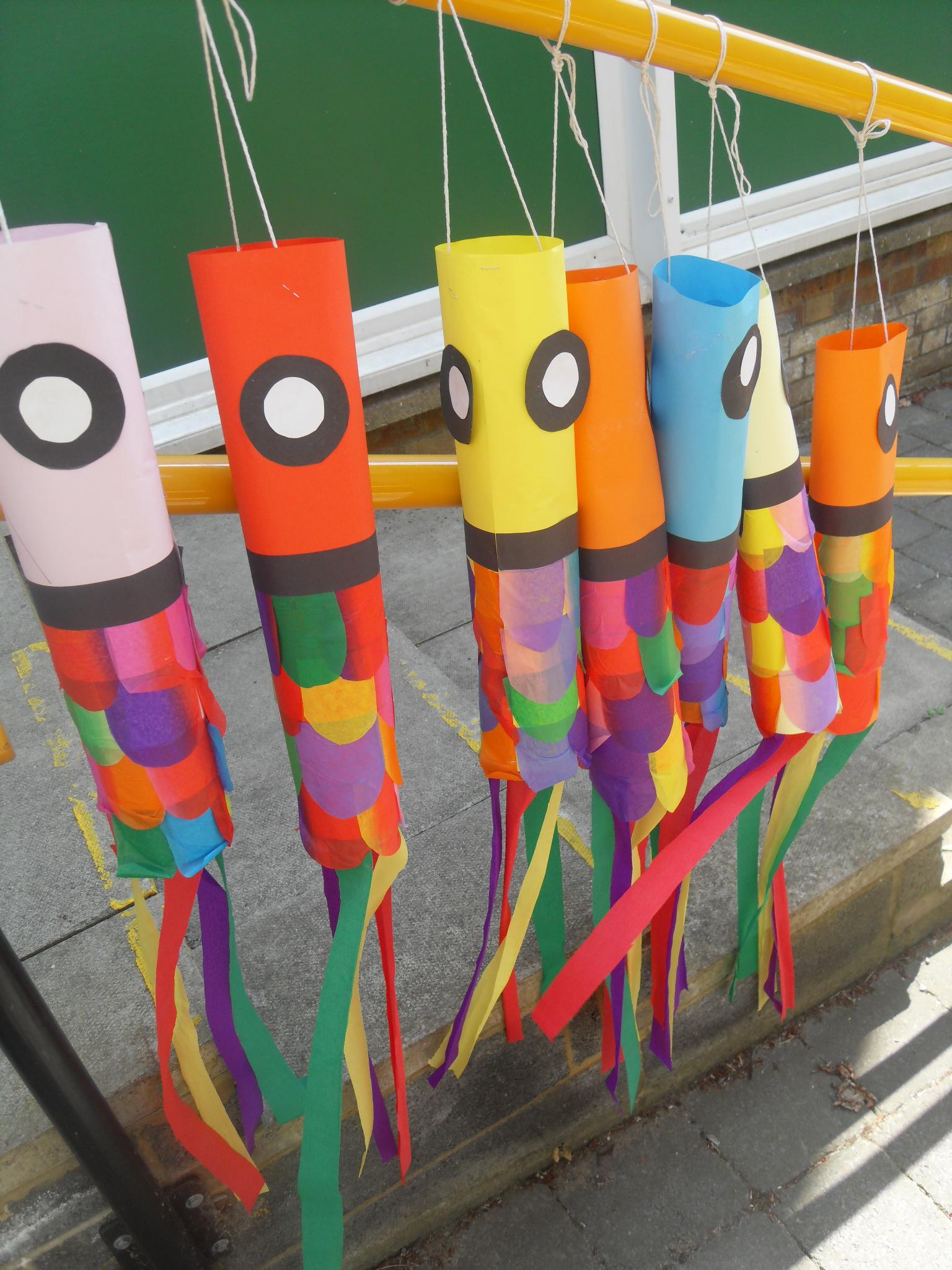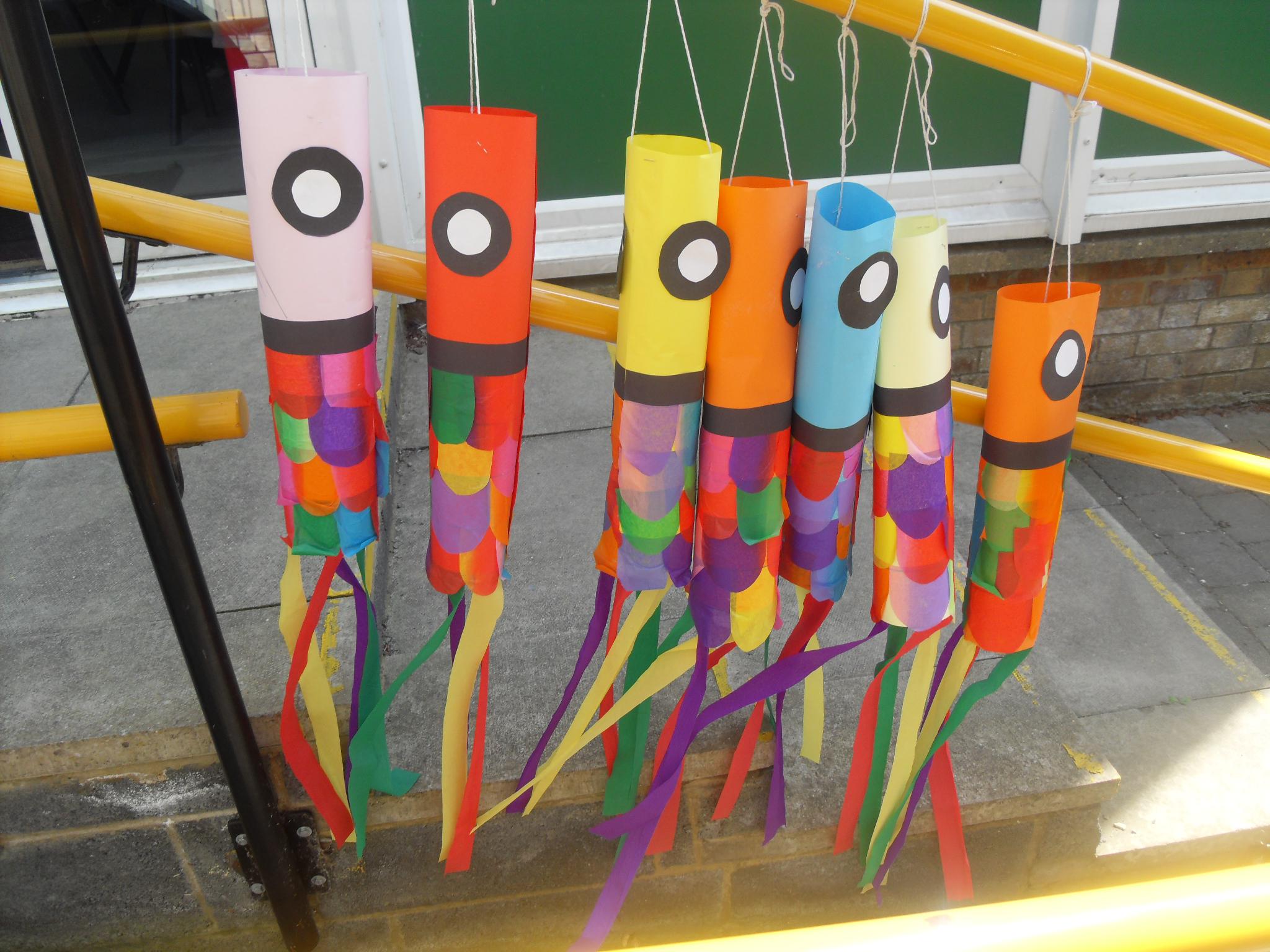 This week the class have focused on the country of Japan. The children have made "Koinobori" which are carp windsocks. These can be found decorating the landscape of Japan from April through to early May, in honour of Children's Day on May 5th.
