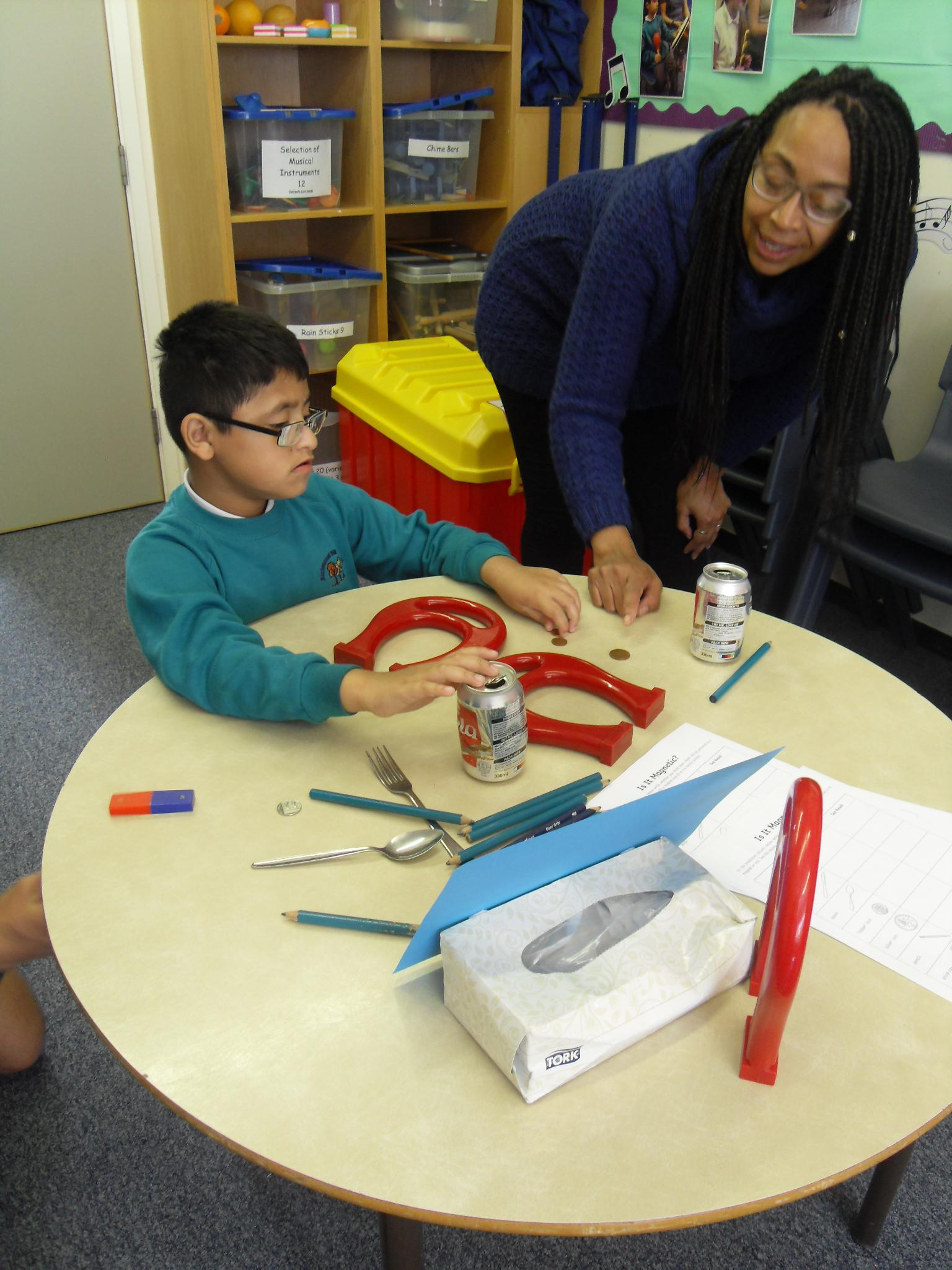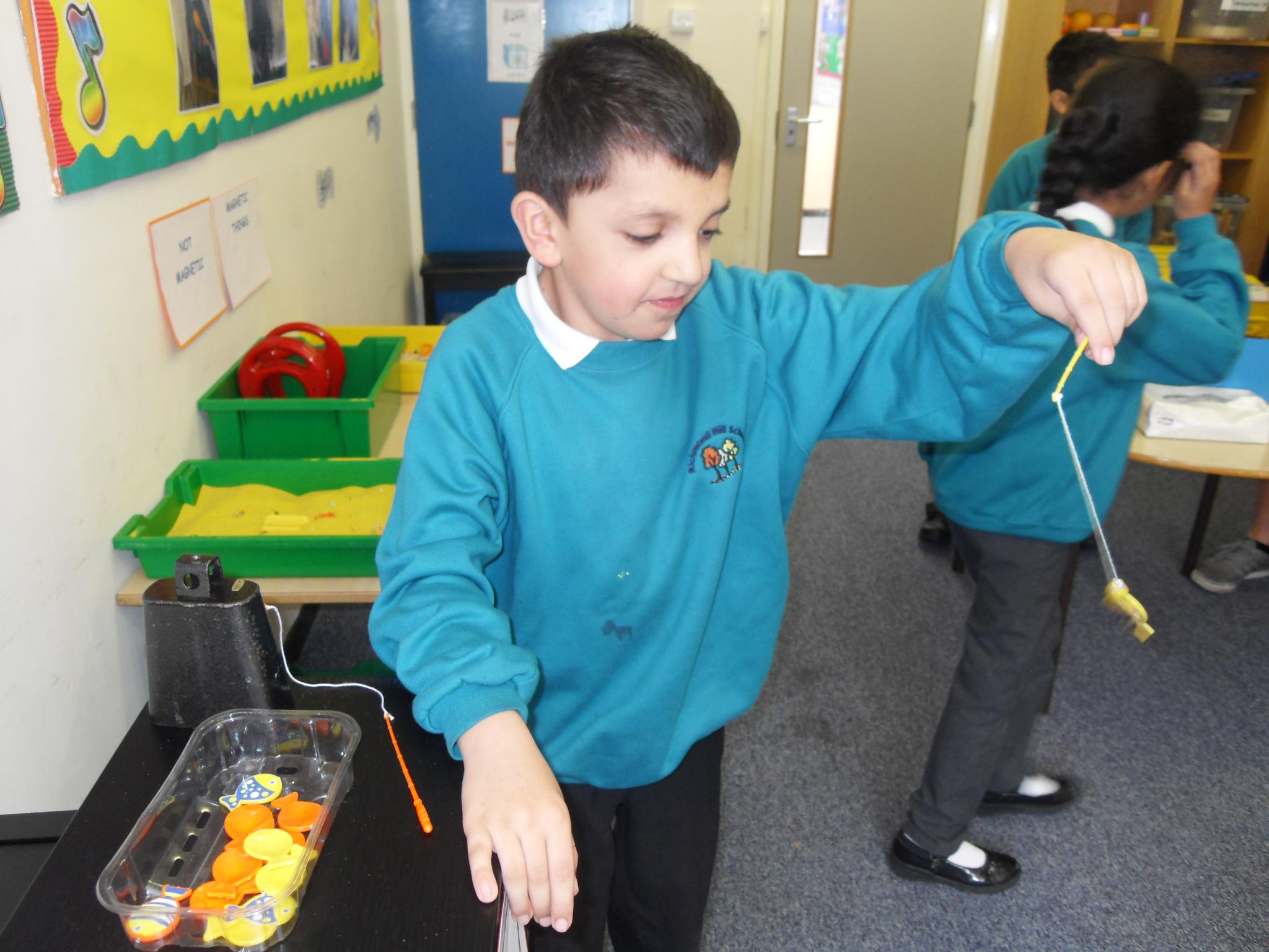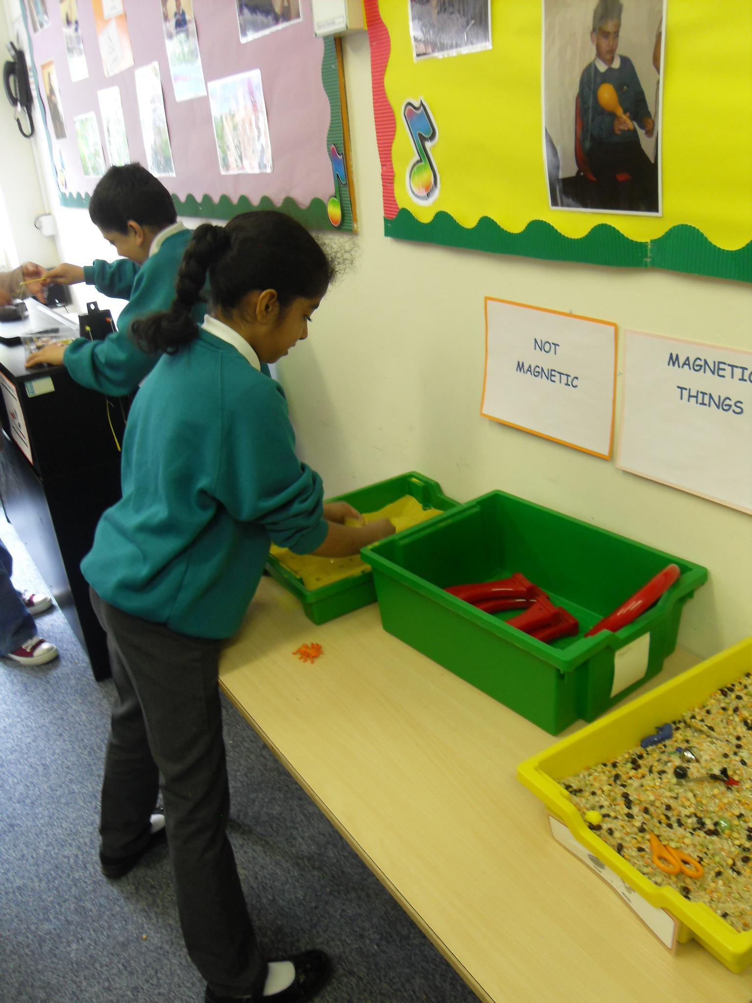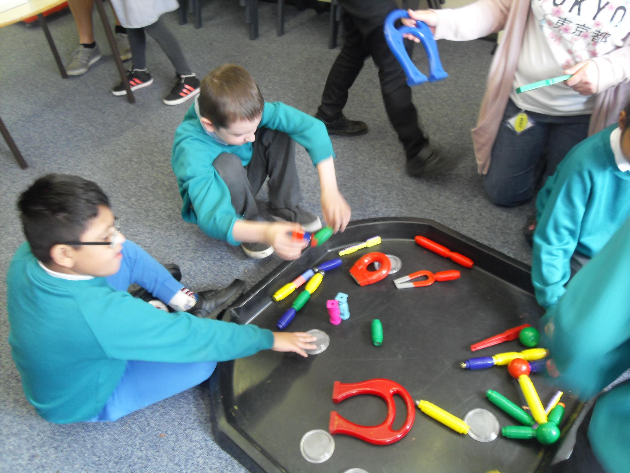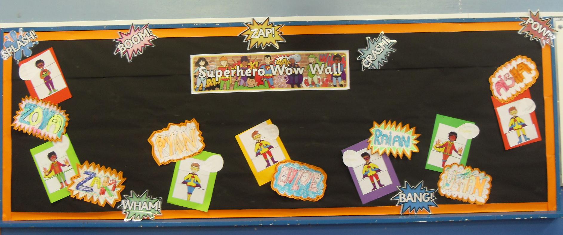 In Topic, the class have made superhero bottles which have their own mask, cape and logo.They have started a superhero wow wall with characters they have designed and names coloured in a comic book style with big letters and zigzag outlines. In science, the year band set up a Magnetic Mayhem room, where the children were free to experience and experiment with magnets, magnetic objects and games.