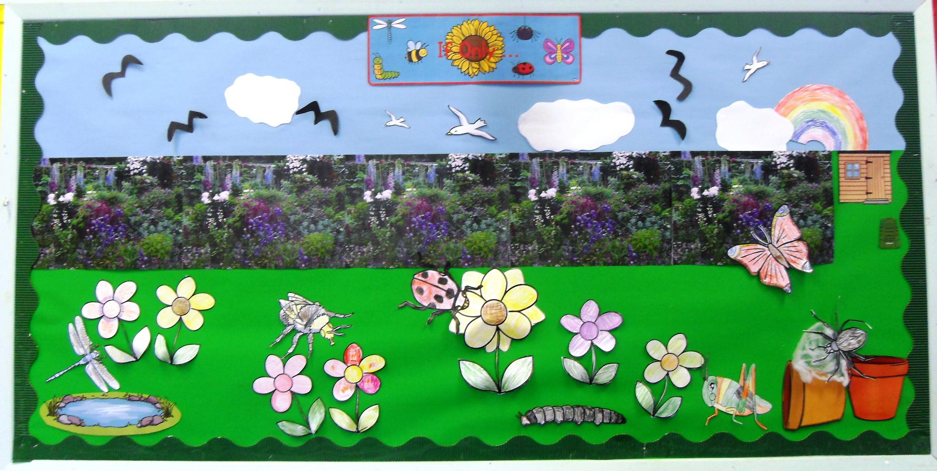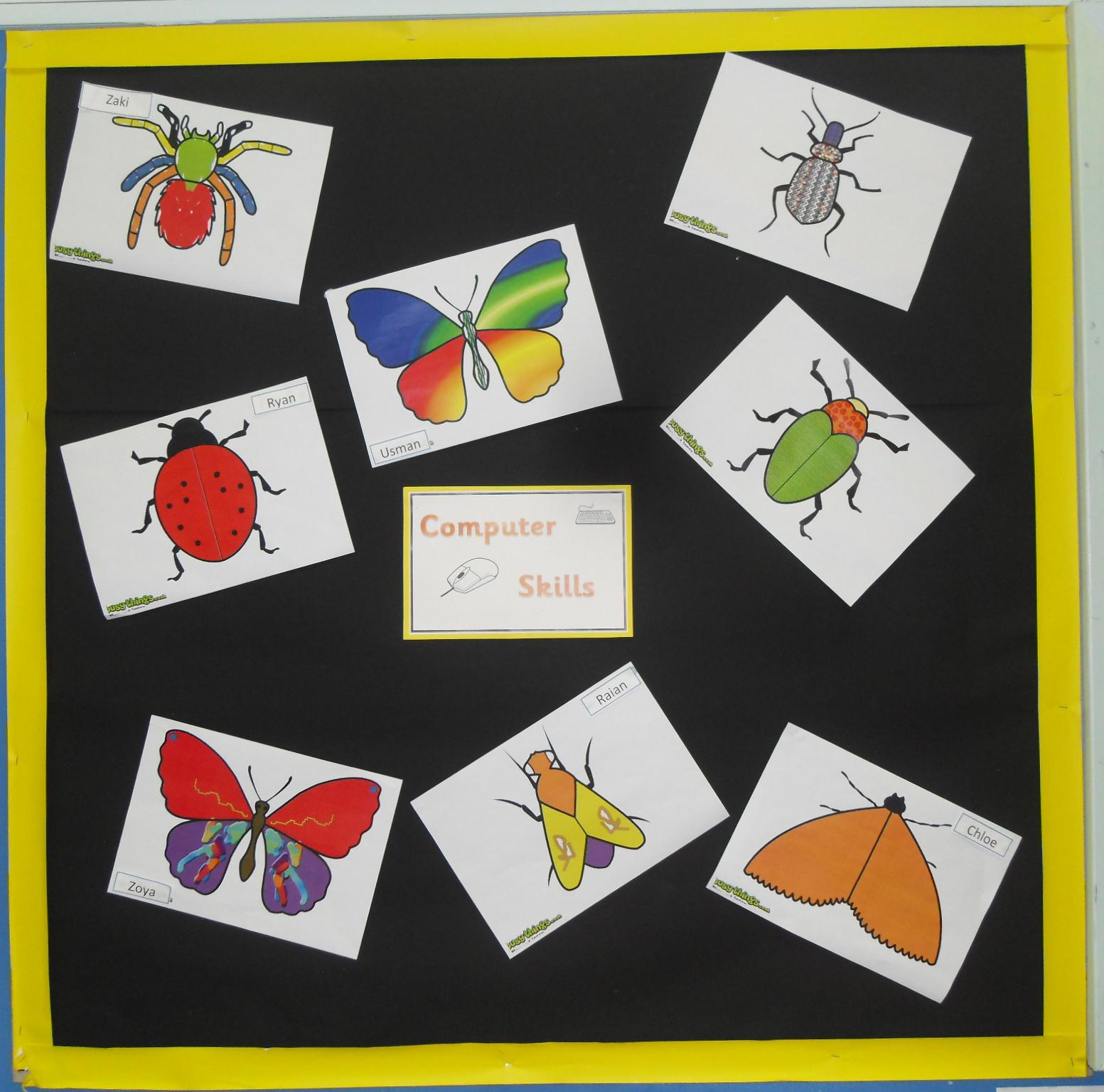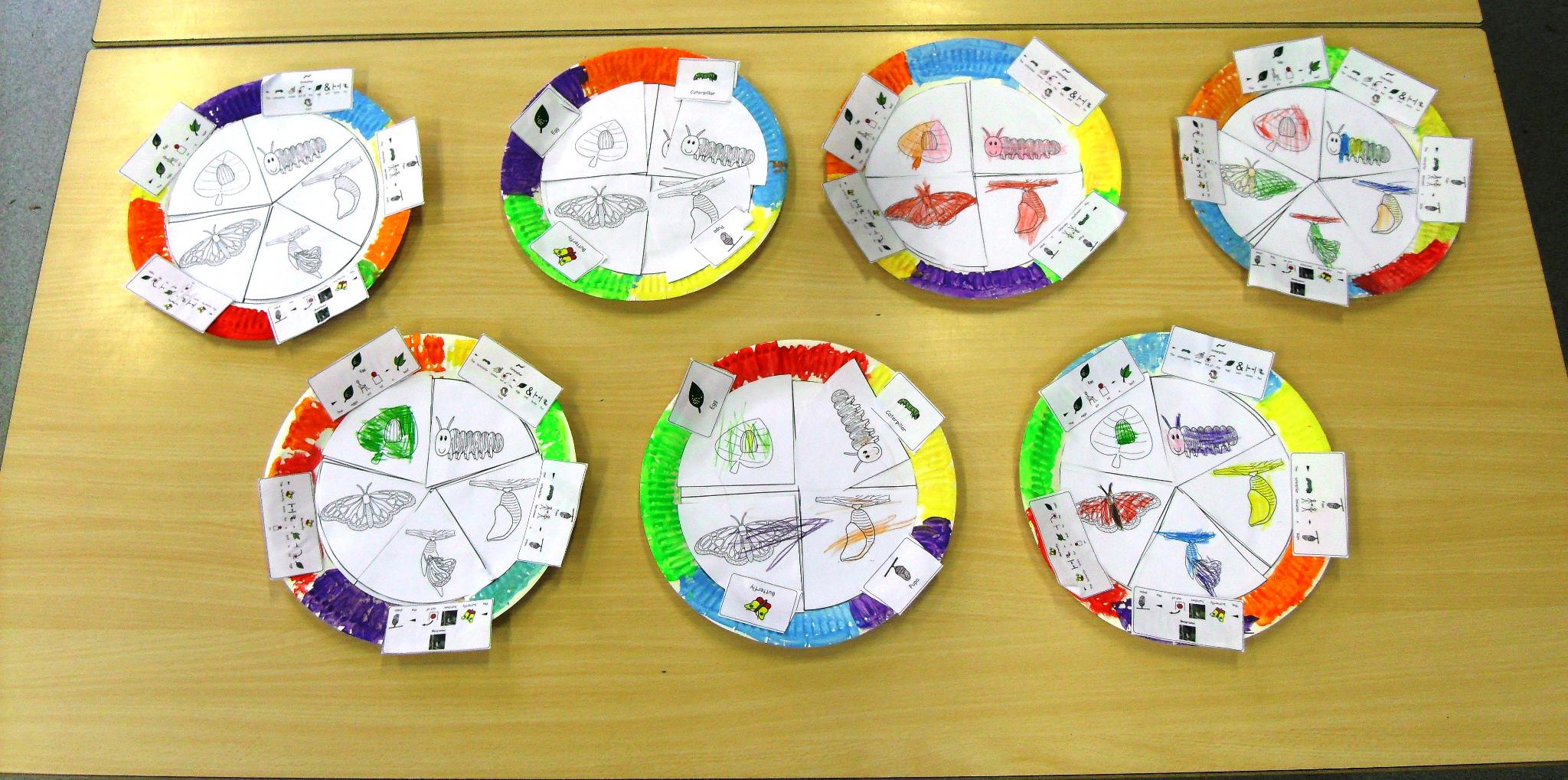 The children coloured and made the minibeasts for our If Only … book display. Linked to the book the class designed their own minibeasts in ICT and have shown the life cycle of a butterfly on their coloured plates.