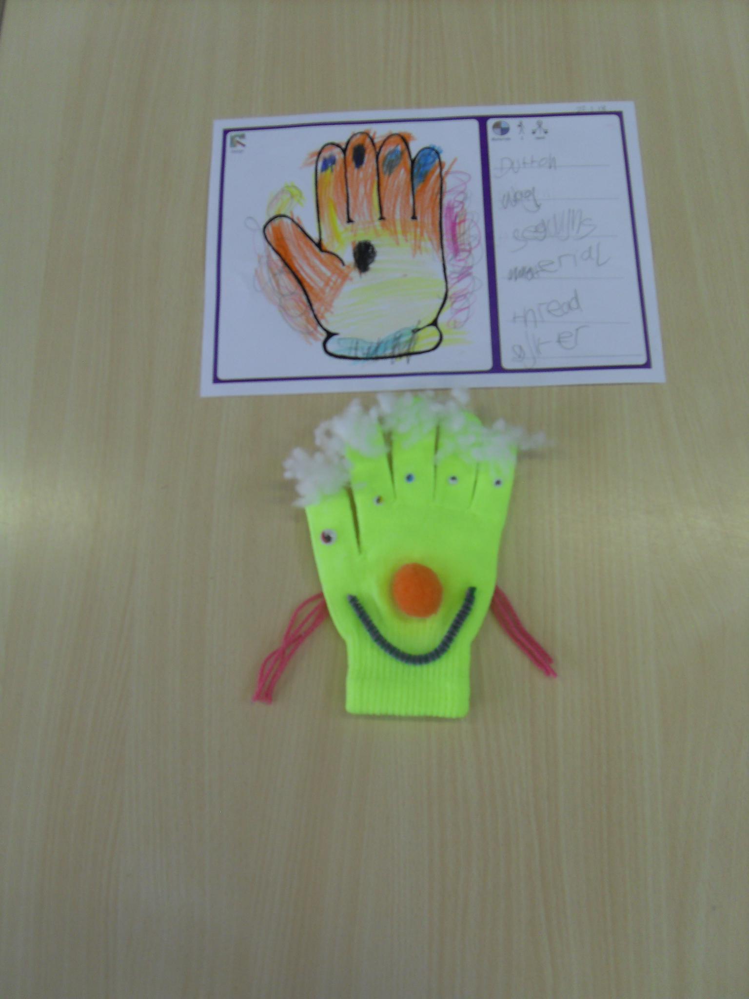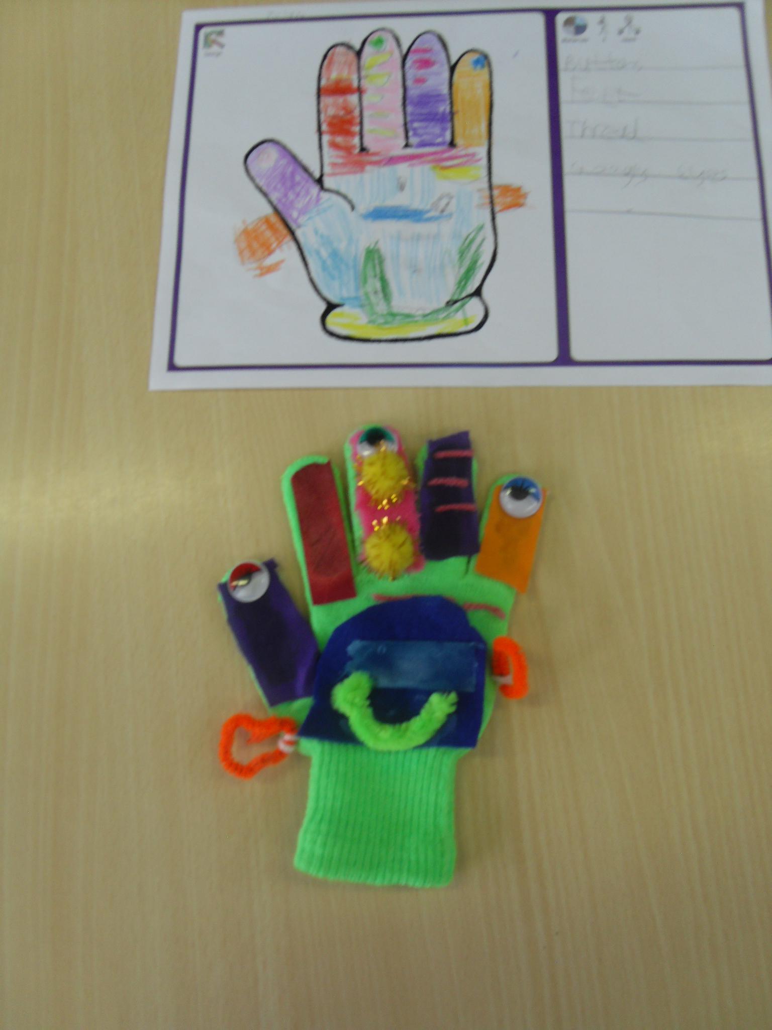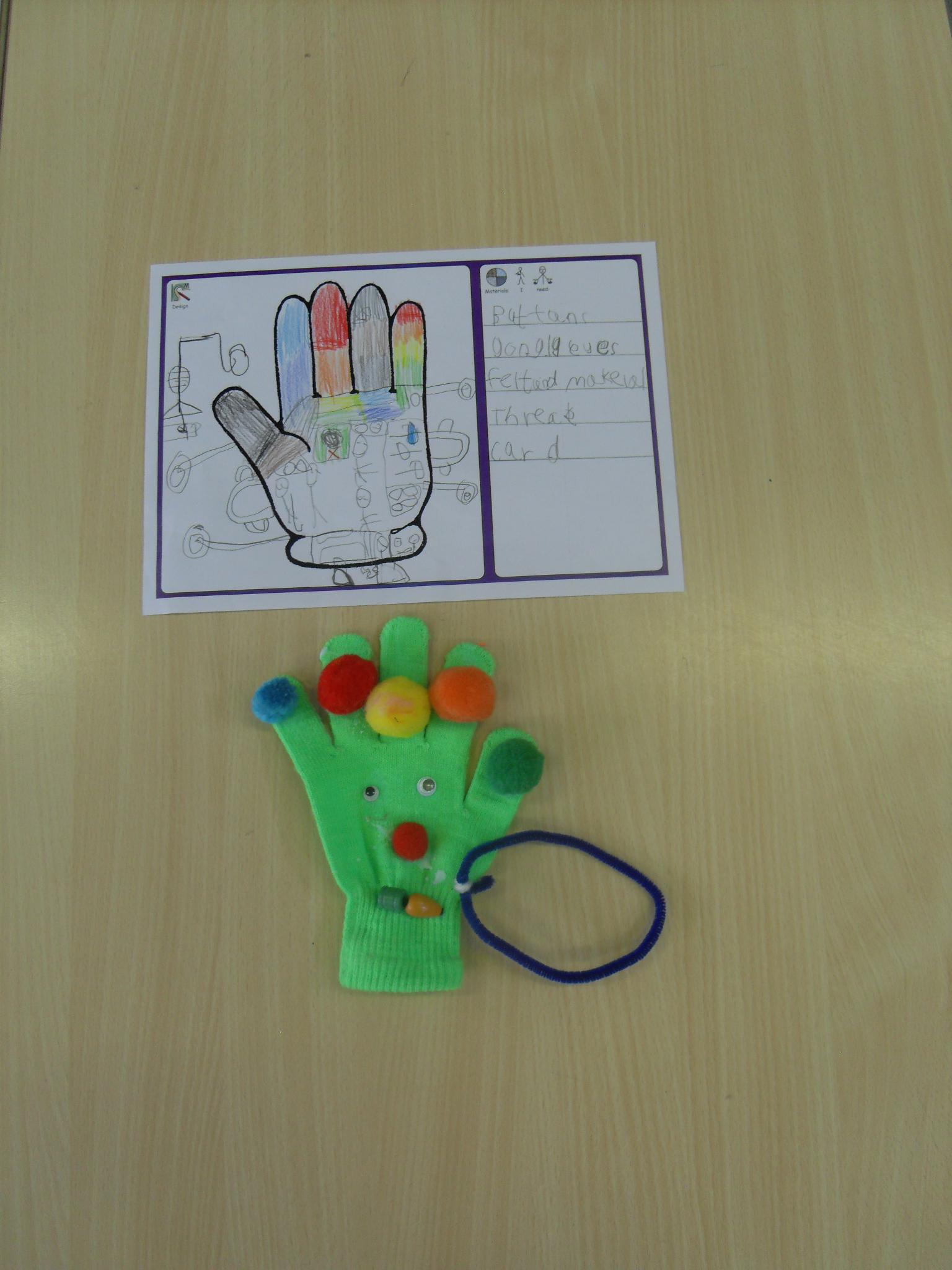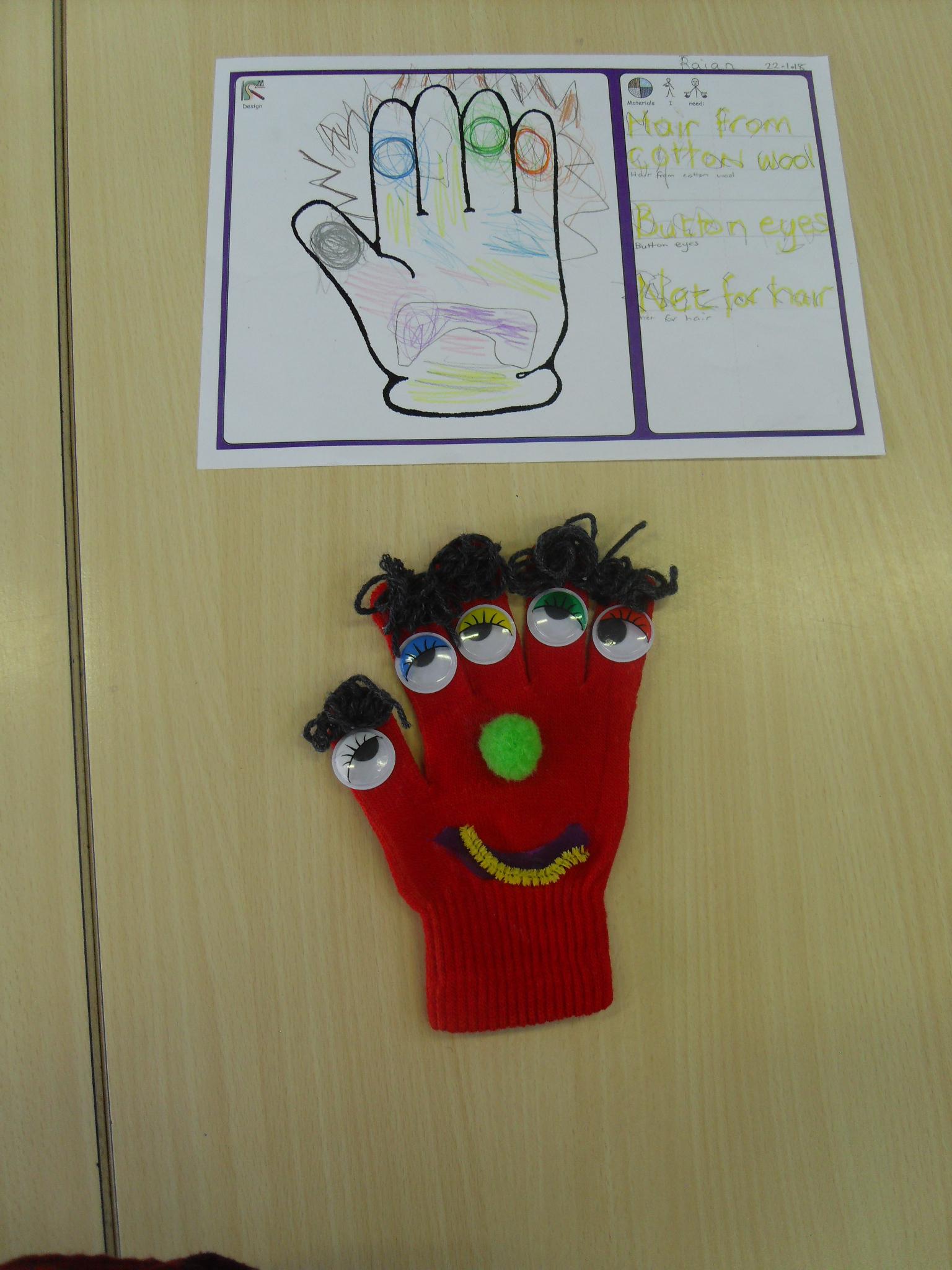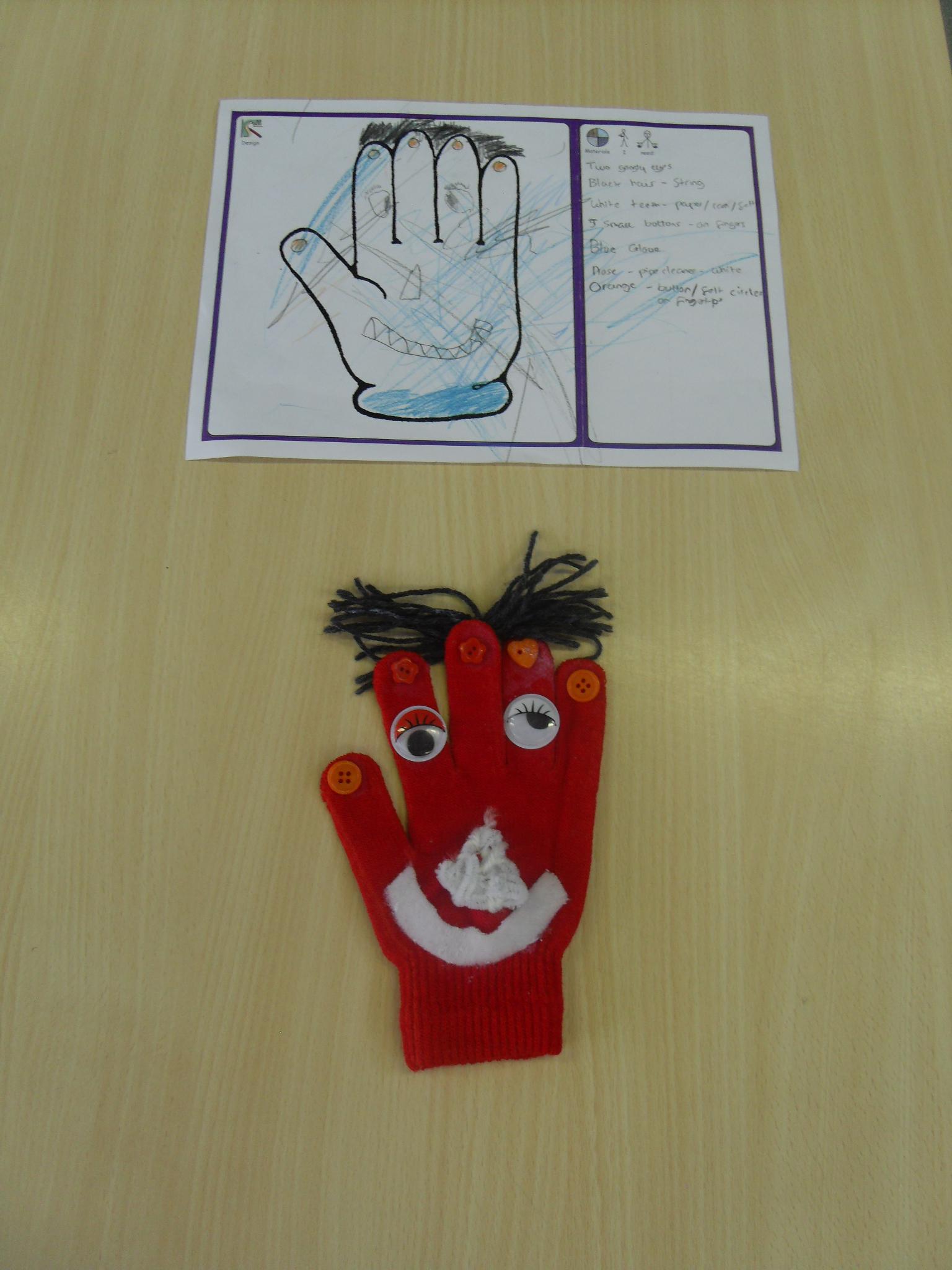 The children designed and made a list of resources needed to make their hand puppets before creating them.