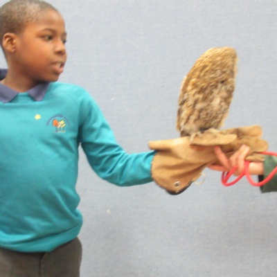 We also, had some amazing visitors in the form of three owls who came to assembly! Look at some of us being brave enough to meet the owl!