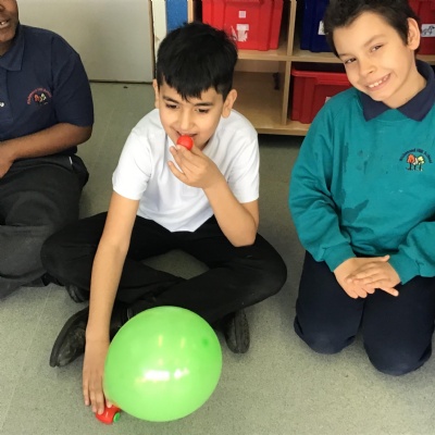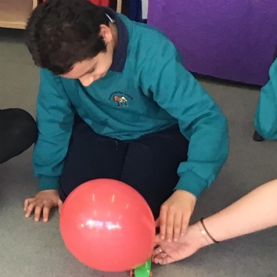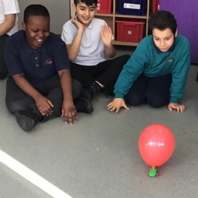 As part of our topic we thought about balloons and how they go up up up, but once we had played a balloon race all we cared about was watching them zoom across the floor.