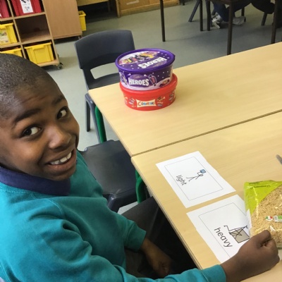 We have been working hard in maths and thinking about weight and size and how we measure different objects.