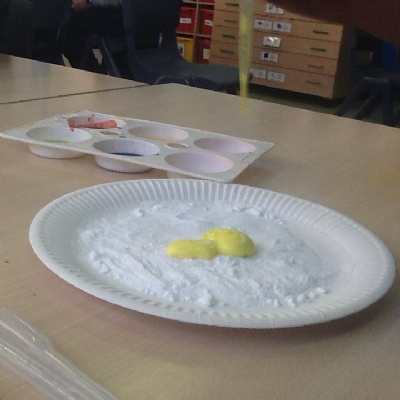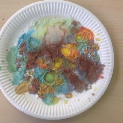 Sapphire Class have been thinking about fizzing and popping in science to coincide with bonfire night and we tested out our own little chemical reactions using alkalines (bicarbonate of soda) and acid (coloured vinegar).