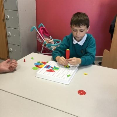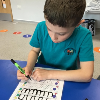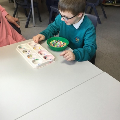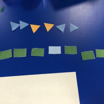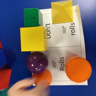 We have been creating patterns using familiar objects. We have also been sorting 3D objects & seeing which 3D shapes roll.