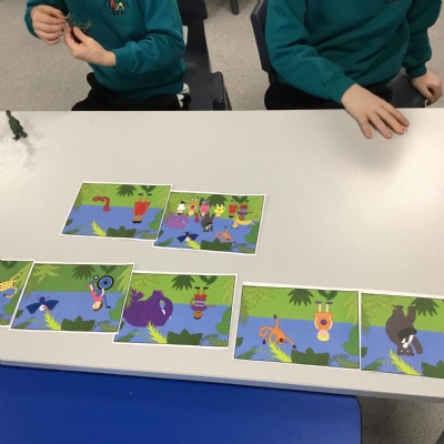 We have been enjoying reading our new story 'Animal Boogie'. We have been finding words which rhyme & sequencing the events within the story