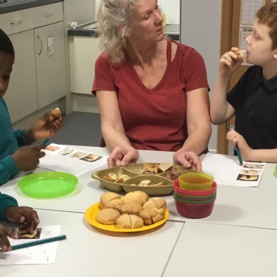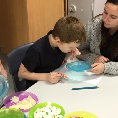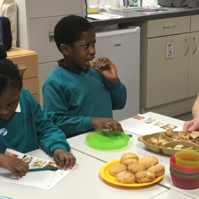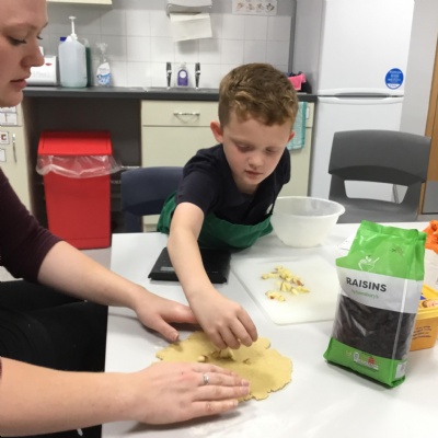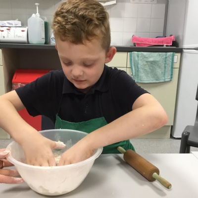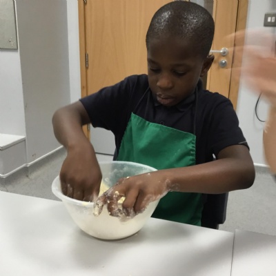 This half term, the focus was on making different twists and the children have so far enjoyed tasting jam, cheese, chocolate and apple + raisin twists. They have taken part in mixing, rolling, and spreading/sprinkling the filling on top ready to be rolled into a twist and baked.