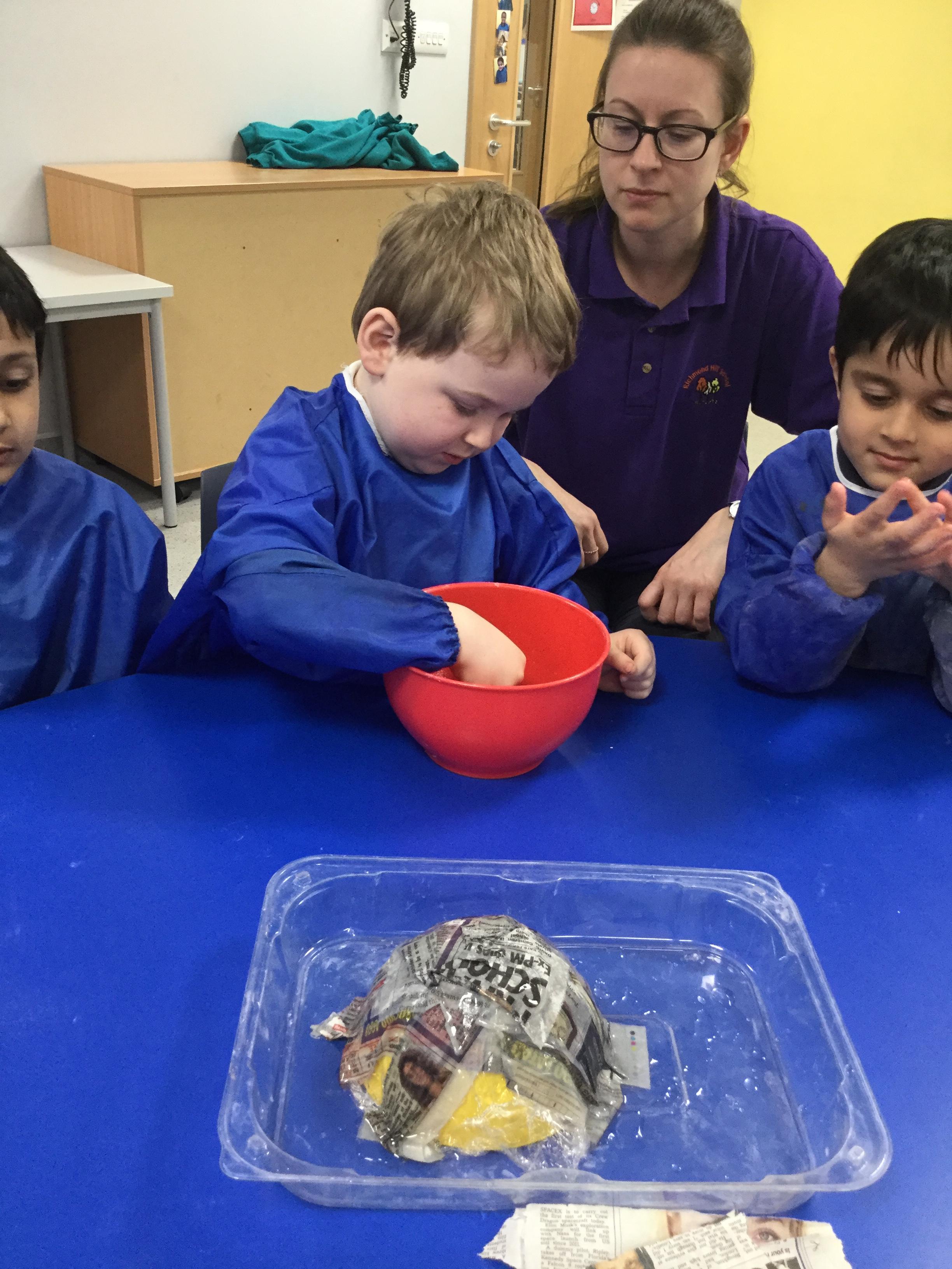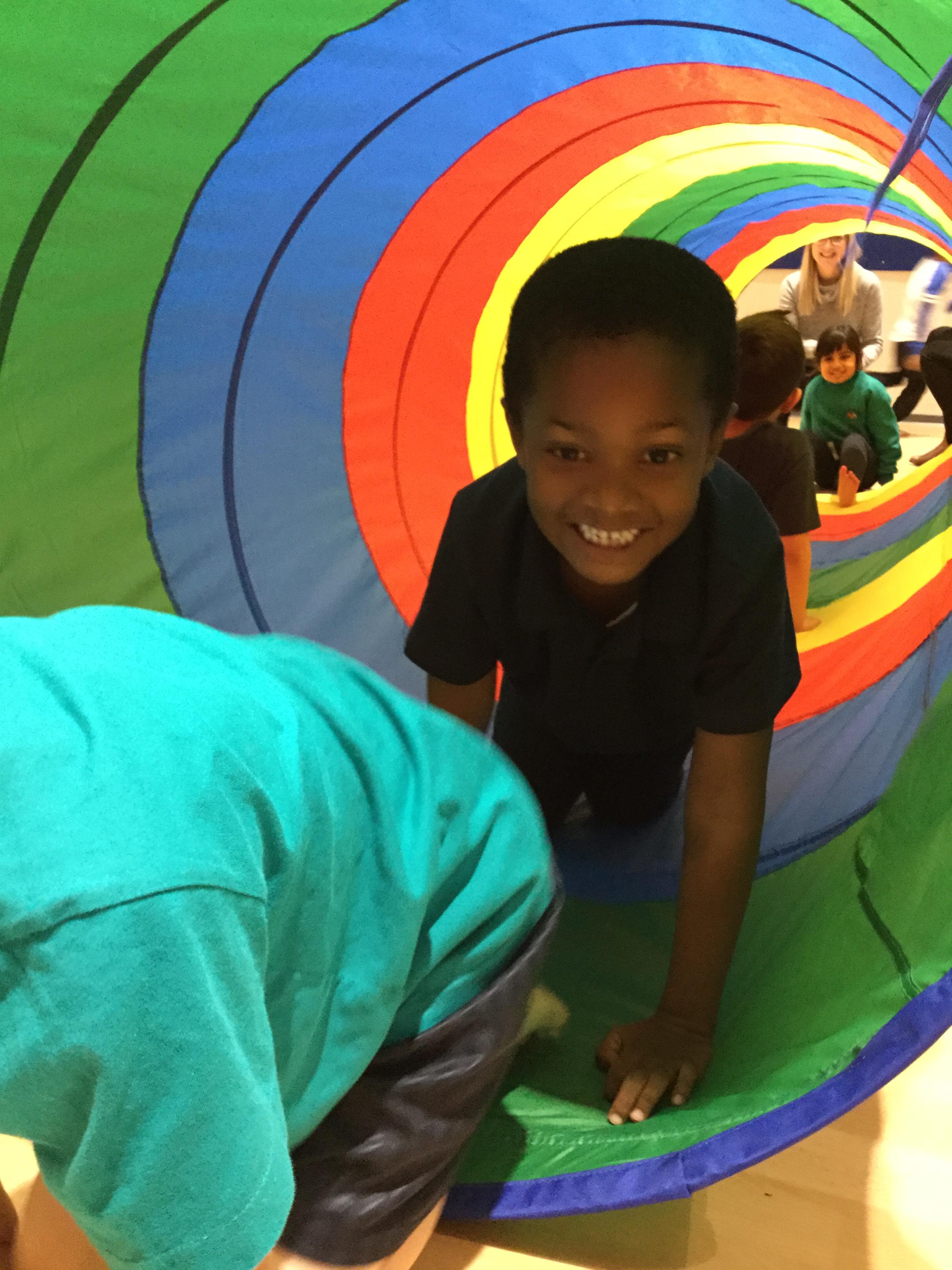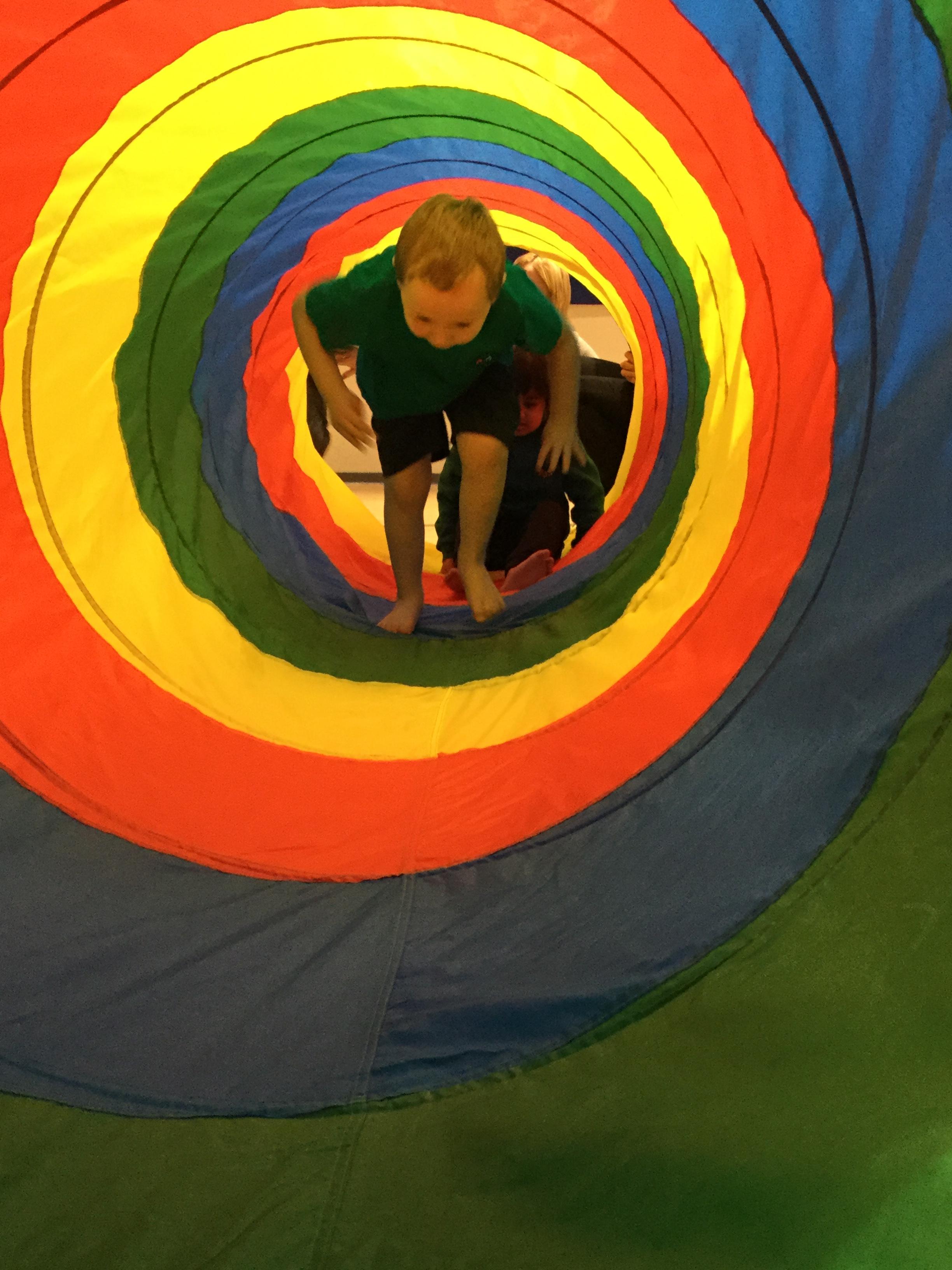 P.E is one of our favourite sessions. Maisy is teaching us all about gymnastics this half term focusing on balancing and rolling. We loved using Maisy's special big tunnel, we had lots of fun climbing though it and sitting in it with our friends.