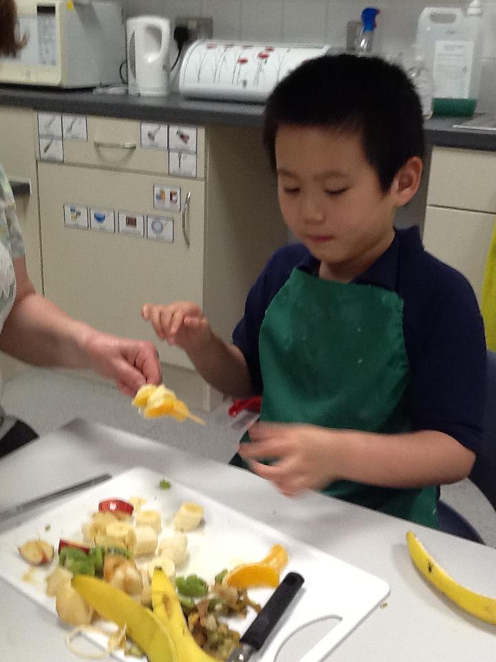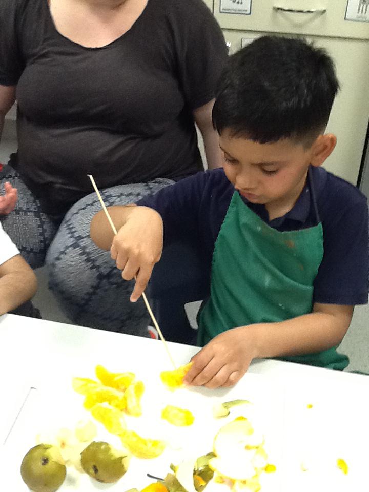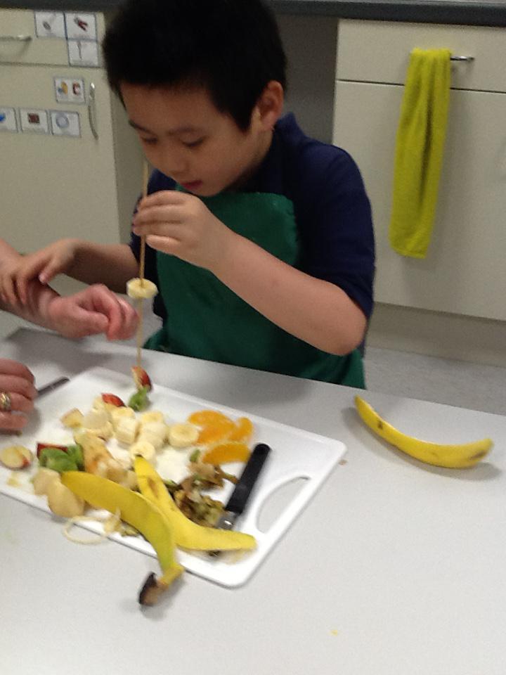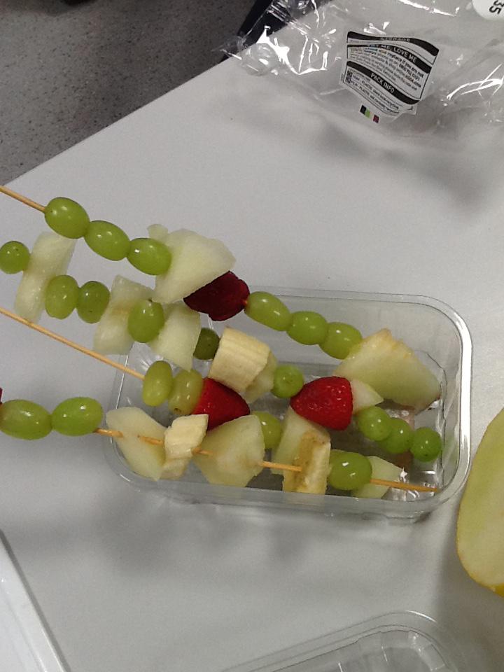 We made fruit kebabs using Bananas, kiwi, apples and oranges!