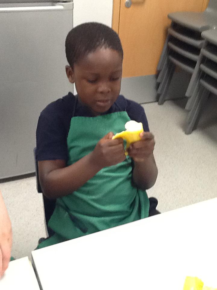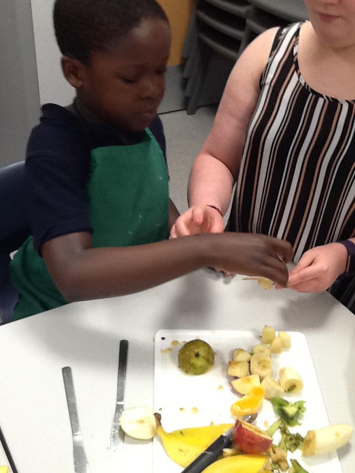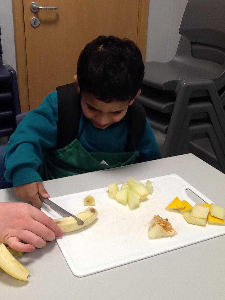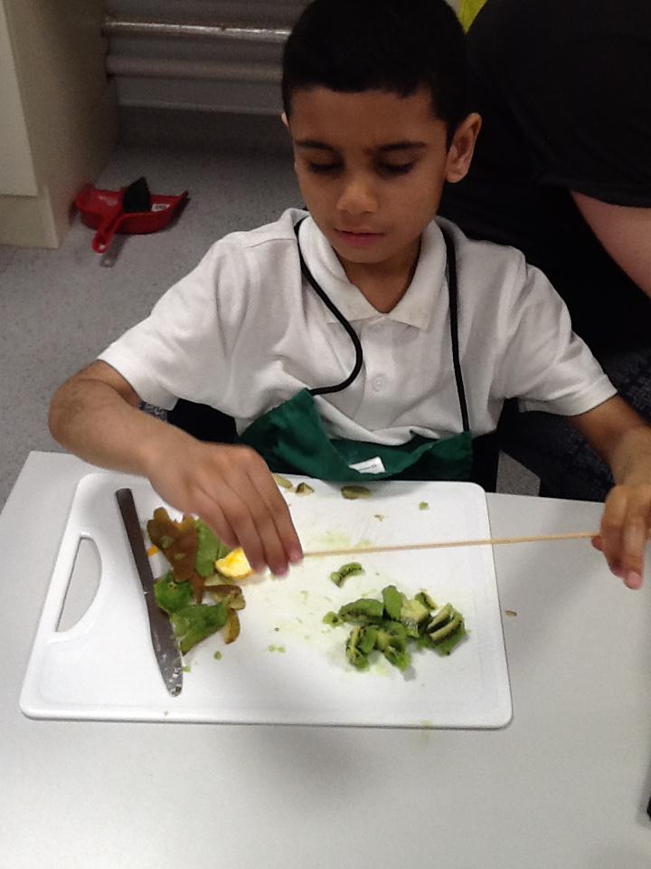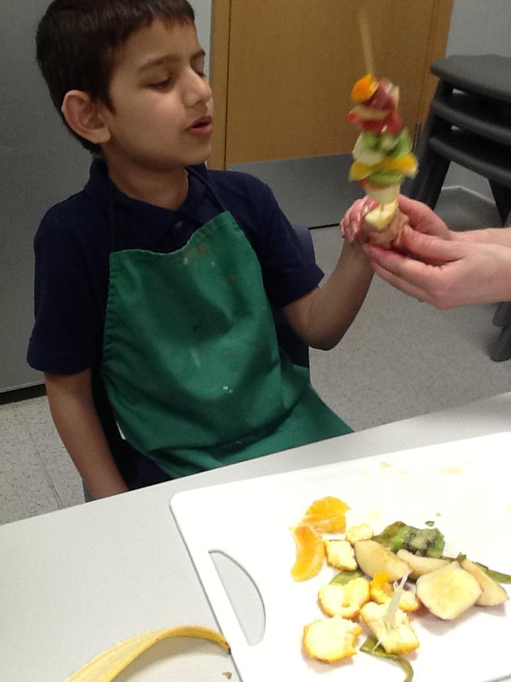 We made fruit kebabs using Bananas, kiwi, apples and oranges!