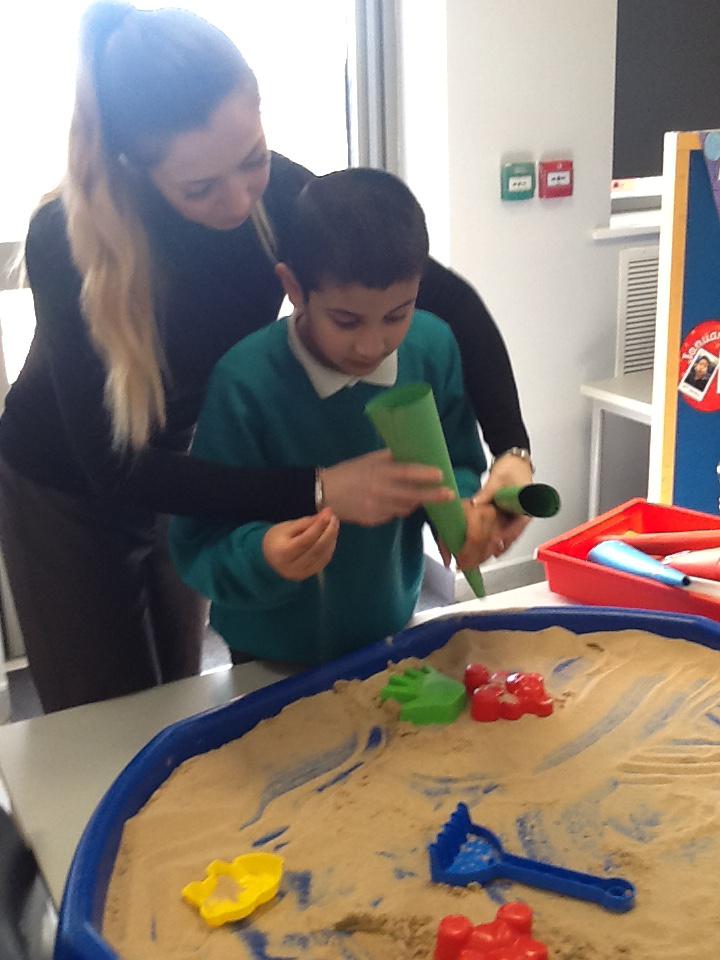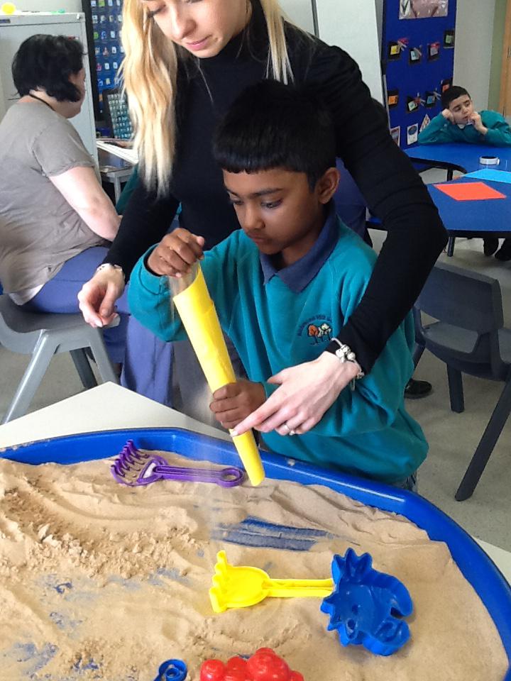 In Science is half term we have been exploring sand and making funnels to pour the sand through.