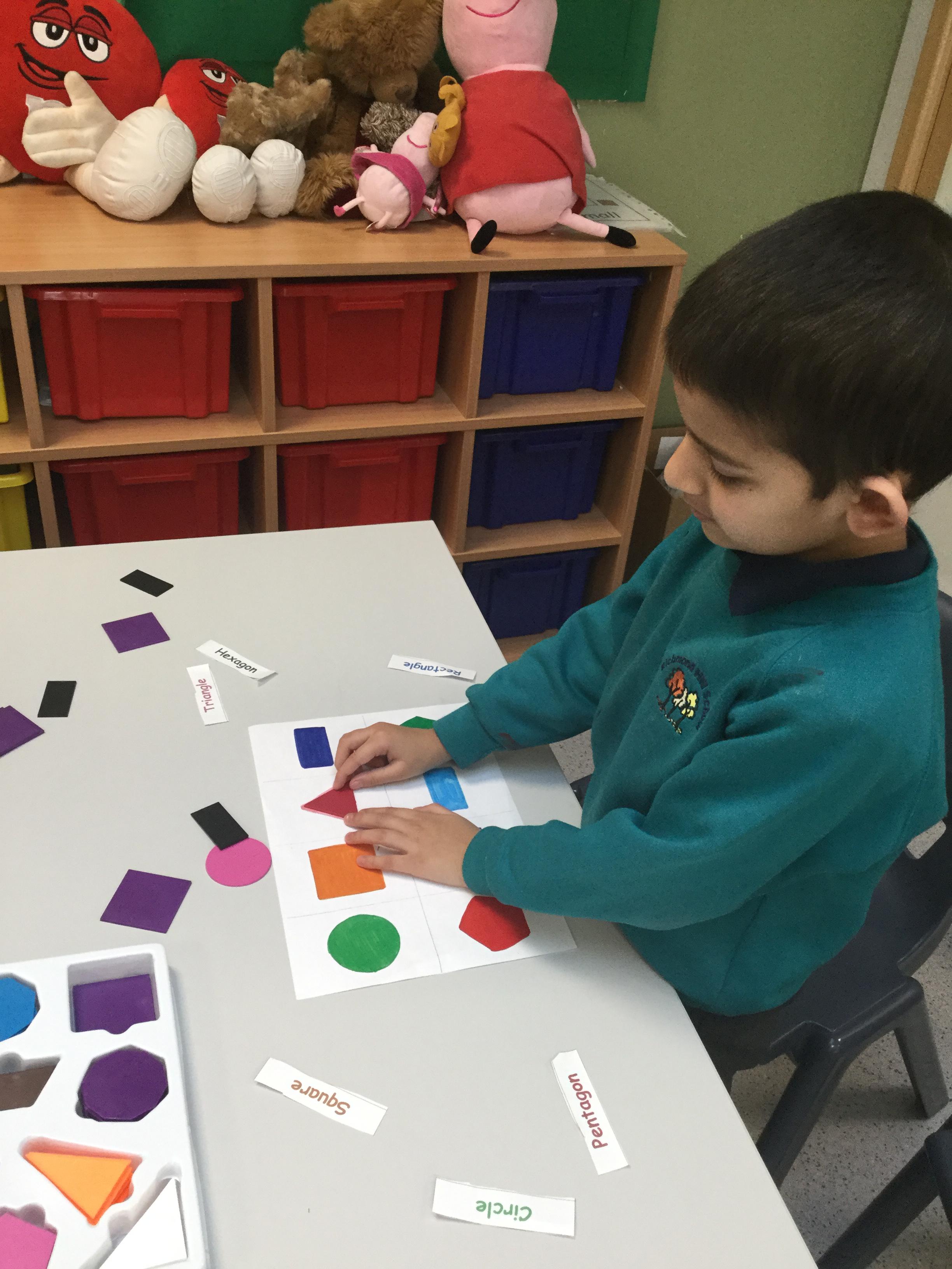 In geometry, we have matched different sizes shapes and their names.