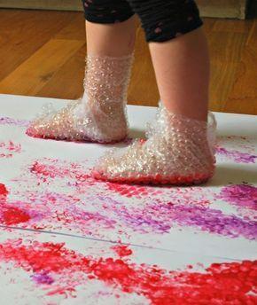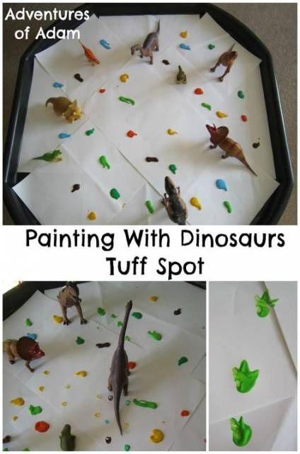 5. Add a little bit of paint to the tray/paper and encourage your child to use vehicles to produce marks