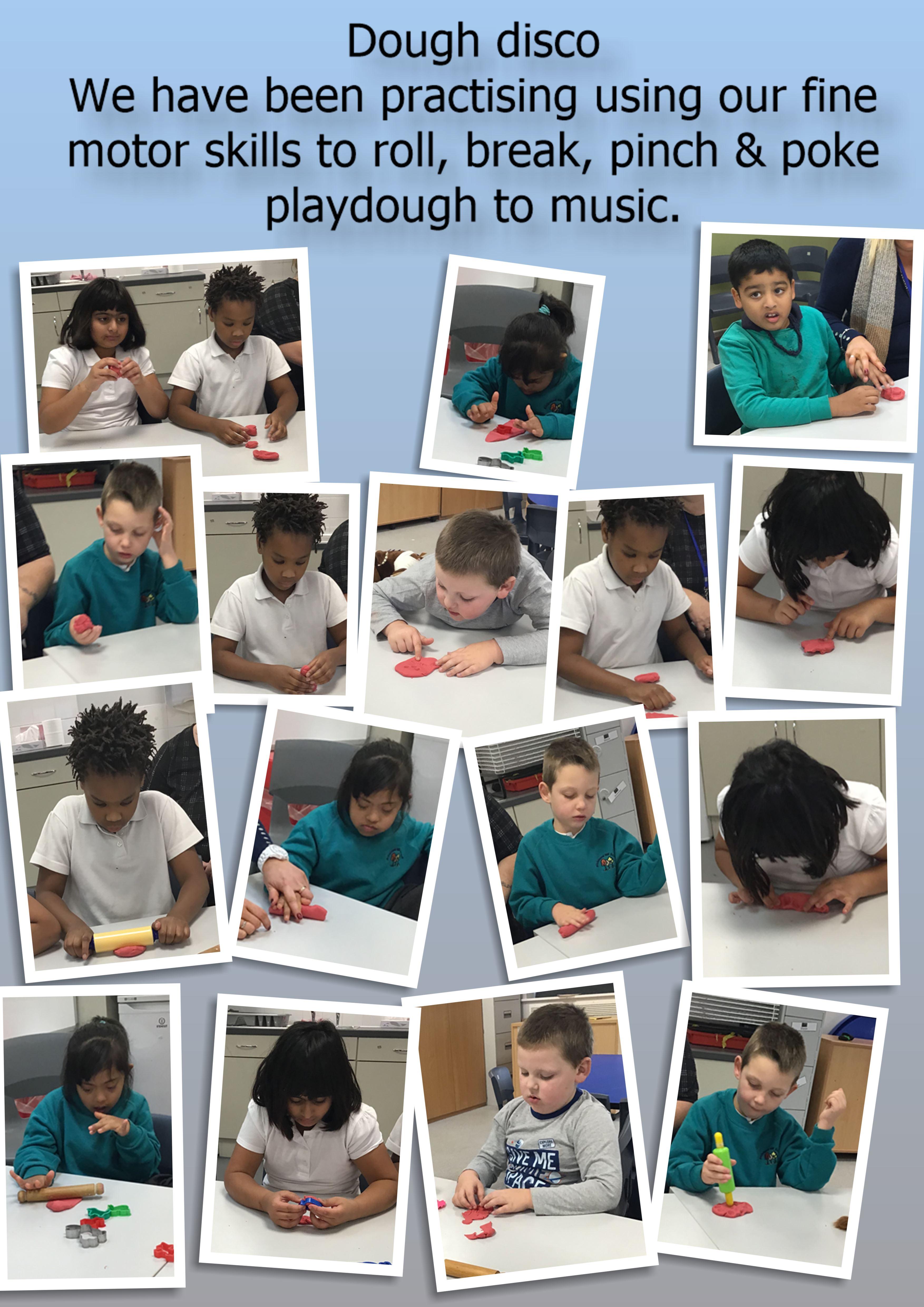 We have been working super hard in Woodpecker Class. The collages below show Dough disco, Maths, P.E and  our amazing handwriting work!