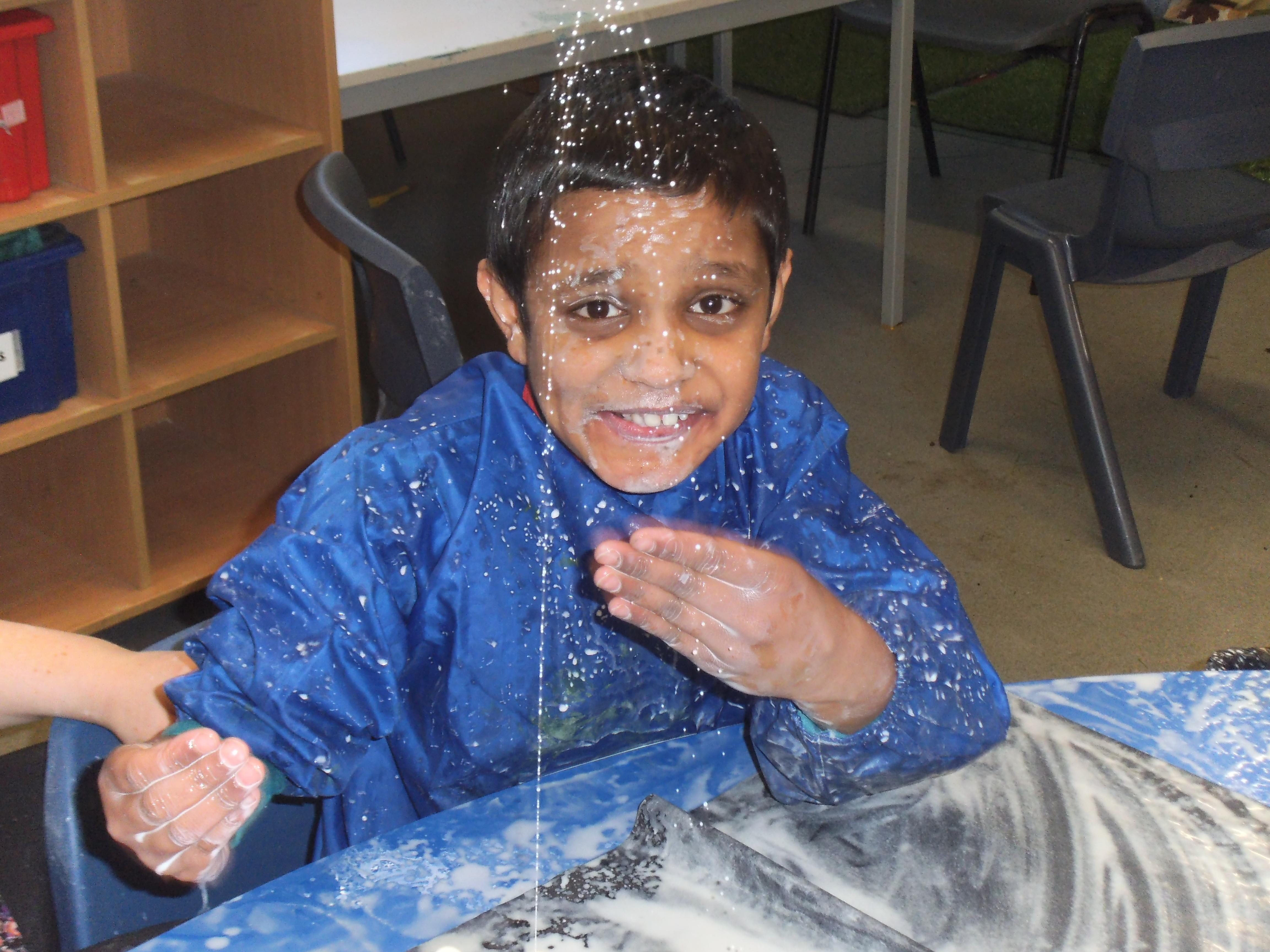 We have been developing our fine motor control through a range of printing activities. All the boys enjoyed our sensory art week. Coloured shaving foam and painting with yoghurt was a particular favourite!
