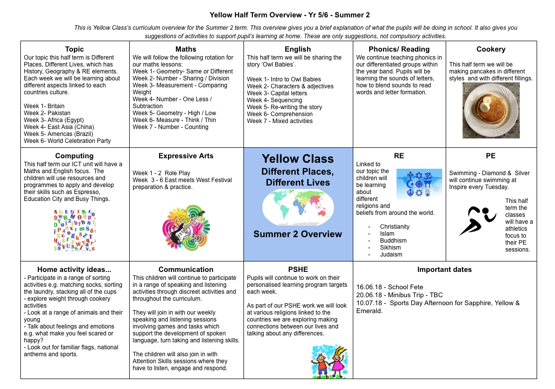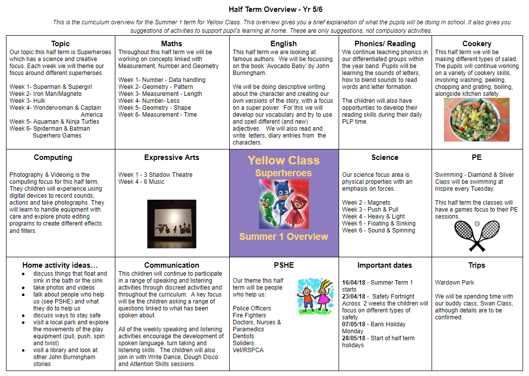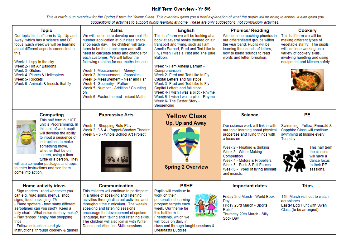Below is Yellow Classes curriculum overview for this half term. You can click to view to document or download the PDF on the link below.