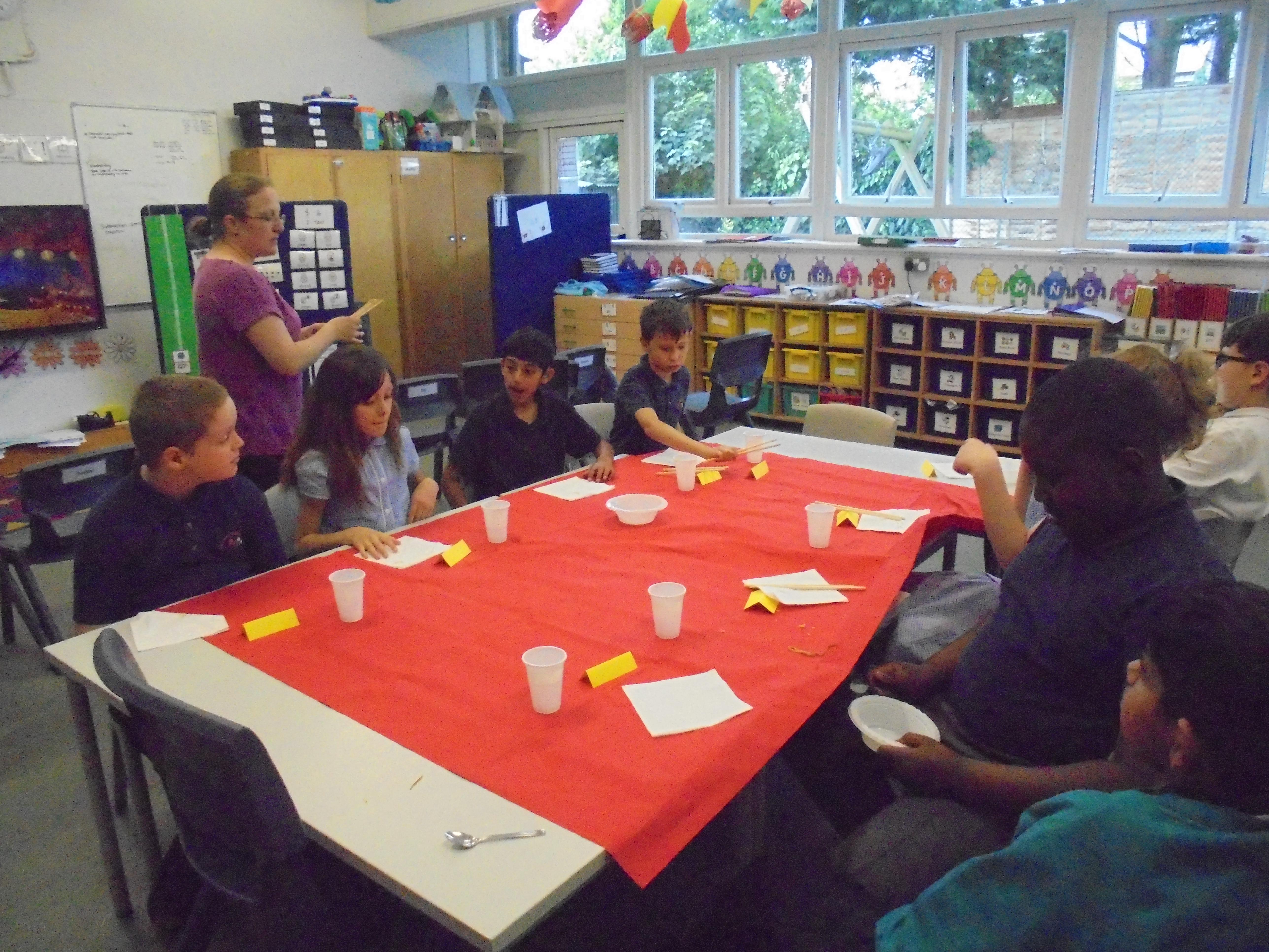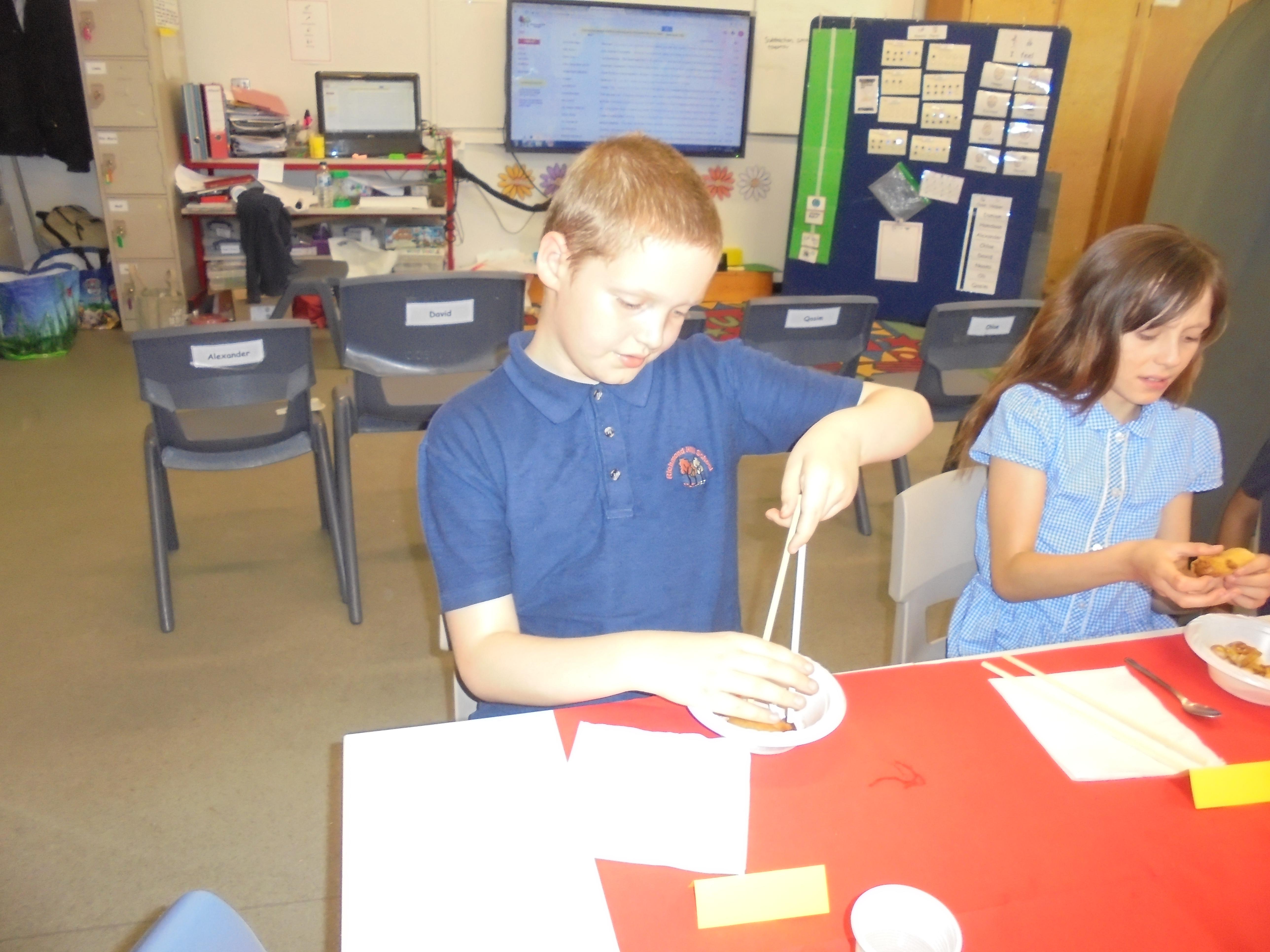 In Yellow Class we turned the room into a Chinese restaurant and tried lots of different foods...even fortune cookies.
