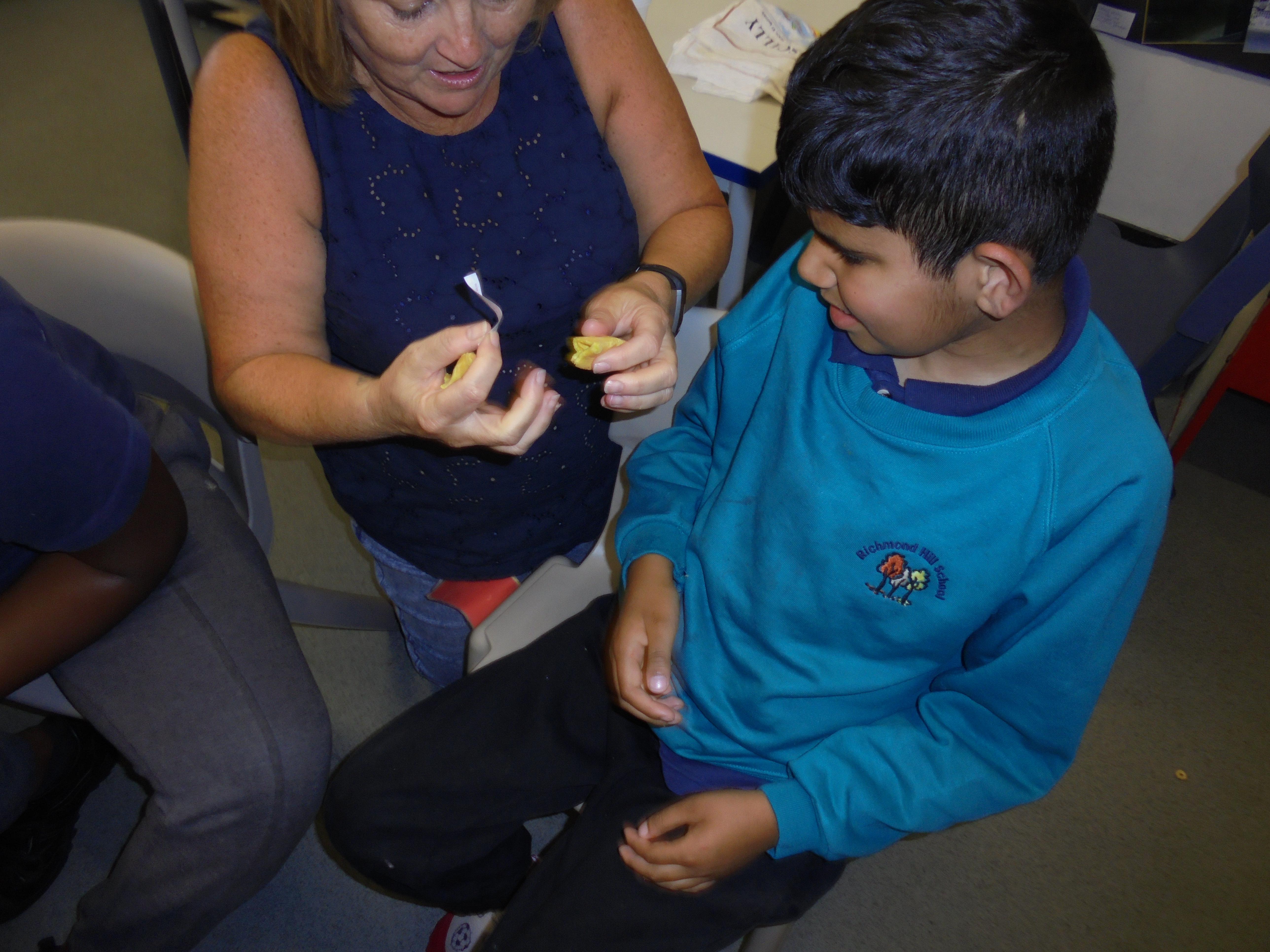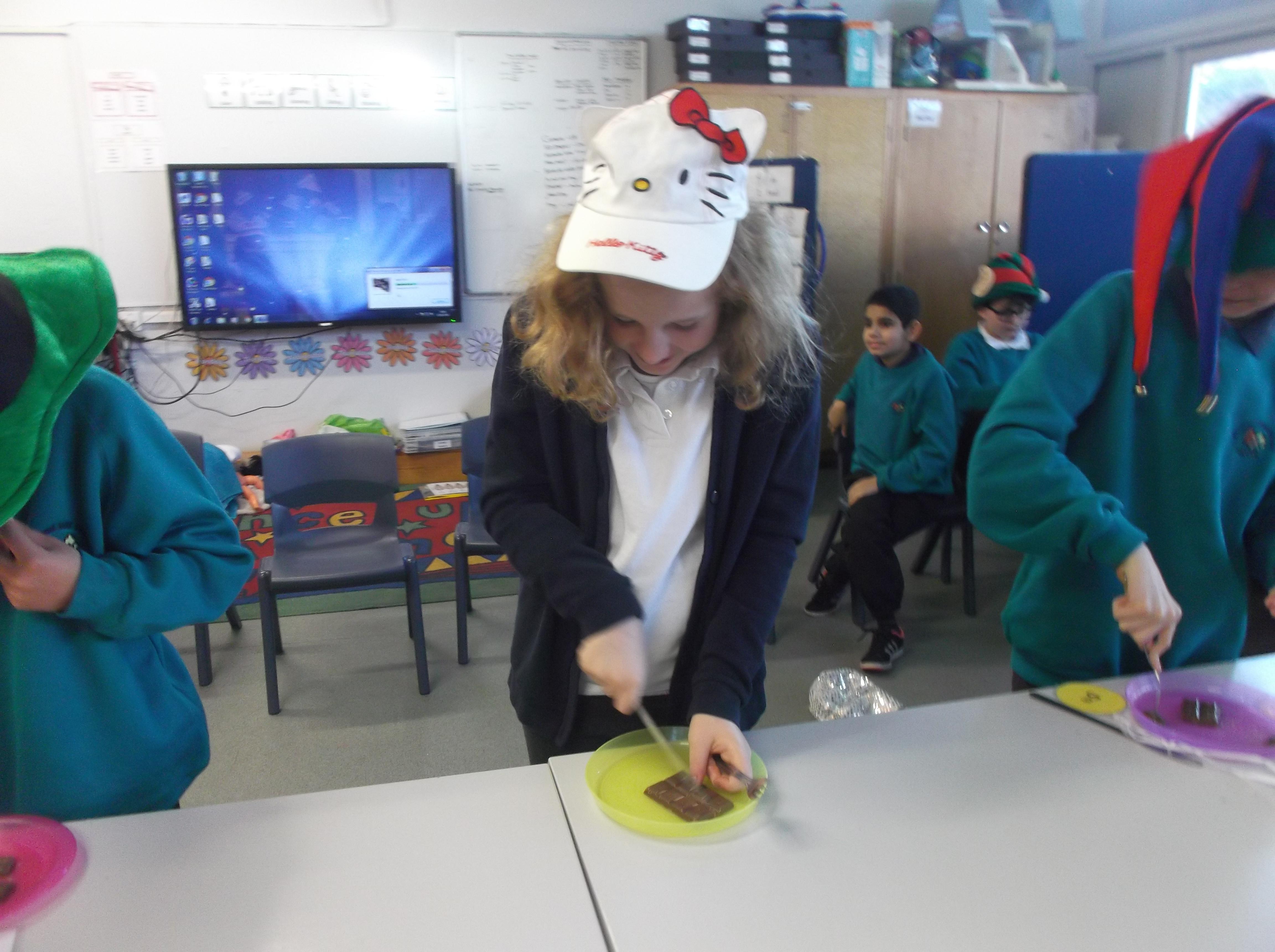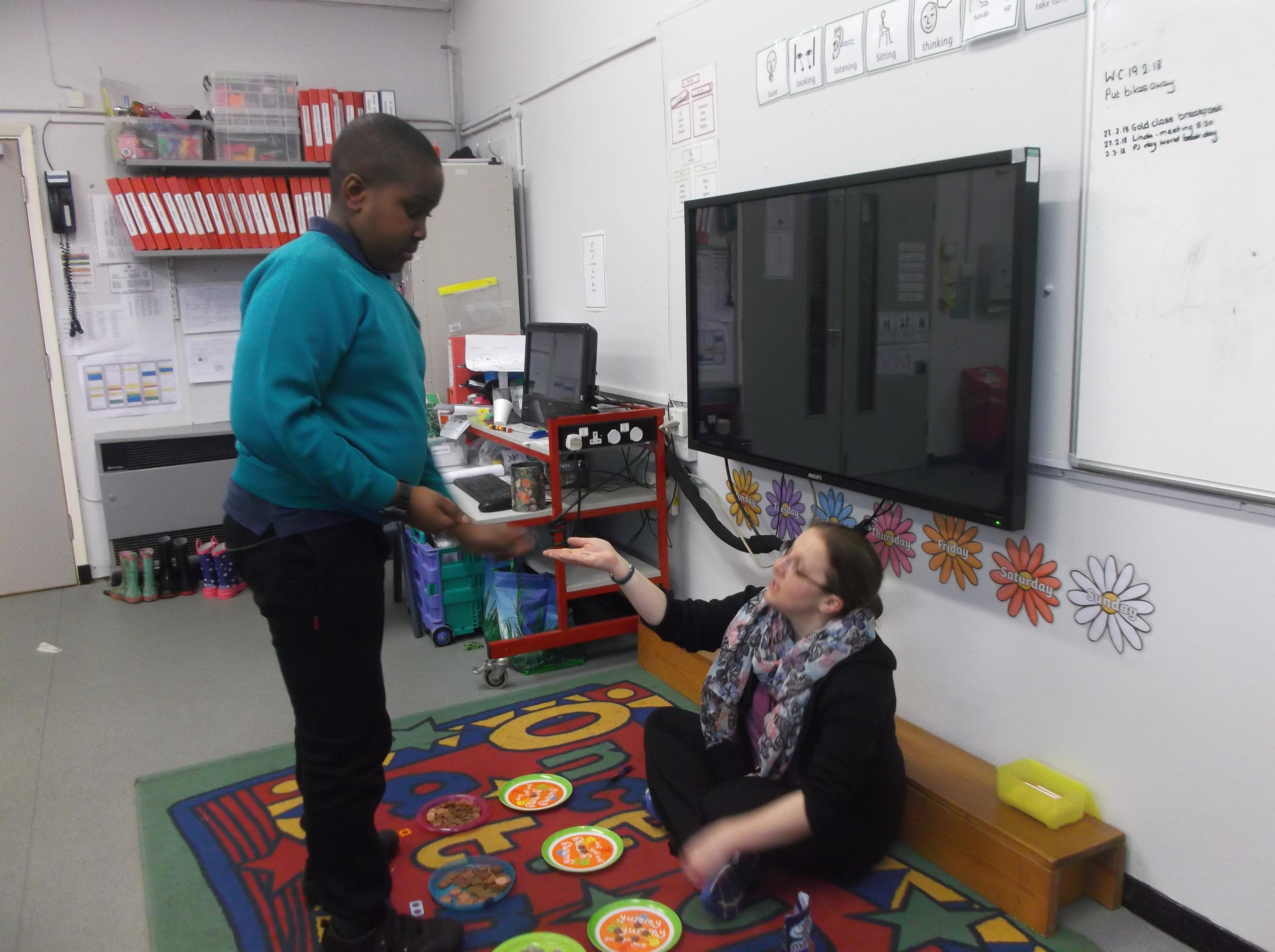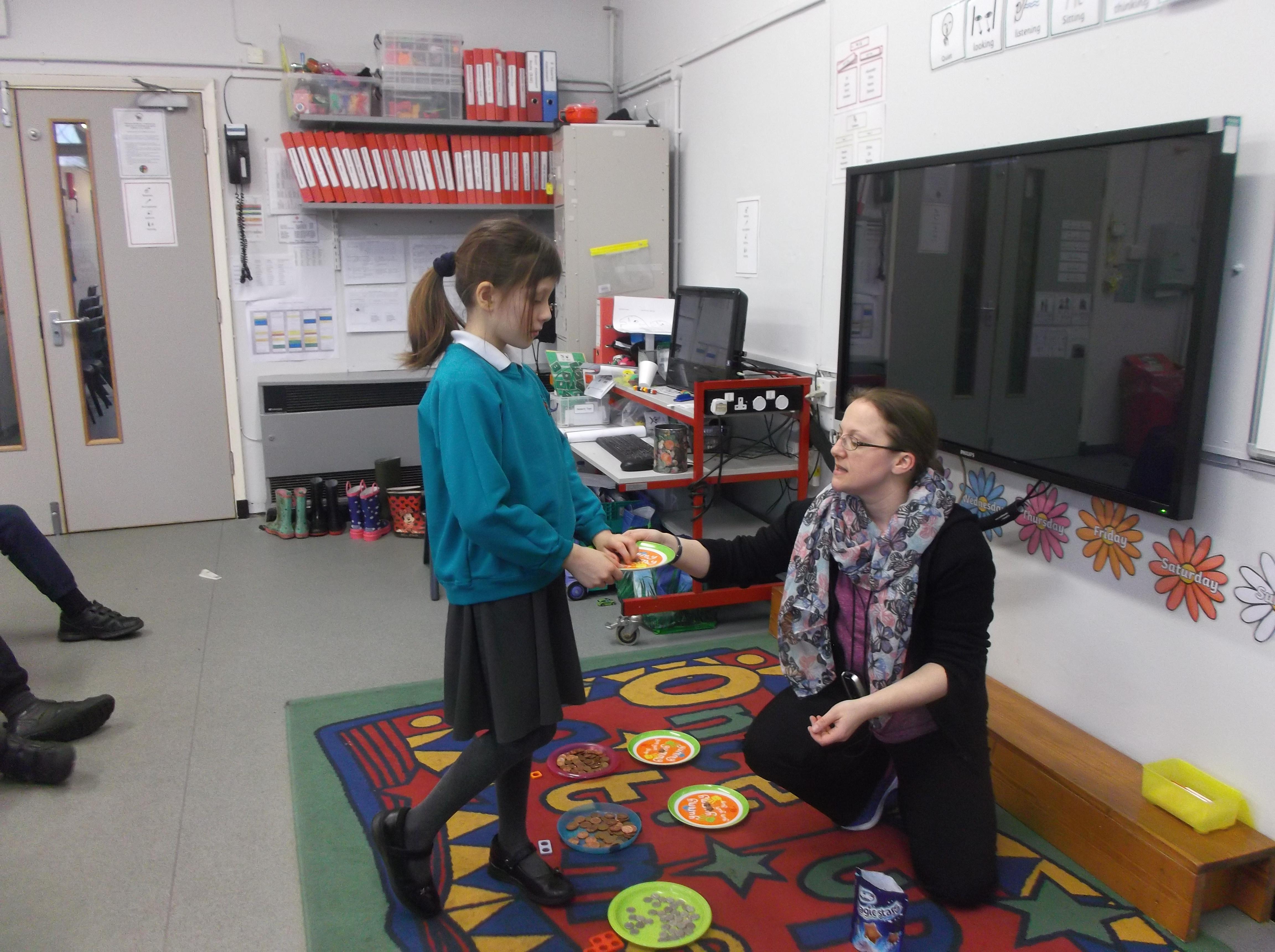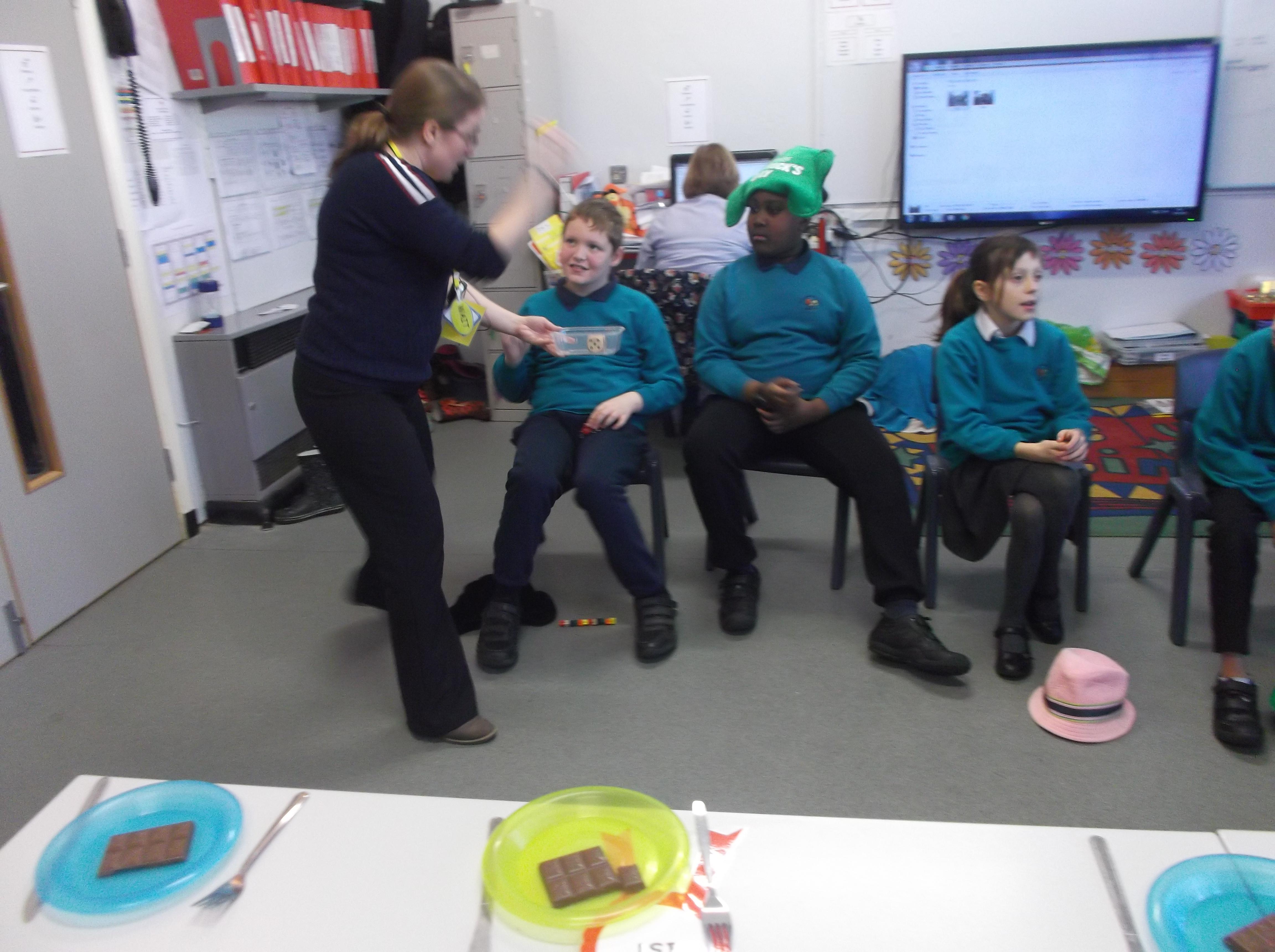 In our Mathematics lessons, we have been looking at ordinal numbers. The children particularly enjoyed the game activities. They took it in turns to roll a dice and when they got a 6 they have to put on a hat and cut chocolate with a knife and fork. We recorded who was first, who was second and who was last!
